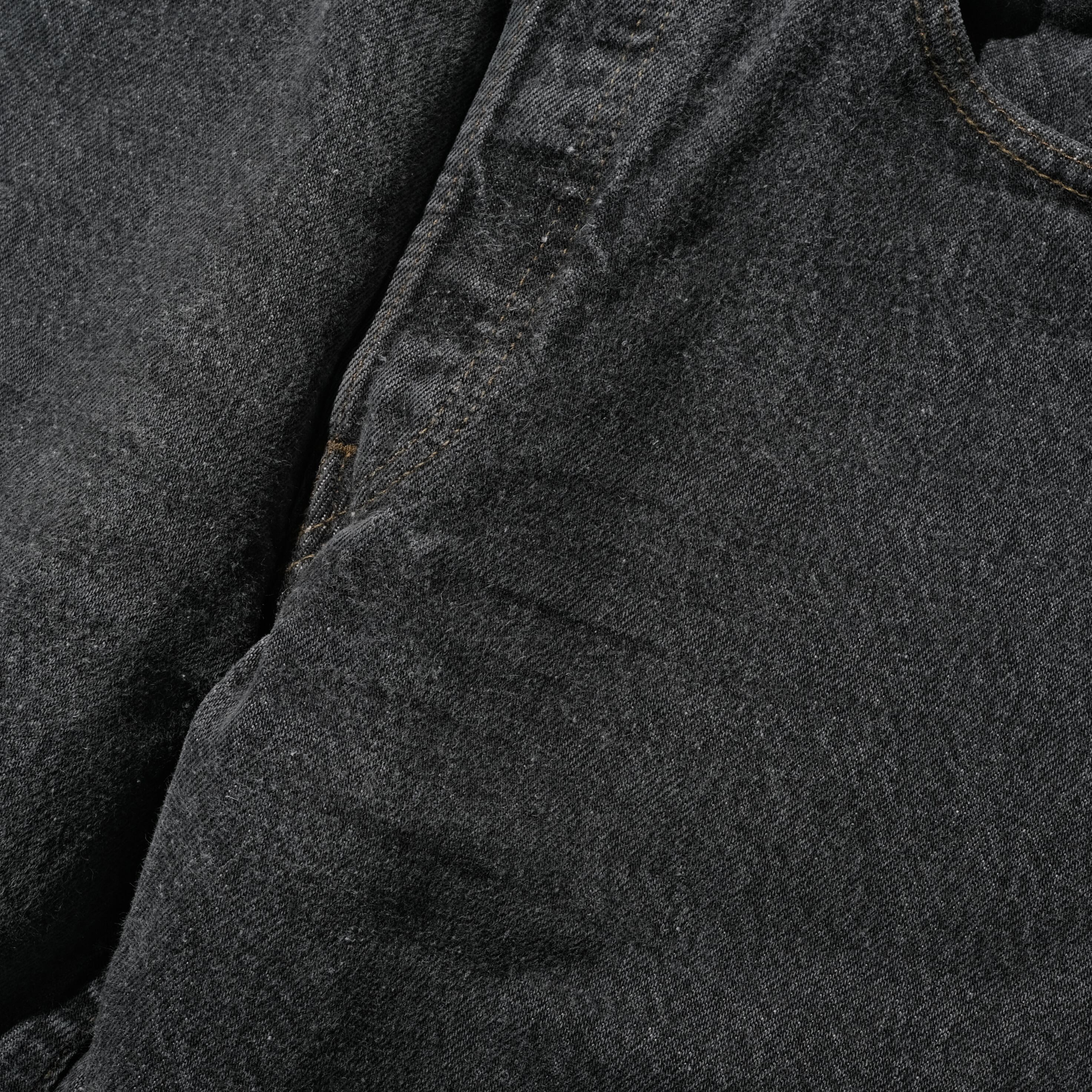 ネクストヴィンテージ(すでにネクストは外れているでしょうか)として注目されている筆頭のアイテム。後染めのものに比べ通常のデニムと同じく縦糸がフェードする生地。ブラックデニムとしてはここが最初ですので、ブルーデニムでいうところのXX的な立ち位置と言えば大袈裟でしょうか。