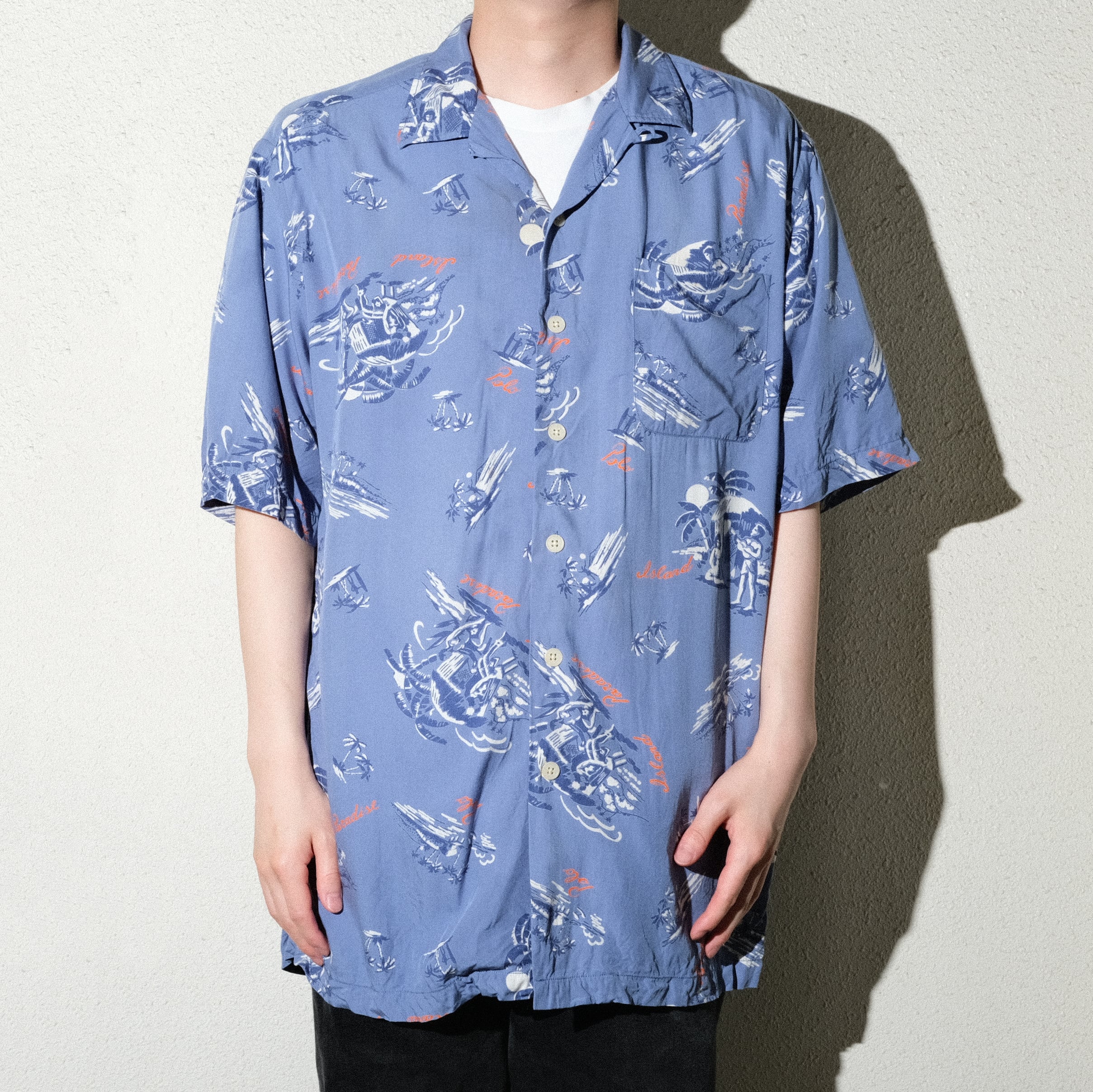 レーヨン100%のハワイアンタイプ。流石のラルフローレン、ヴィンテージライクなレーヨンのトロッとした質感が抜群の一着。