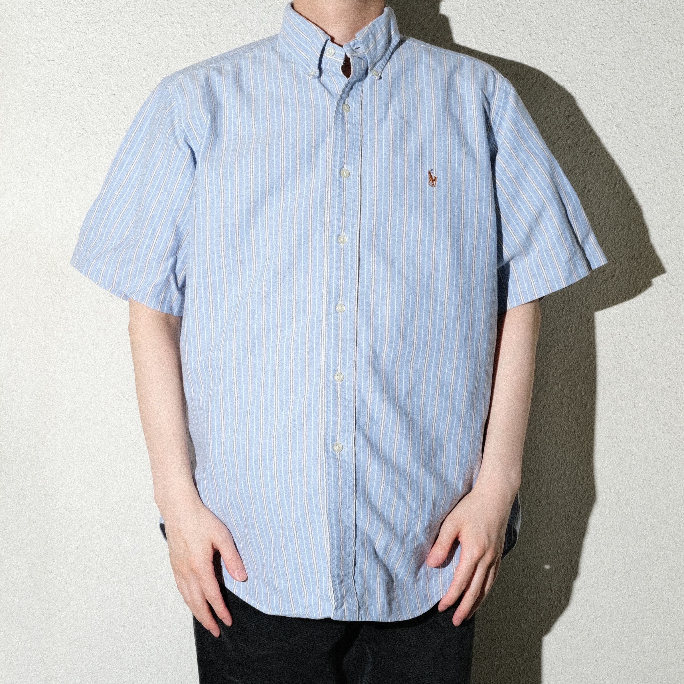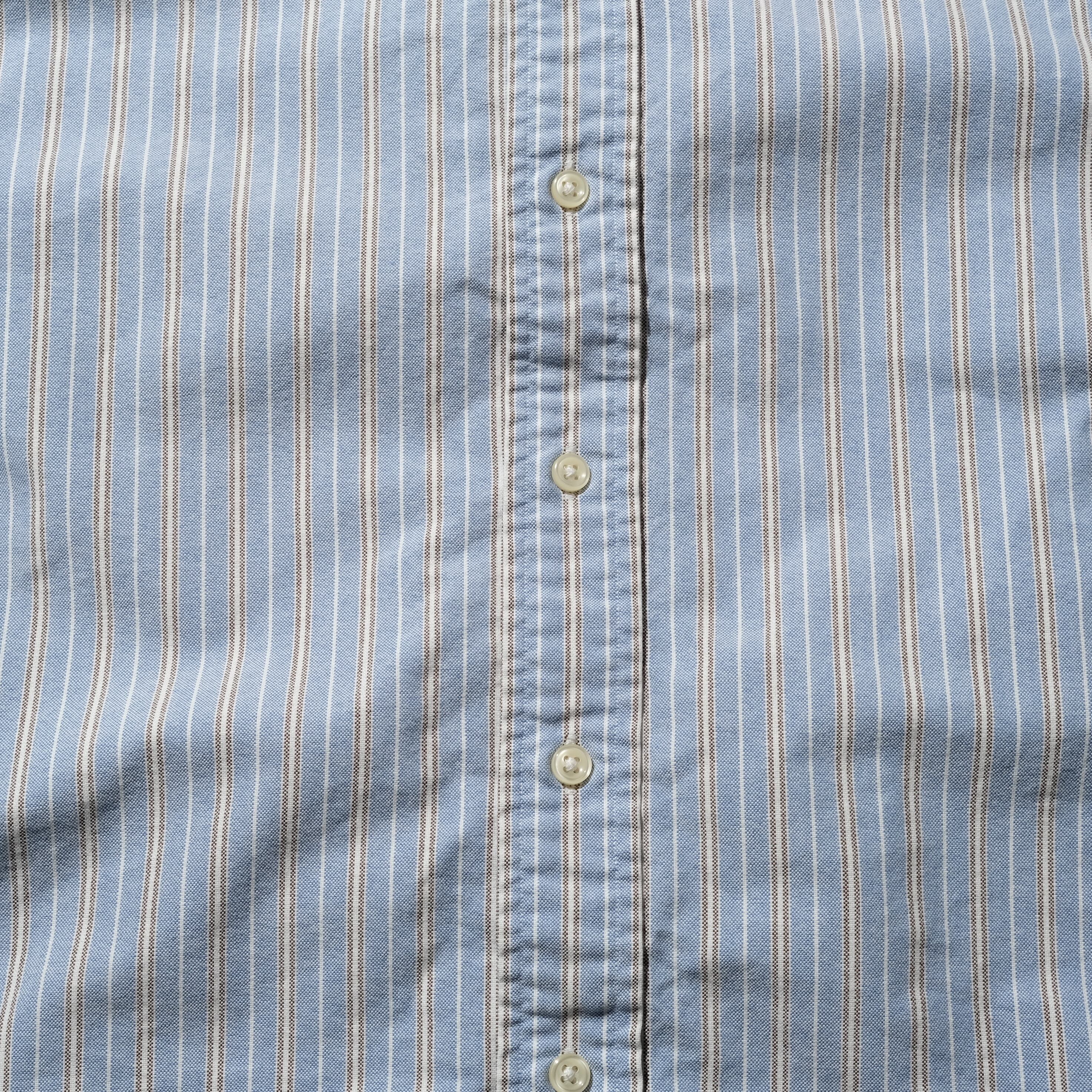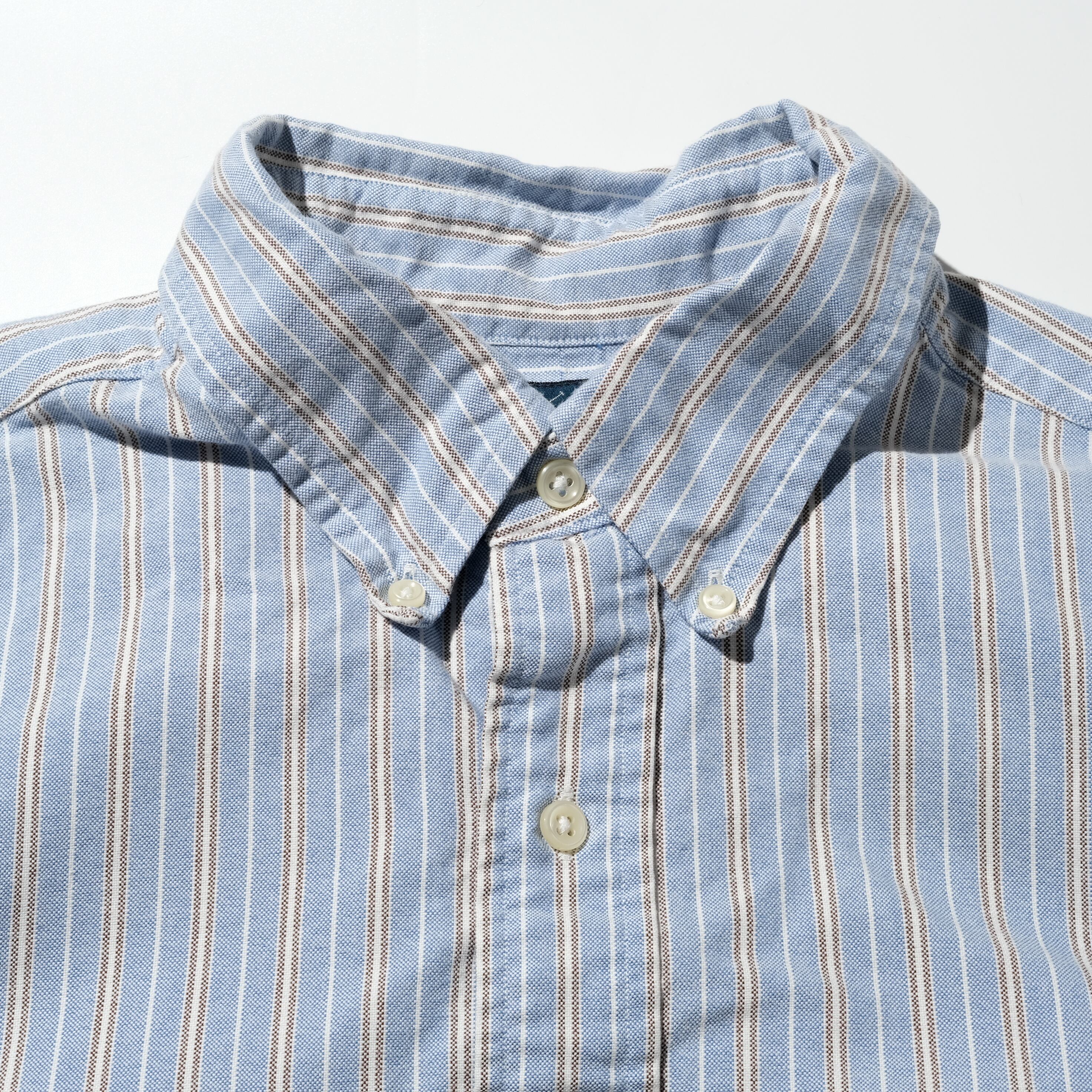 半袖のタイプ、こちらはストライプ柄でオックスフォード生地という探されている方の多い印象の仕様の一枚。