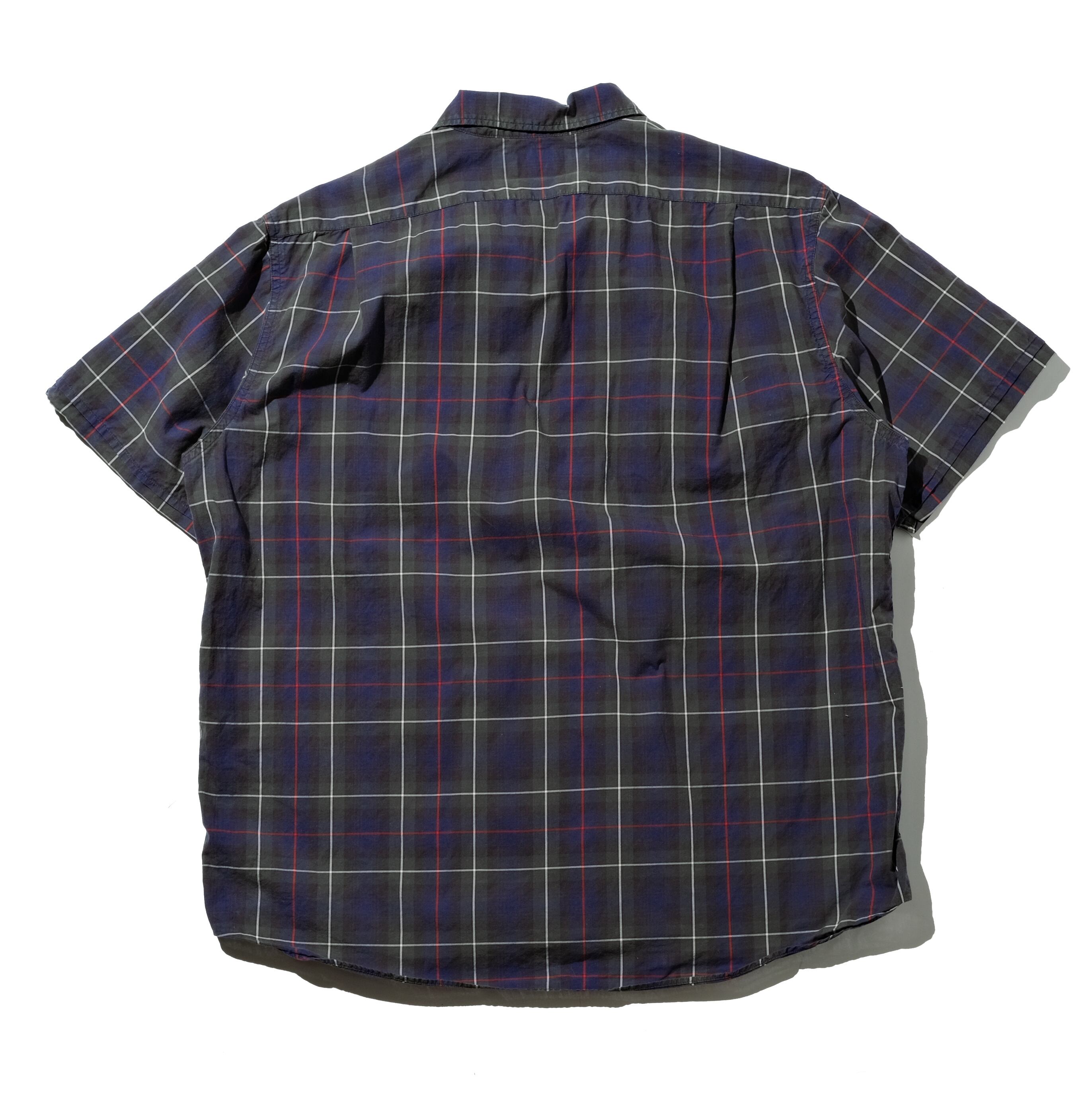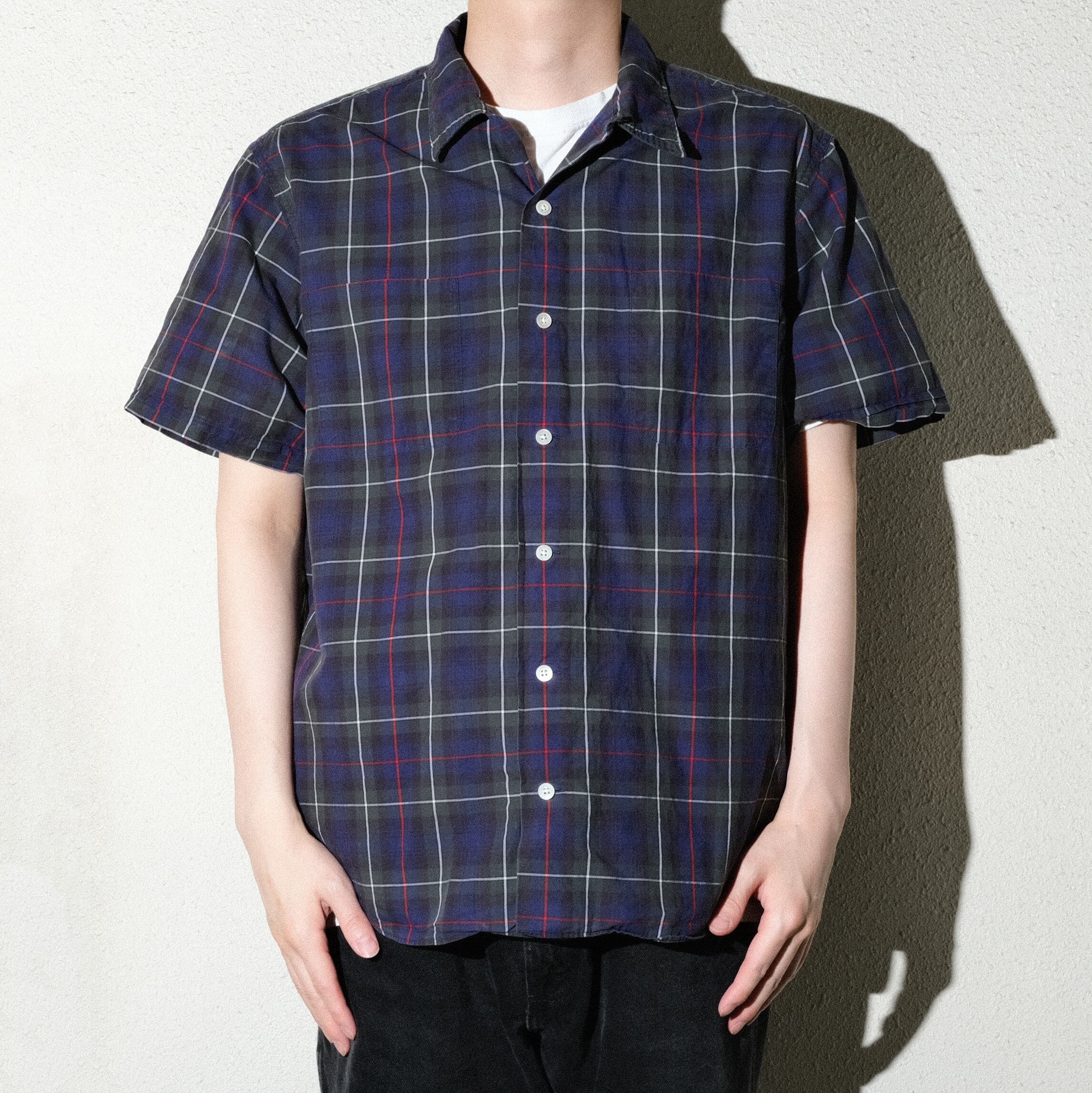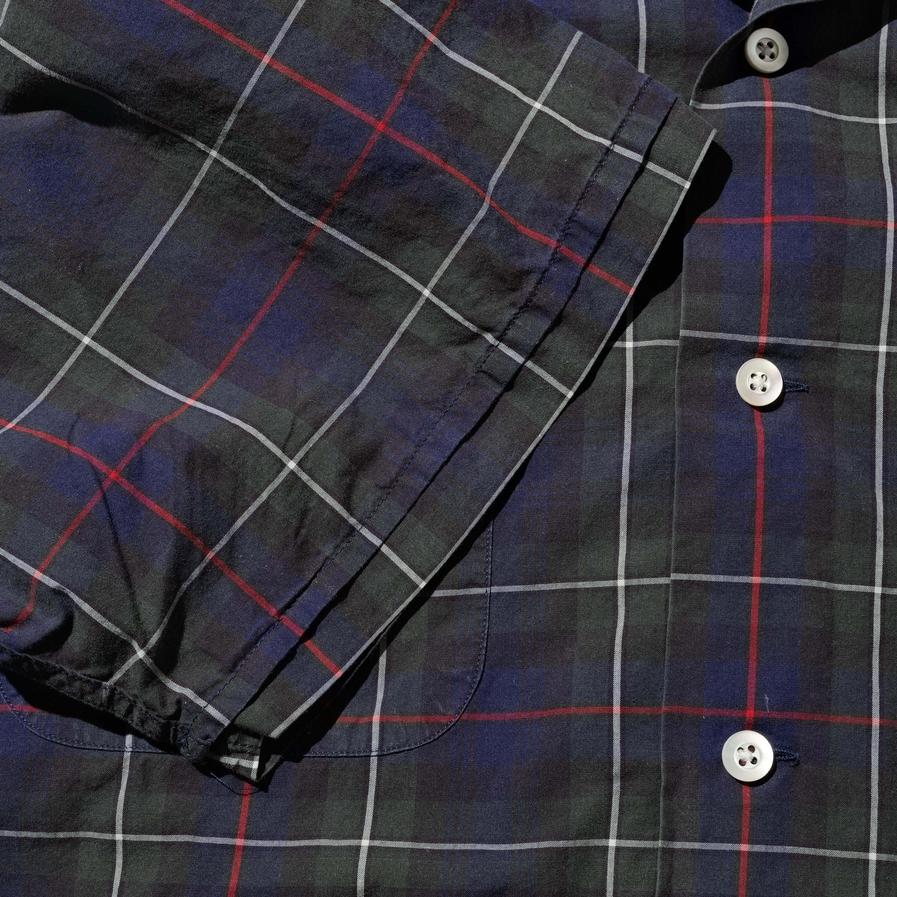モデル名は記載されないタイプで袖の仕上げやボックスに近いラウンドの裾など変わった仕様の一枚です。配色はBDタイプでも見かける上品なチェック。シャリ感のあるコットン100%のブロード生地が蒸し暑い季節にはぴったりかと思います。