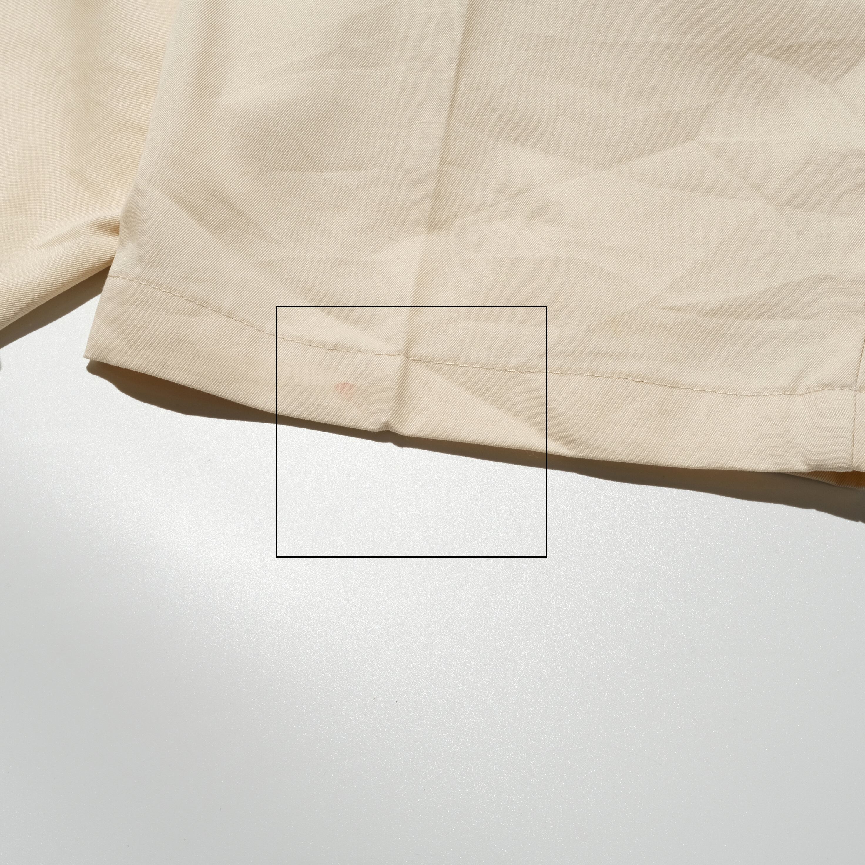 若干保管時のヨゴレなどが見られるため押さえたプライス設定にしておりますが、おそらく着用前に酸素系漂白剤で軽く漂白いただければ落ちてくれるヨゴレとは思います。