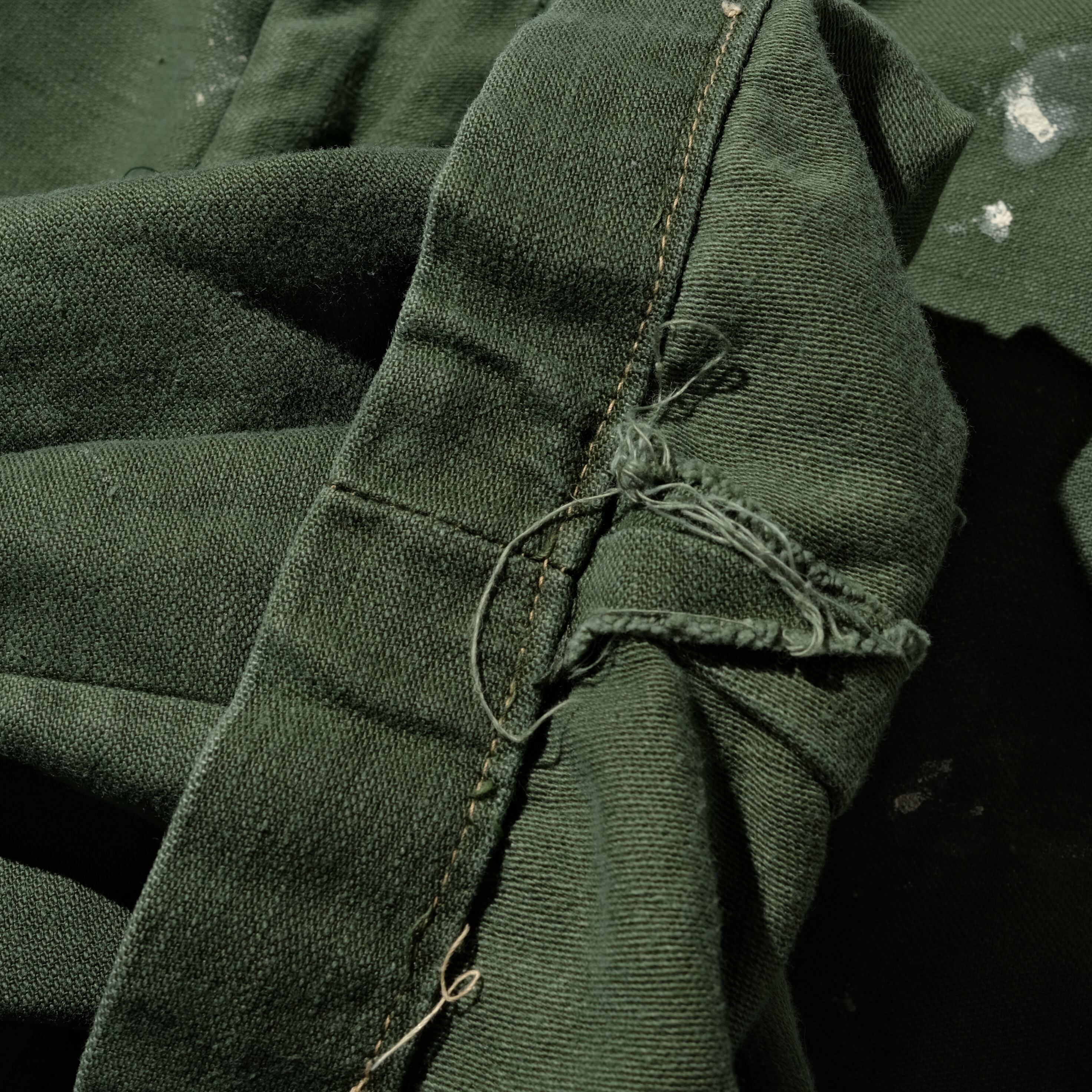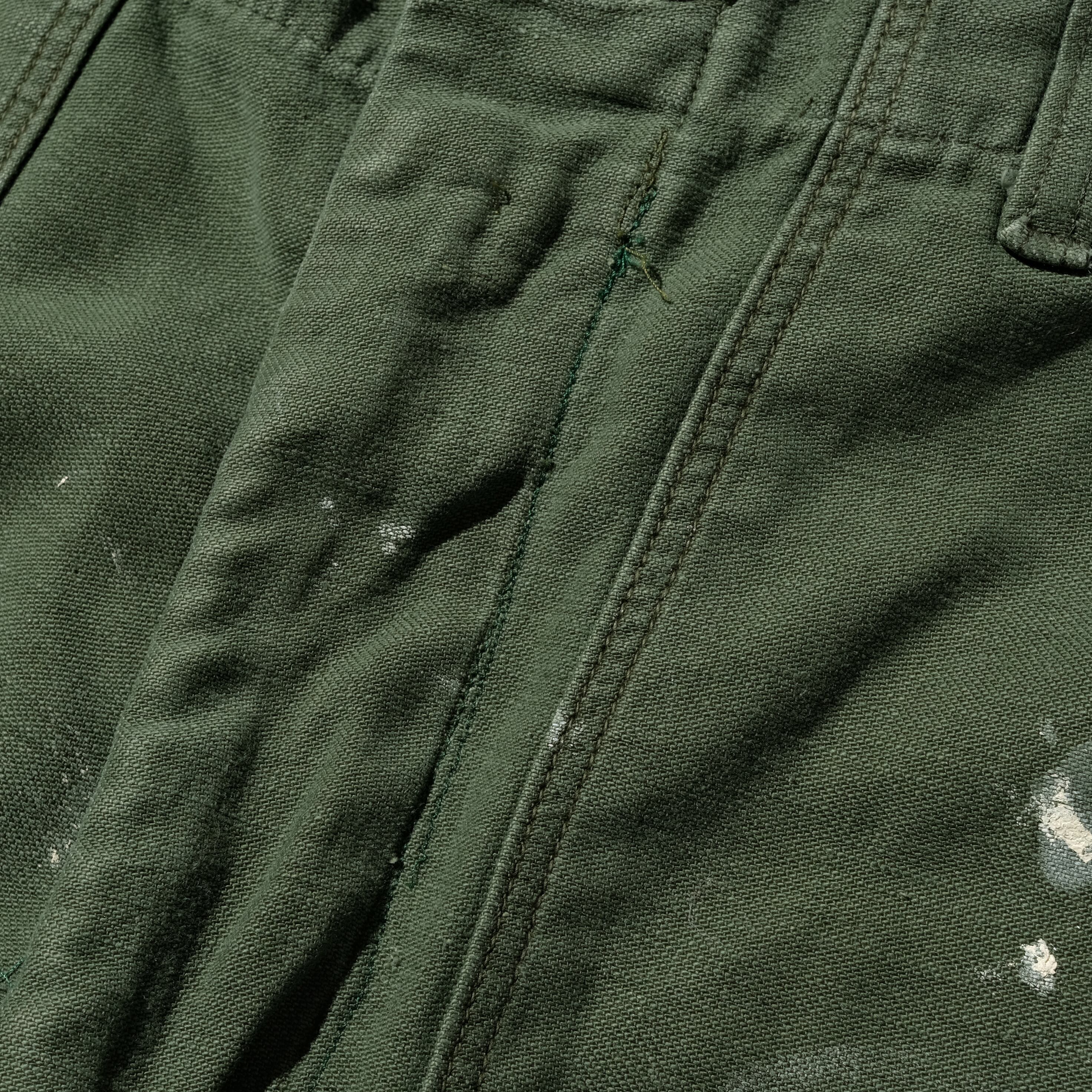 【状態】全体的に着用感、スレ。ペンキ飛び、アウトシームリサイズ。フロントジップカバー部分リステッチ。裾上げ。その他ミリタリーアイテム特有のキズ、ダメージ、ヨゴレなどございます。