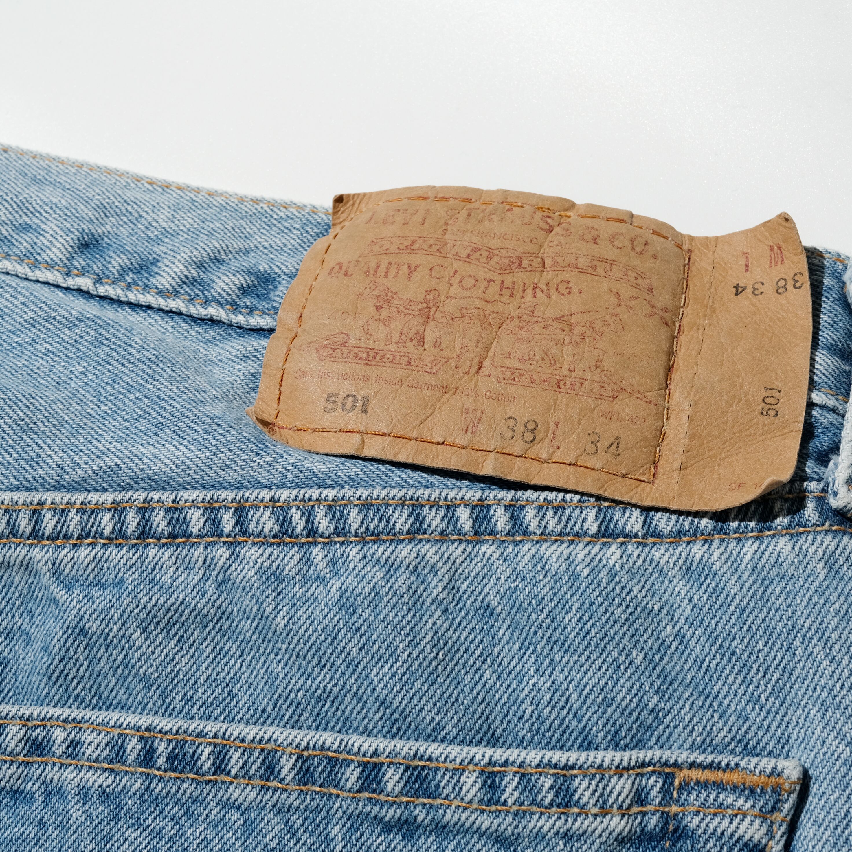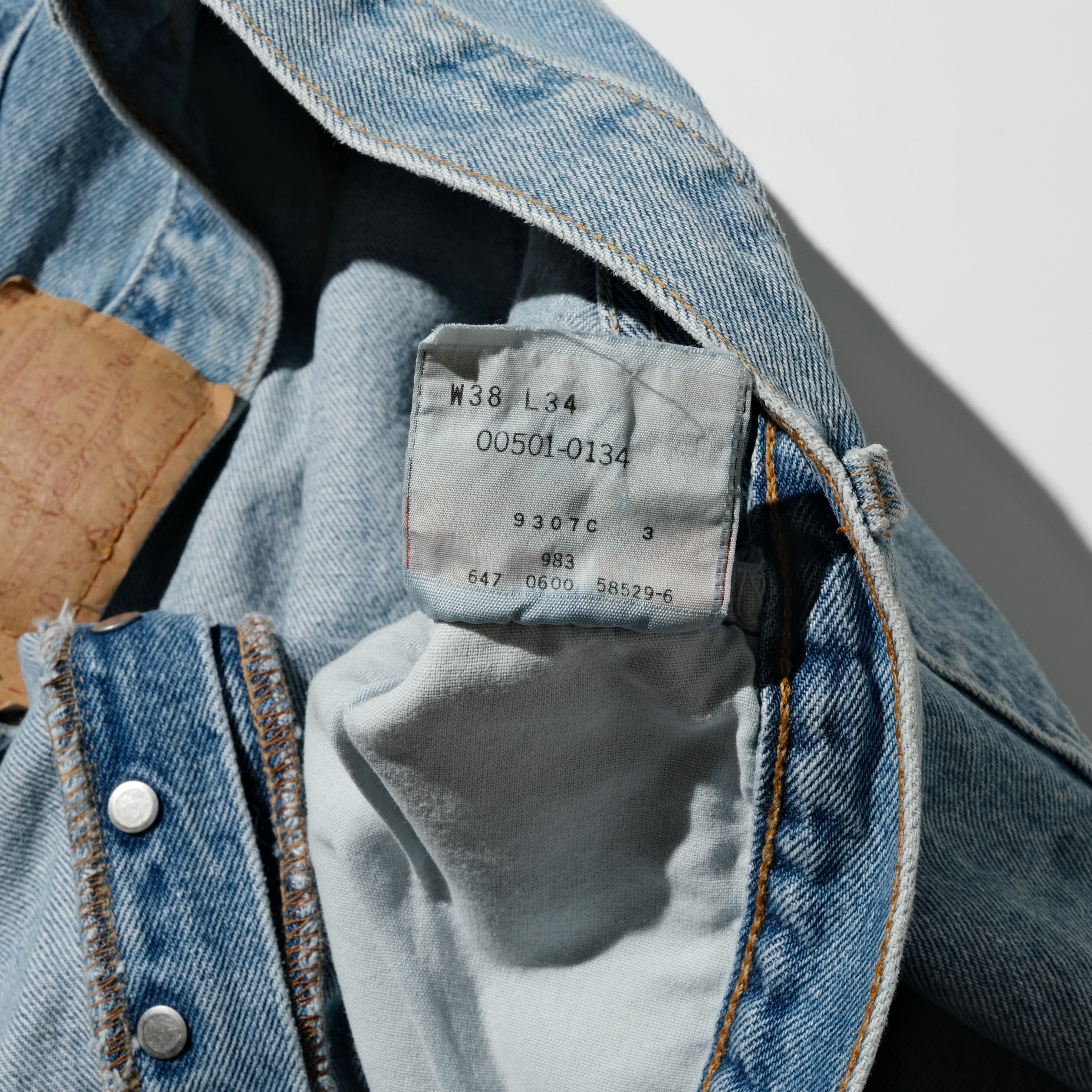 38x34からチヂミが入り36x33のサイズになった個体、171cmが裾を少し溜めて着用するのに良いサイズでした。