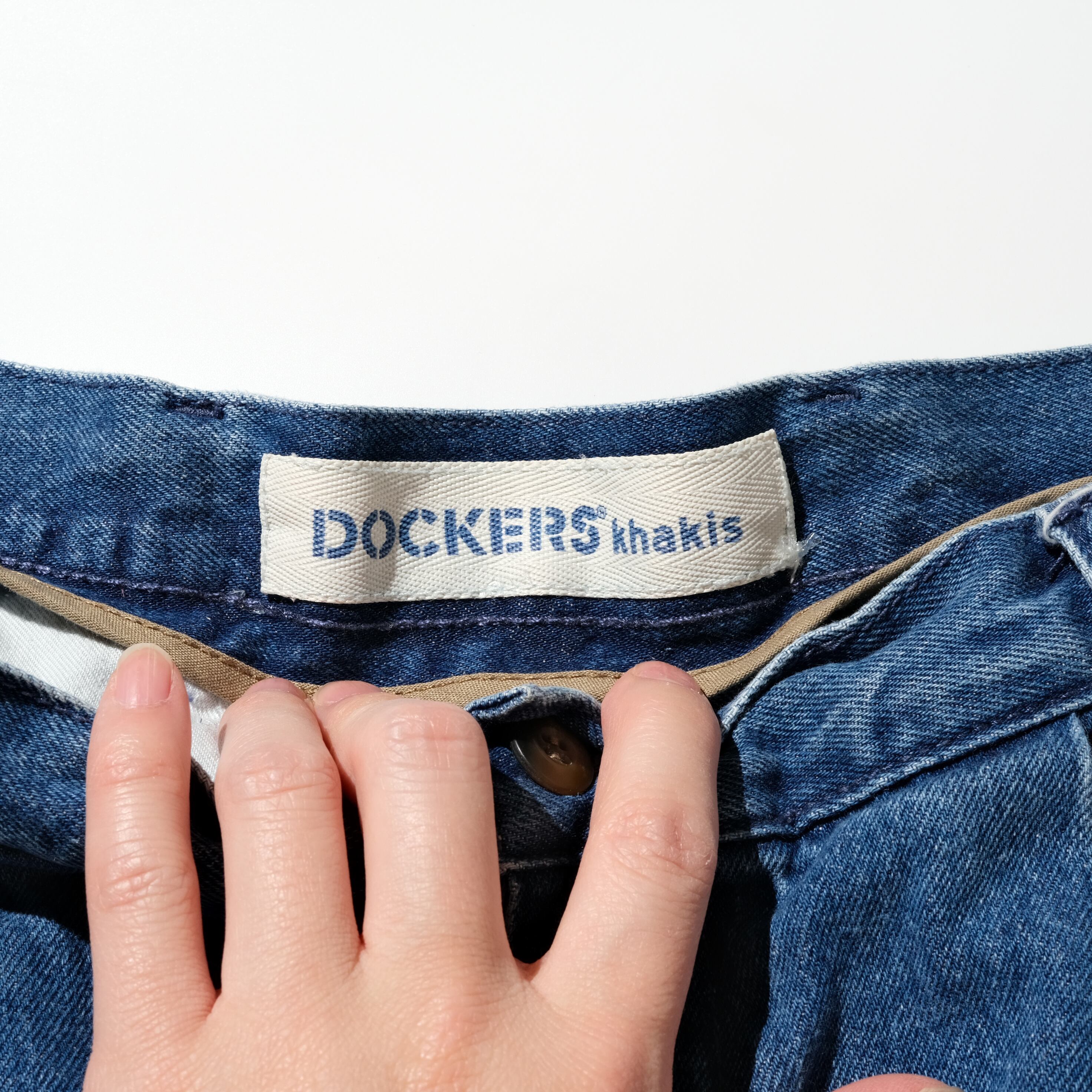 90's~の旧タグのつく個体。2タックの入るデザインにデニム生地を合わせたこの年代らしい洒落たアイテム。