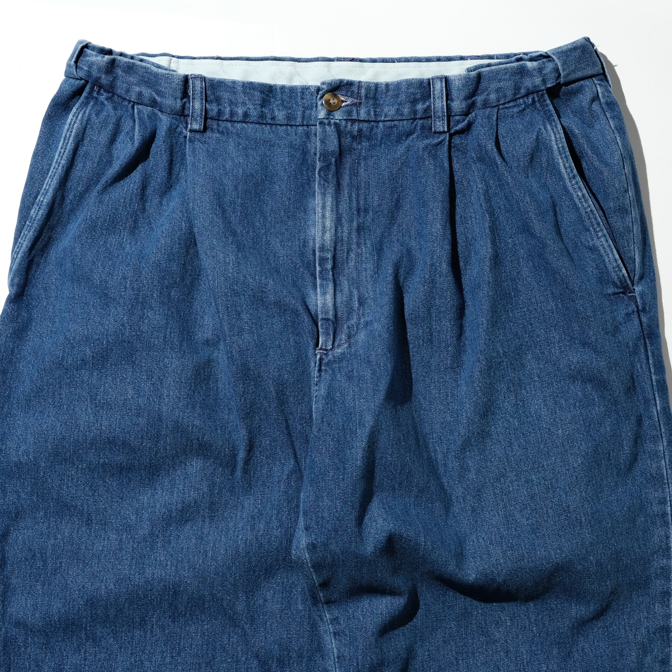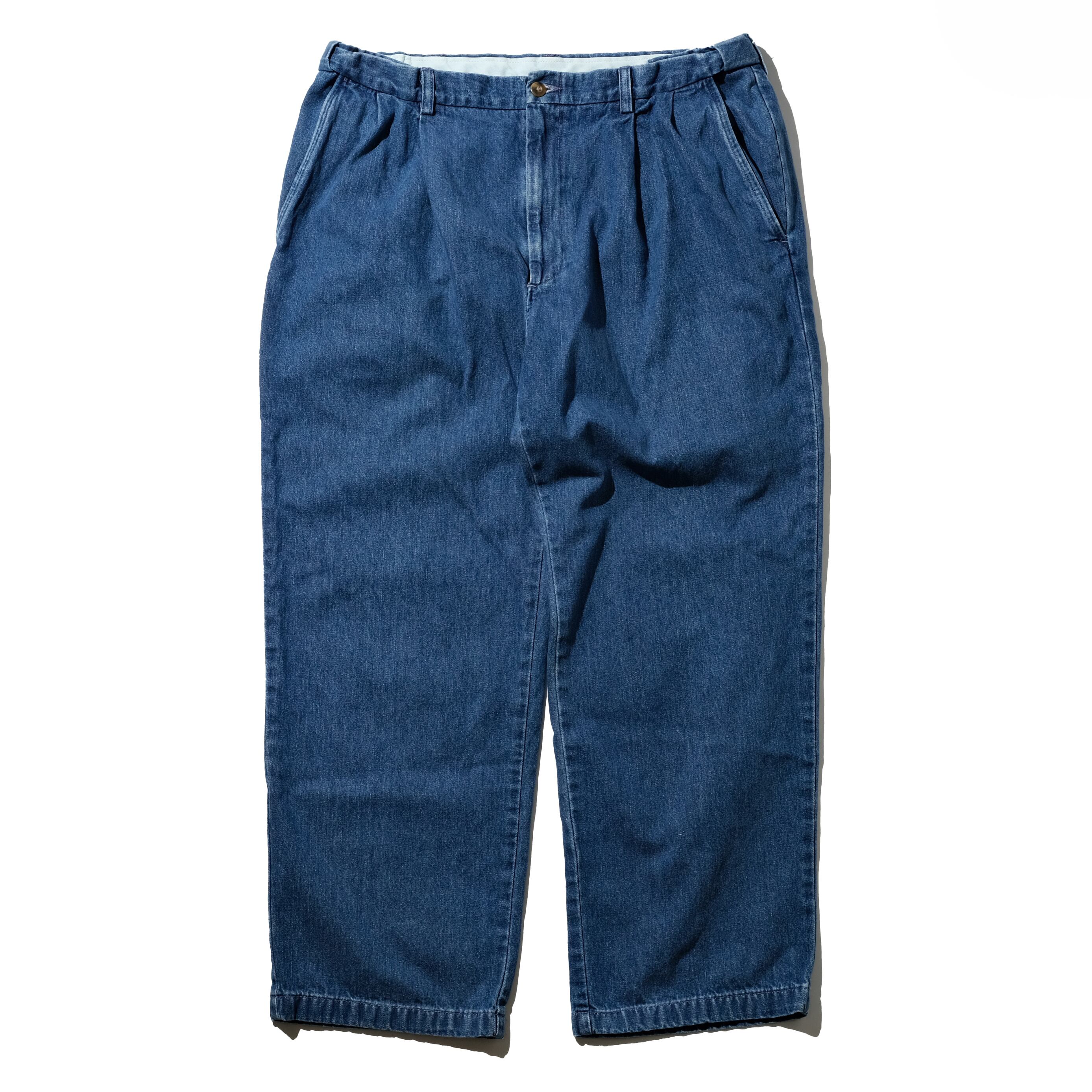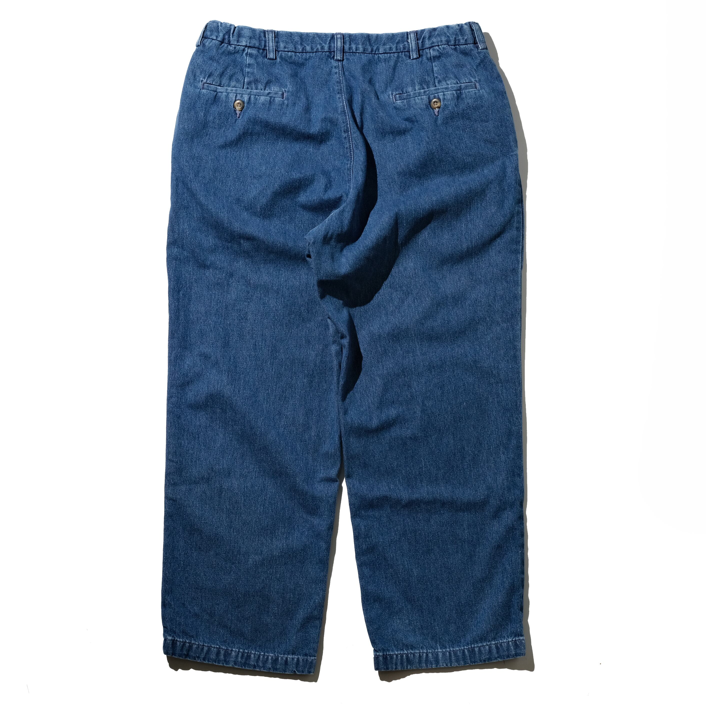 スラックスの2タックのデザインとデニムのカジュアル感を併せ持った一本。