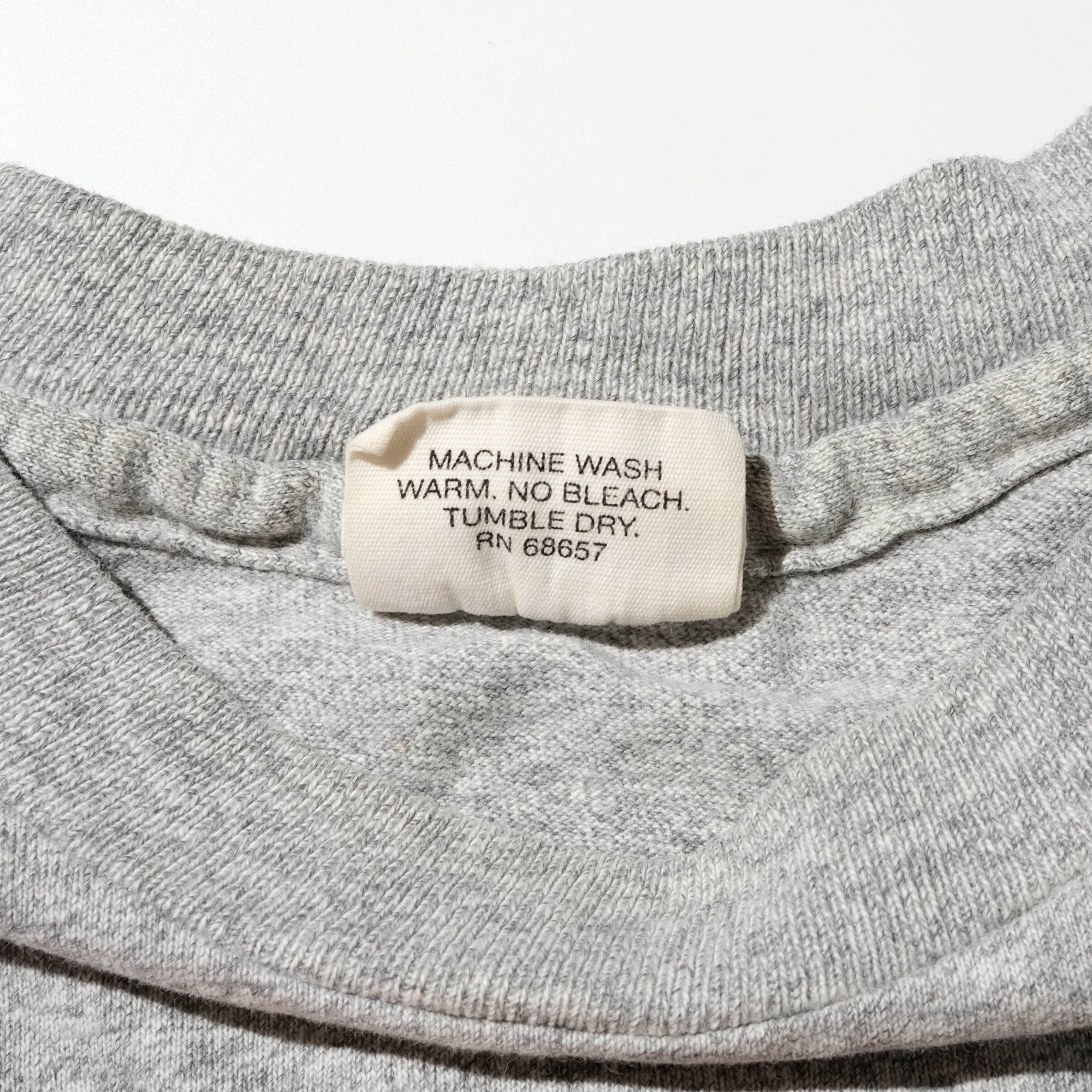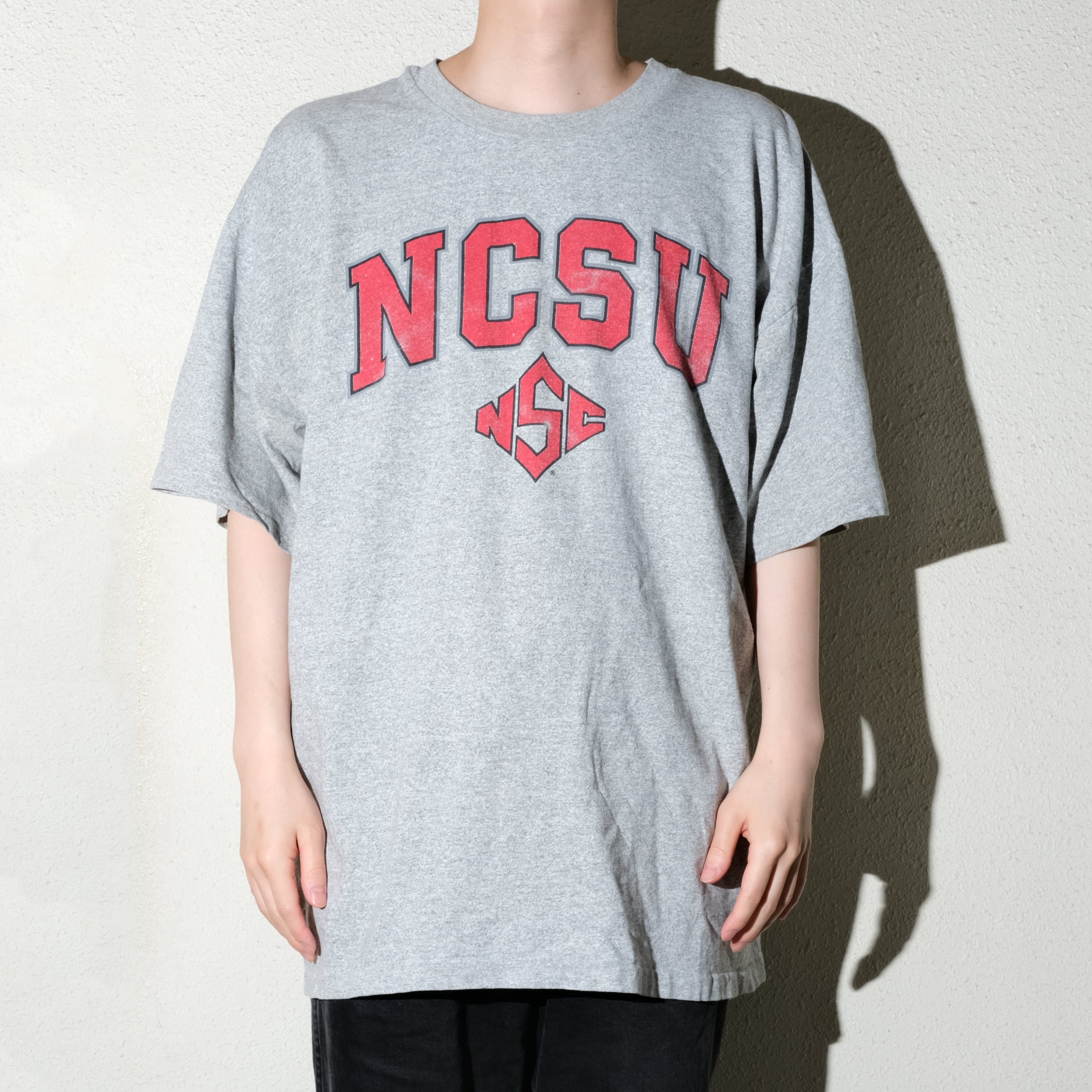 ノースカロライナ州立大学のプリントの入るこちらの個体。定番の霜降りグレーボディに赤のプリントが掠れた雰囲気が非常に古着らしい一枚。