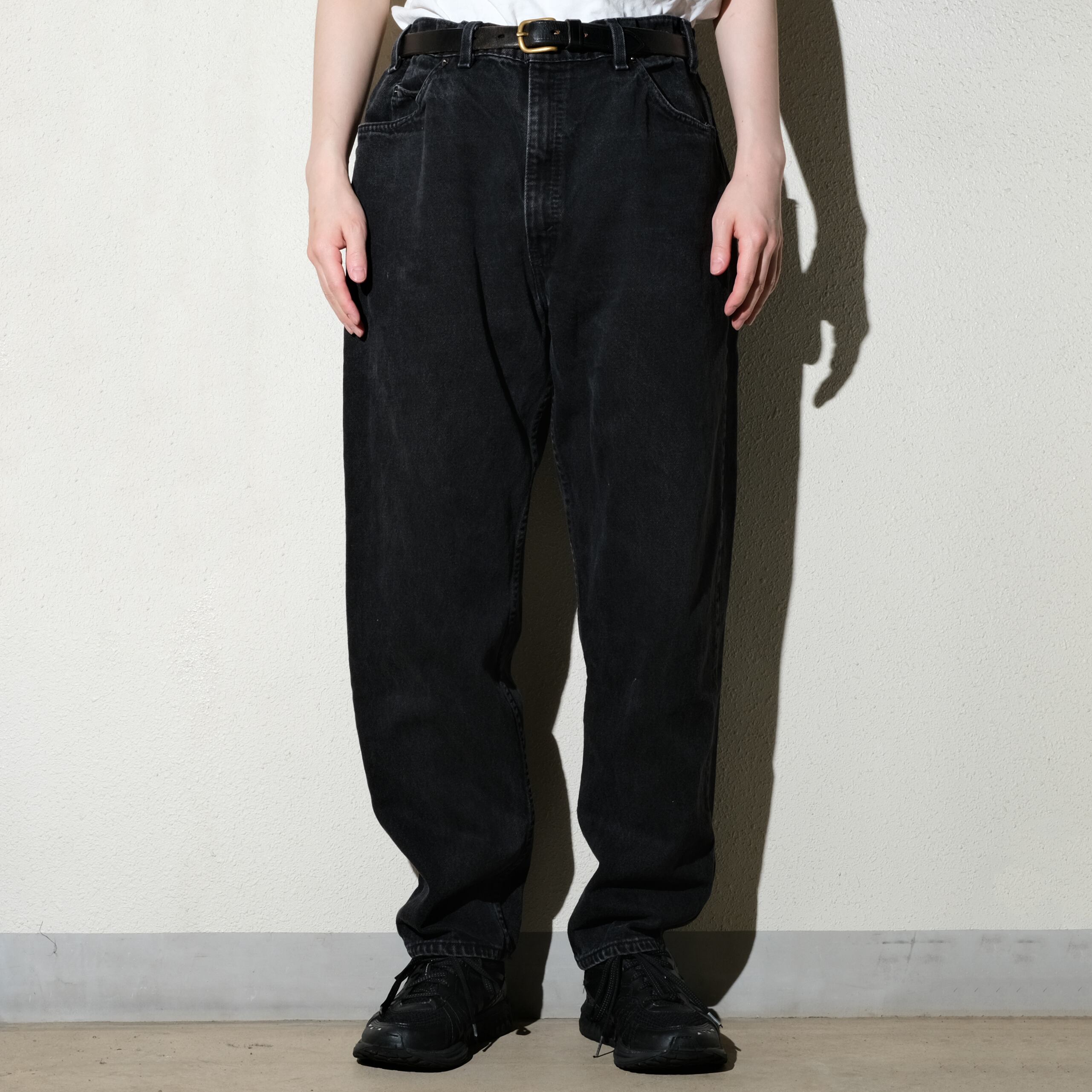 細かいところですとリベットやボタンなども違ってきますが、38x30表記のサイズやフェード感などストリートな印象の個体になるかと思います。