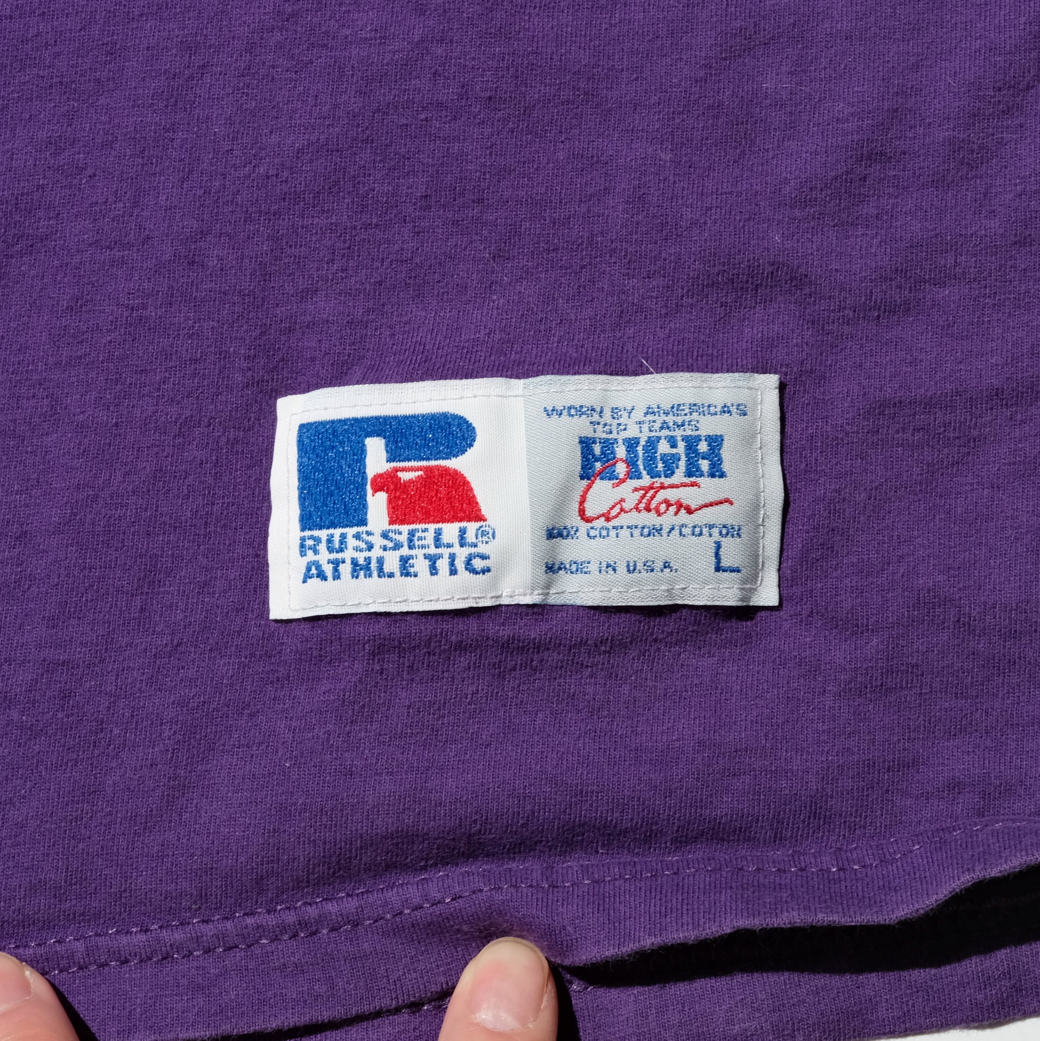 90'sのUSA製でハイコットンというシリーズ、100%コットンを使用した良い生地感の一枚です。