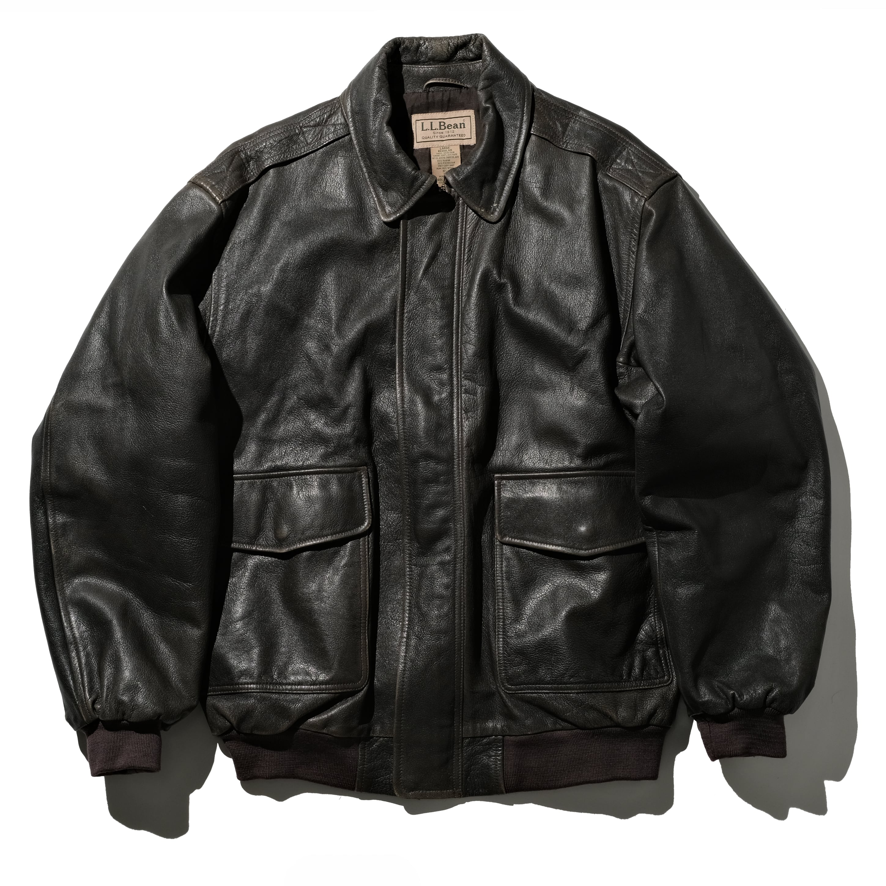 ヴィンテージのA-2とは違った着やすいシルエット、ですがやはりオールド物ですのでレザーのクオリティは非常に高いです。