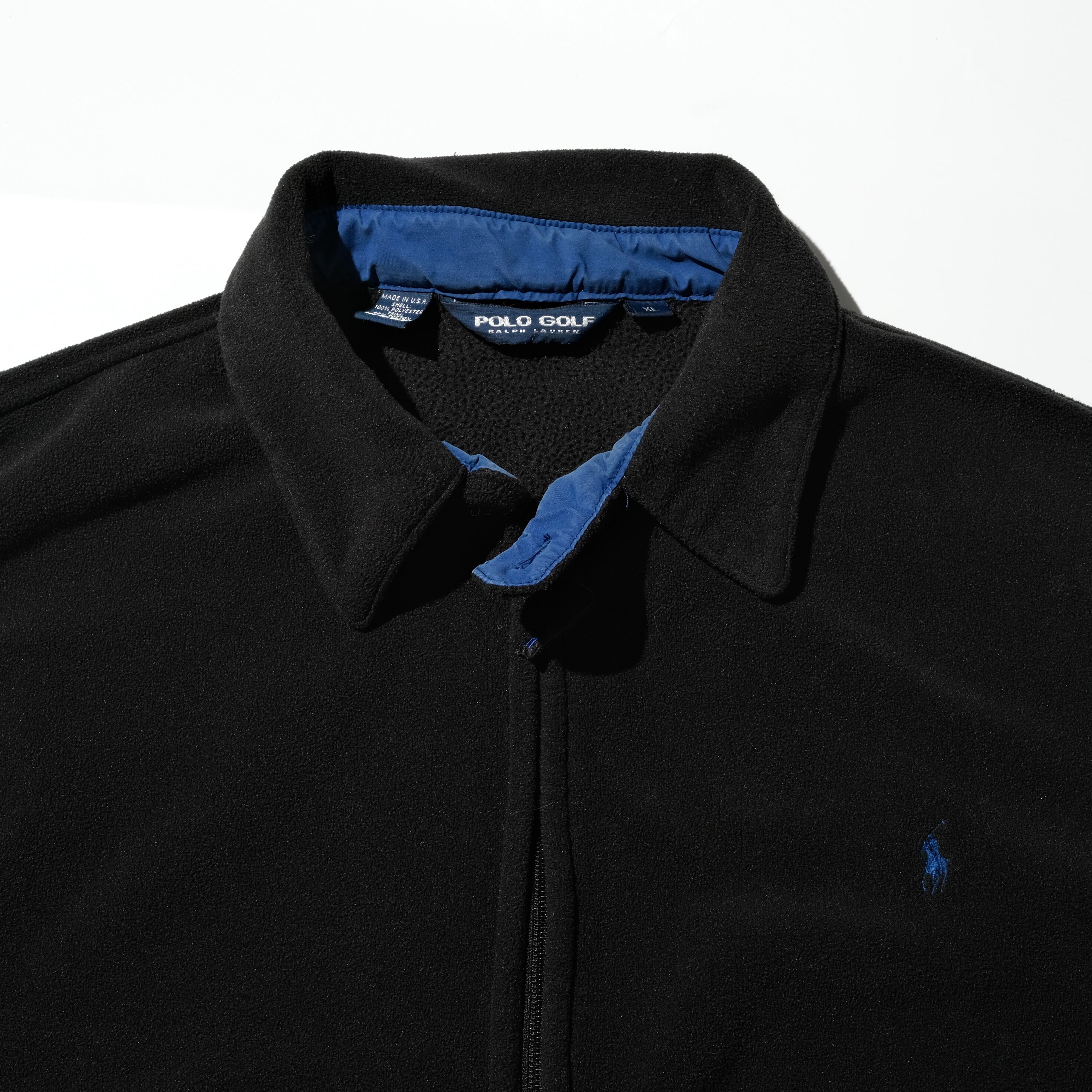 90's POLO GOLF black fleece drizzler jacket made in USA [XL]