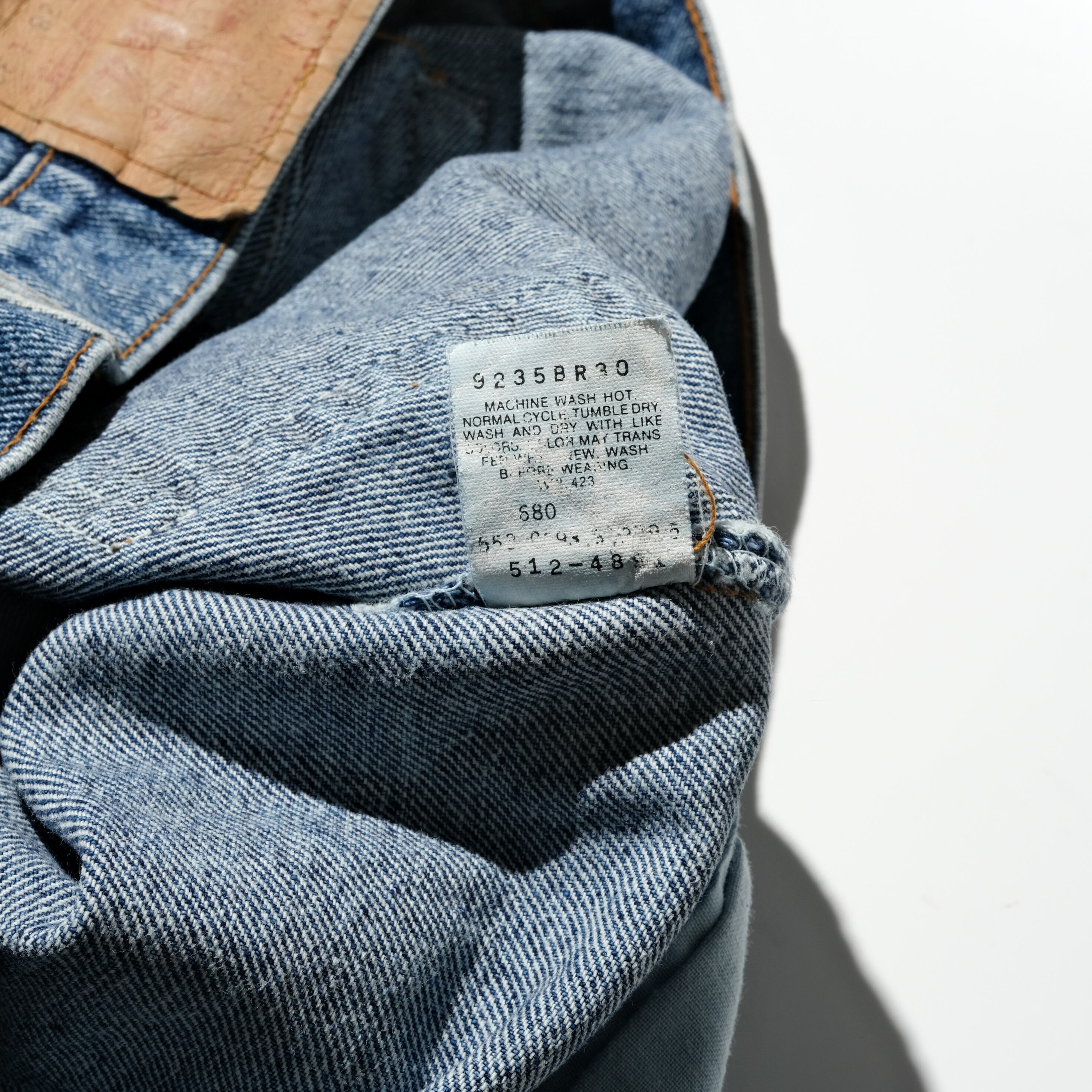 93年、USA製の一本。512という聞き慣れない品番、スリムテーパードの品番ですので606や519などに近い感覚で着用いただけそうです。