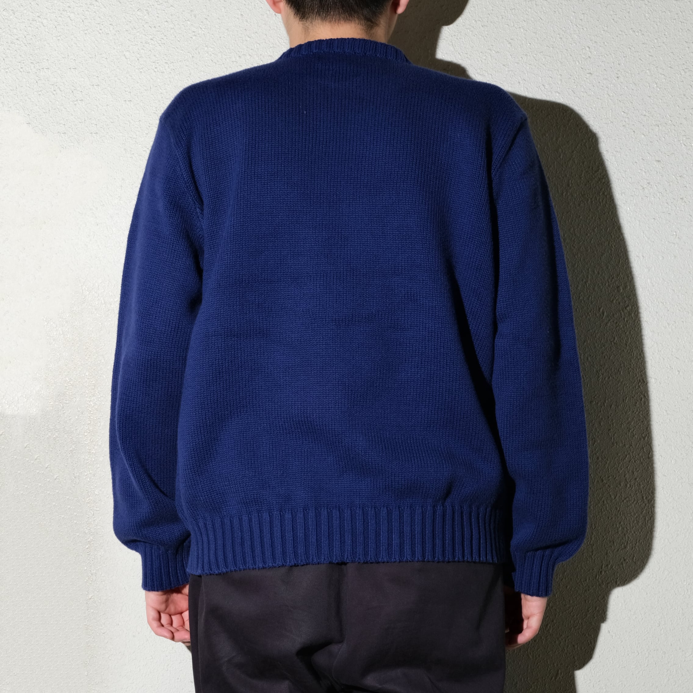暗めのブルーのカラーが印象的な一枚、左胸にポニーのつくクルーネックの定番のタイプです。