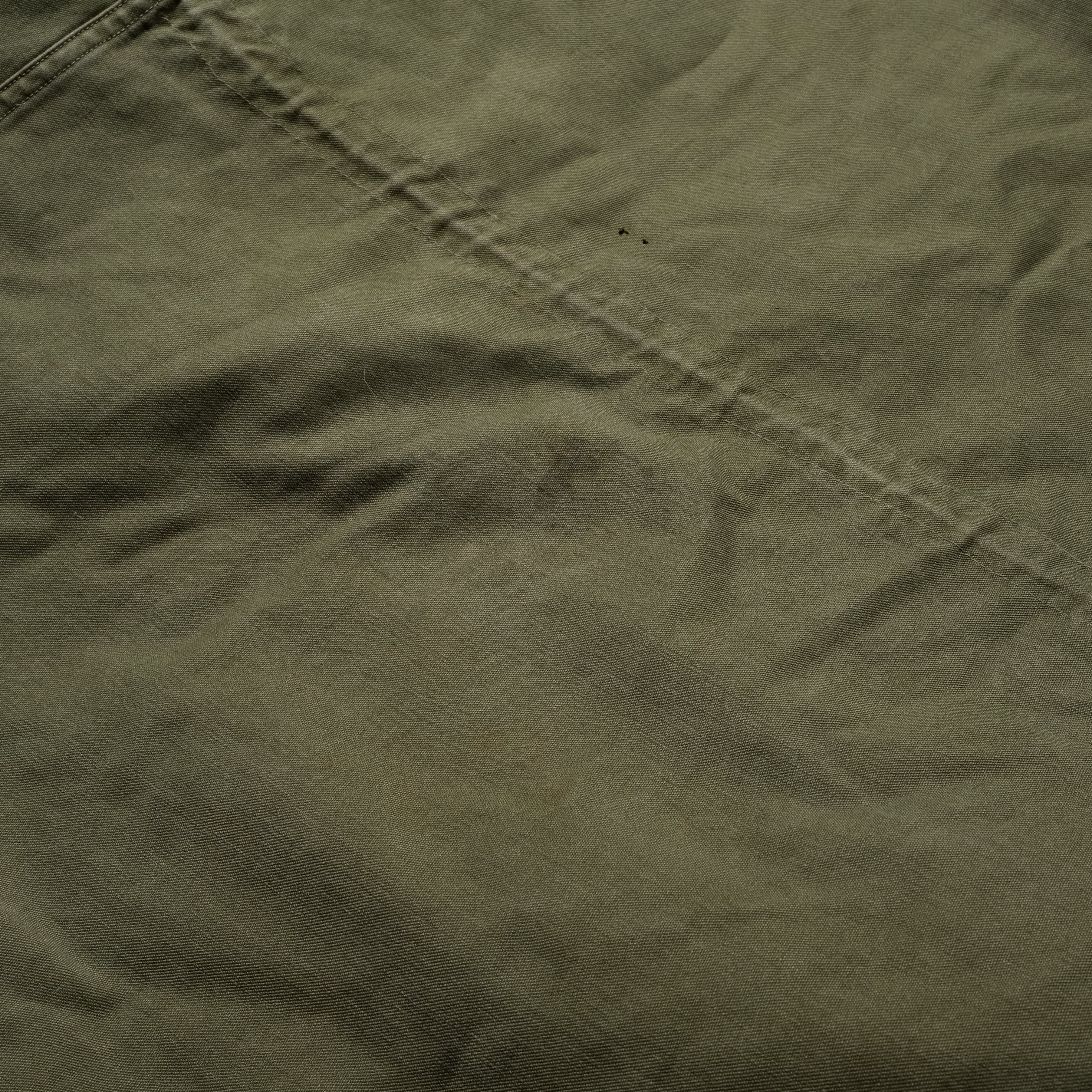 【状態】全体的に着用感、スレ。タグ付近右側の内ボタン、フロント右側の内ボタン最下部に割れがございますが着用には支障ございません。ところどころヴィンテージミリタリー特有のヨゴレ、スレキズなどございます。画像をご覧ください。着用に支障のあるダメージなど見当たりません。