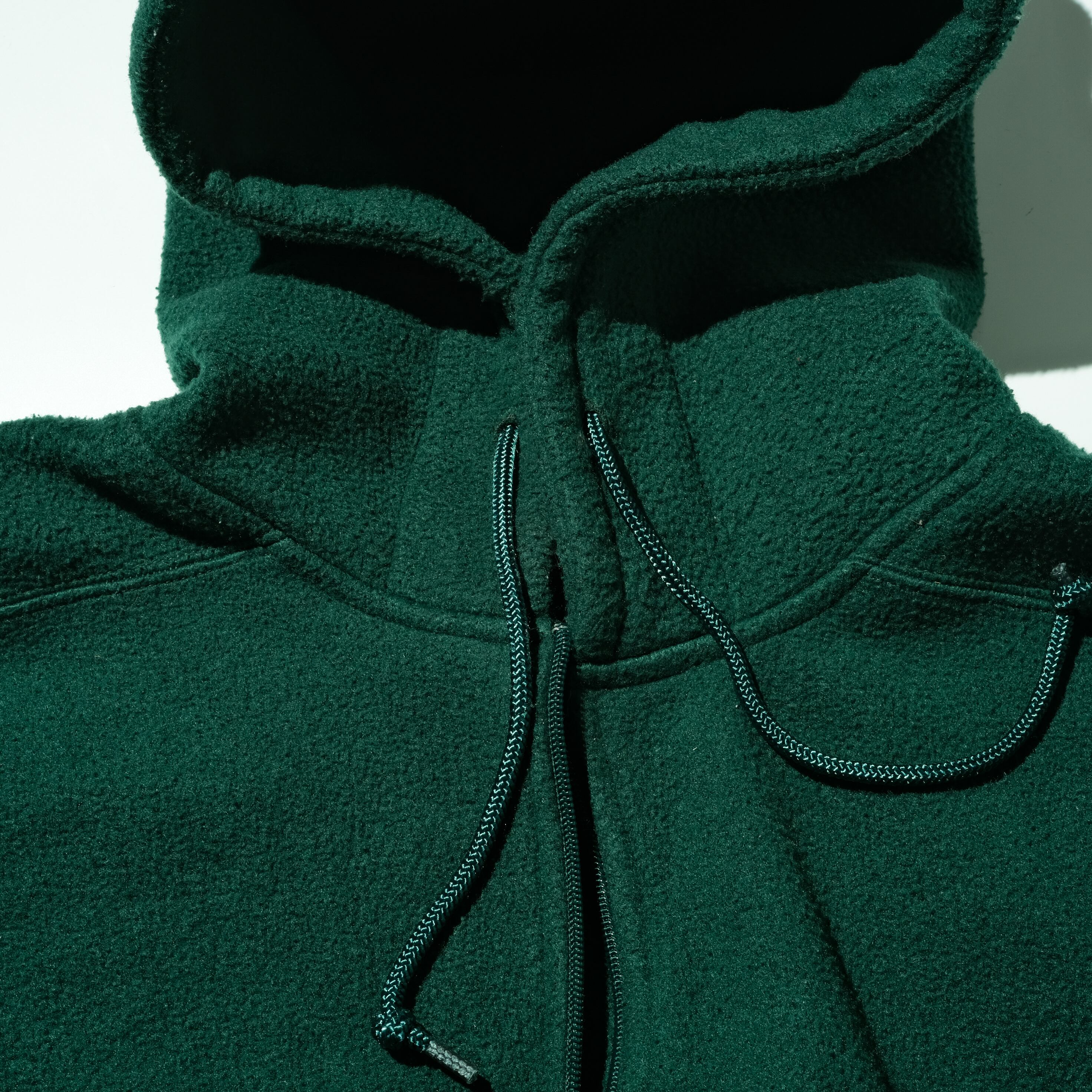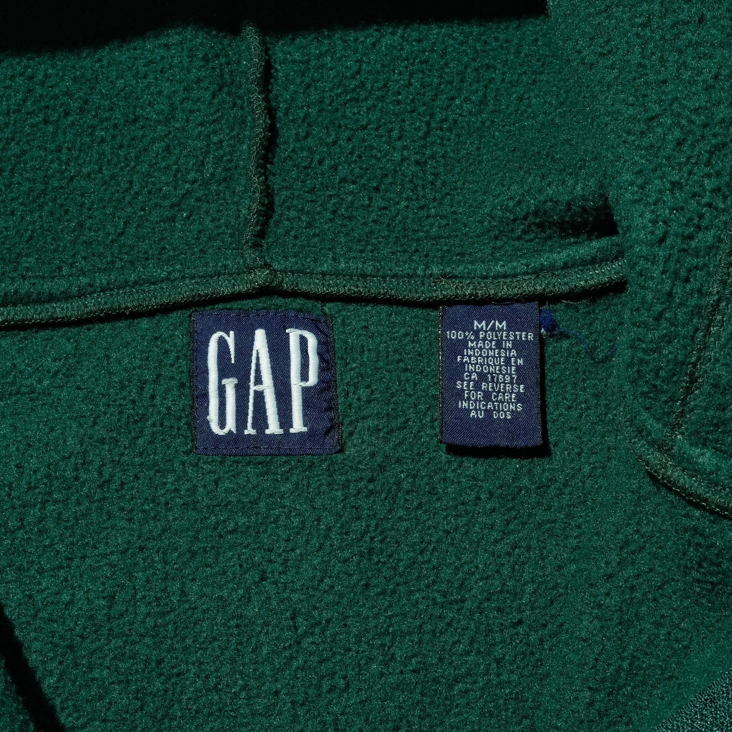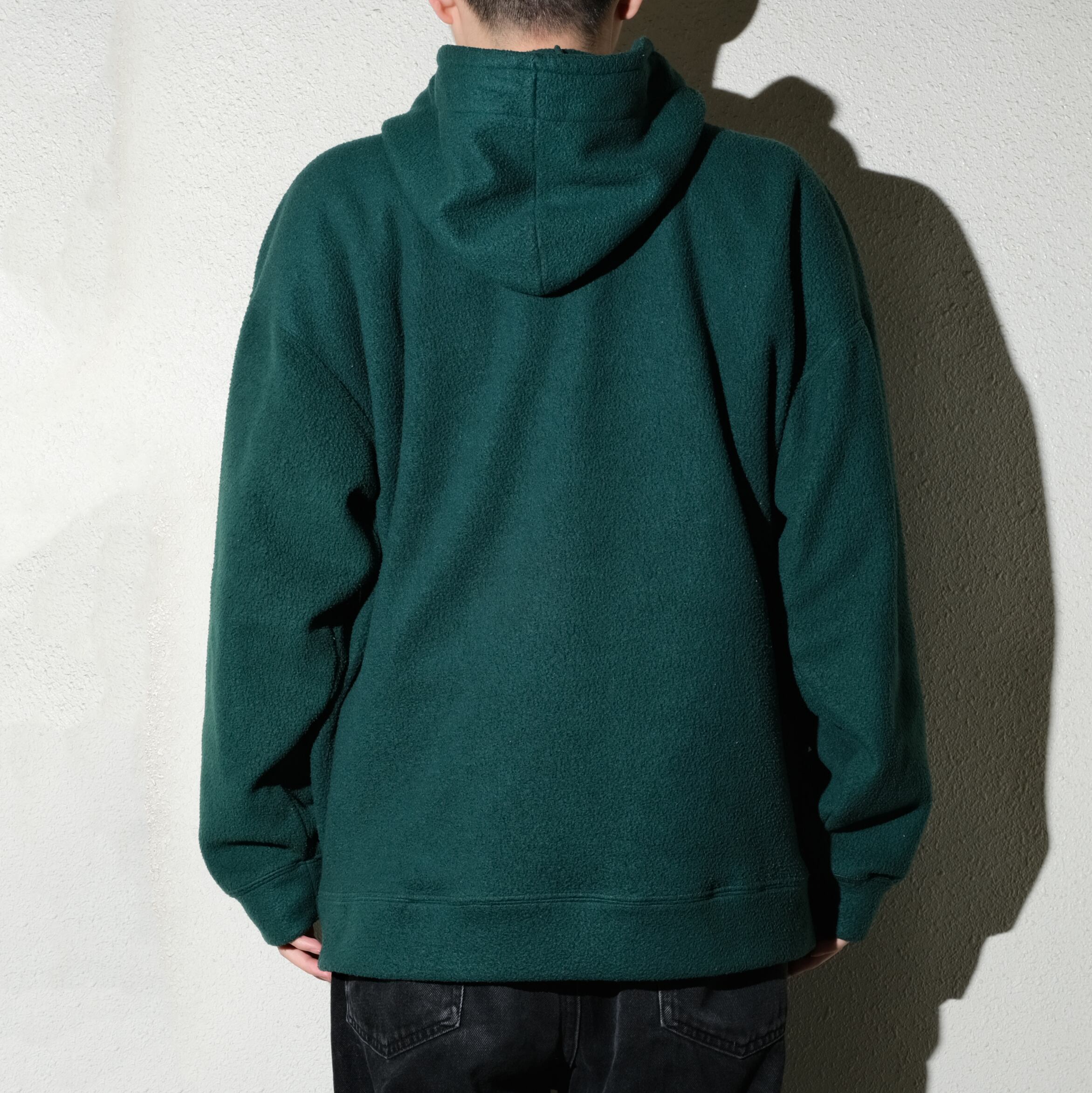 90'sの紺タグがつく一枚。良い色のグリーンのフリース、ハーフジップの仕様で色々なコーディネートに使えそうです。