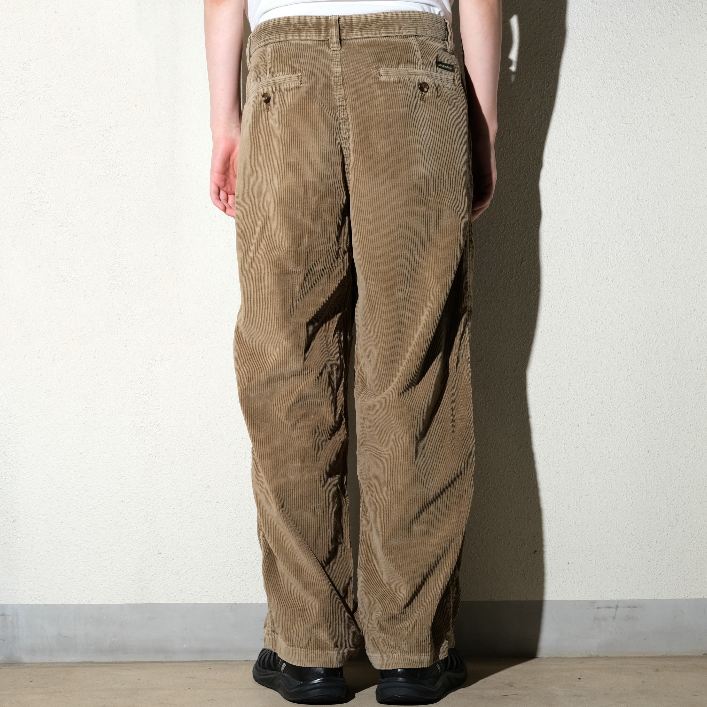 前所有者によって裾上げされておりますがクセのない綺麗なシルエットの一本。カラーもライトブラウンと定番のカラーですね。こういった太めのパンツは少しだけレングスを短く着用いただくのが良いと思いますので直しなどなく多くの方にフィットする個体かと思います。