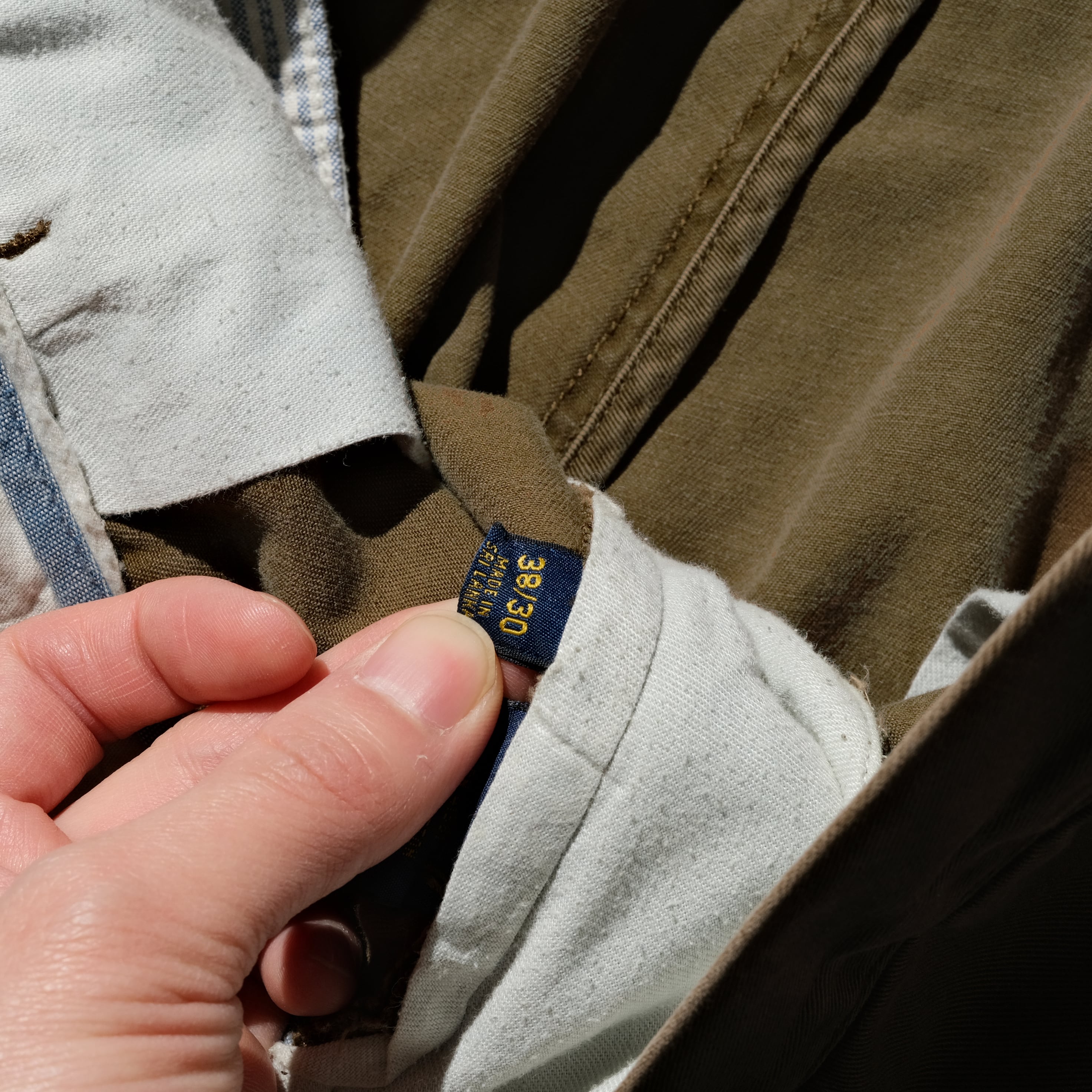 比較的新しい年代の一本、なんとも言えないオリーブカラーが良いですね。穿いてみると38×30表記のサイズということもあり、適度に太い絶妙なシルエットが出てくれました。
