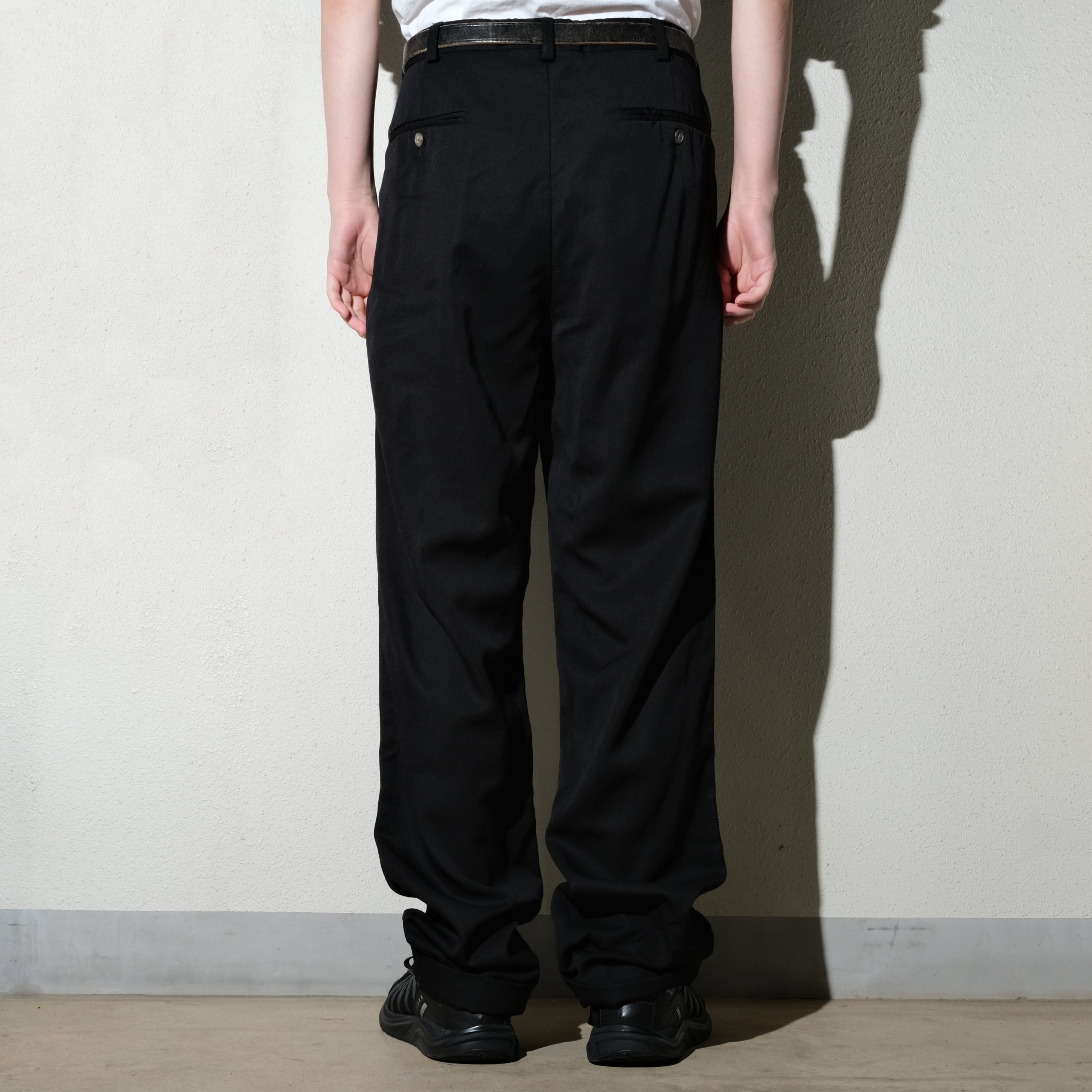 2タックの入るデザインに裾の仕上げはダブル。
