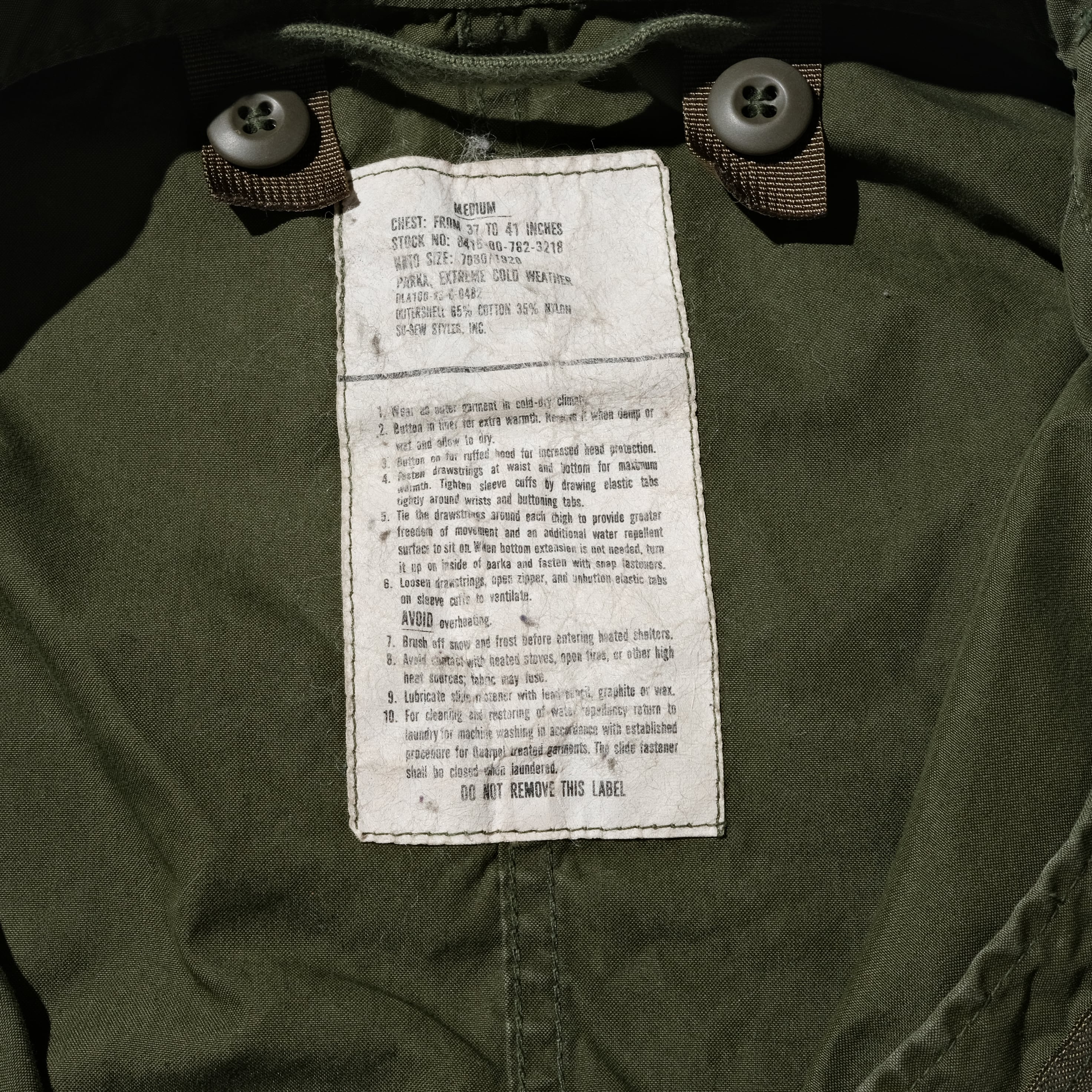 こちらは表記でMサイズの非常にコンディションのいい個体。フェード感も少なく、傷やスレなども少ないコンディション。シェルのみでの販売ですので中にお好きなアウター類やインナーを仕込んでいただけます。