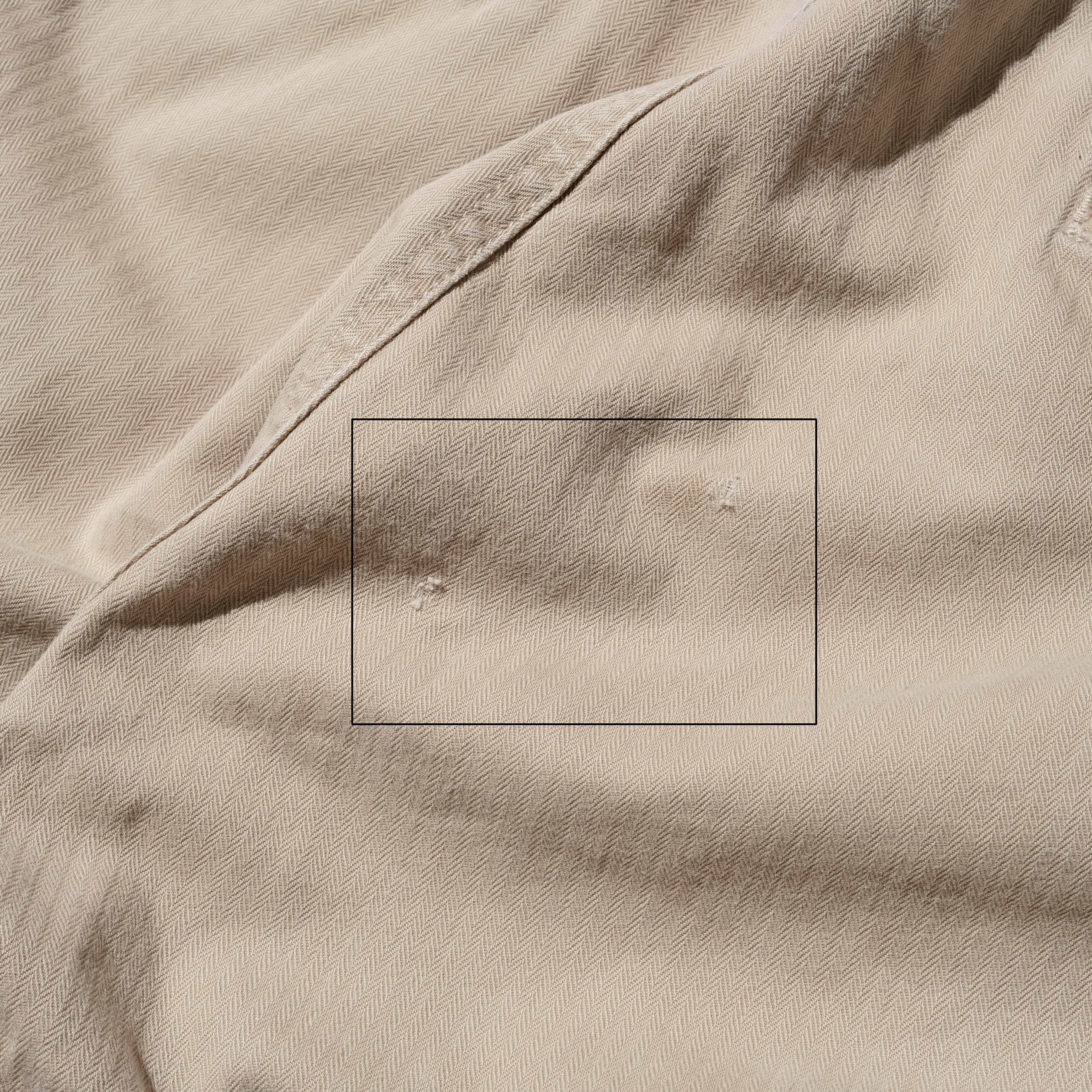 一部ディテールは省略/変更されていますがラルフらしさと言える、オリジナルにはないヘリンボーンツイルのカーキのクロスが使用されております。