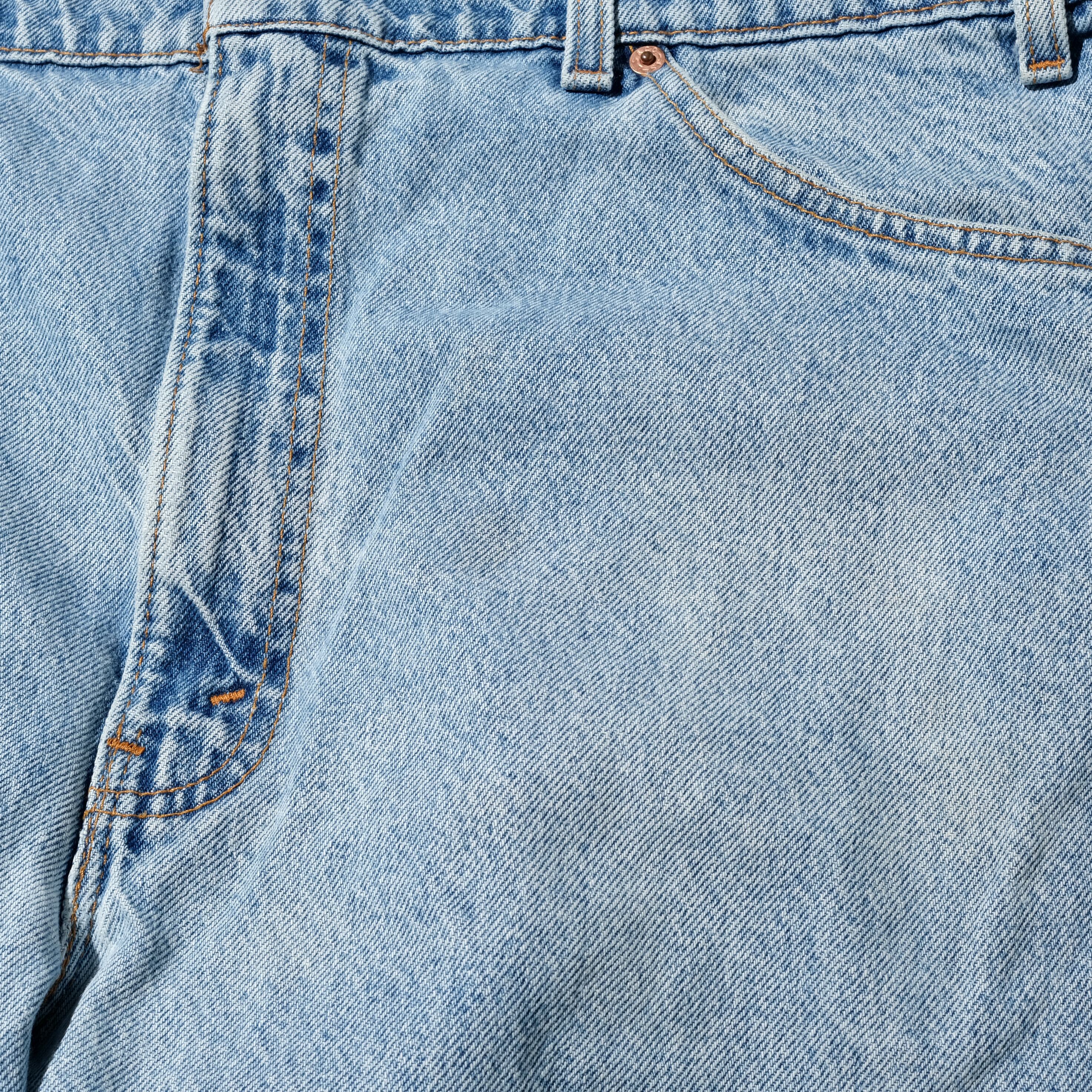 全体的にフェードの進行したアメリカらしいカラーの個体、裾上げがされていることと表記サイズがW40というところを加味してUSA製のリーバイスとしてはお求めやすいプライスに設定いたしました。