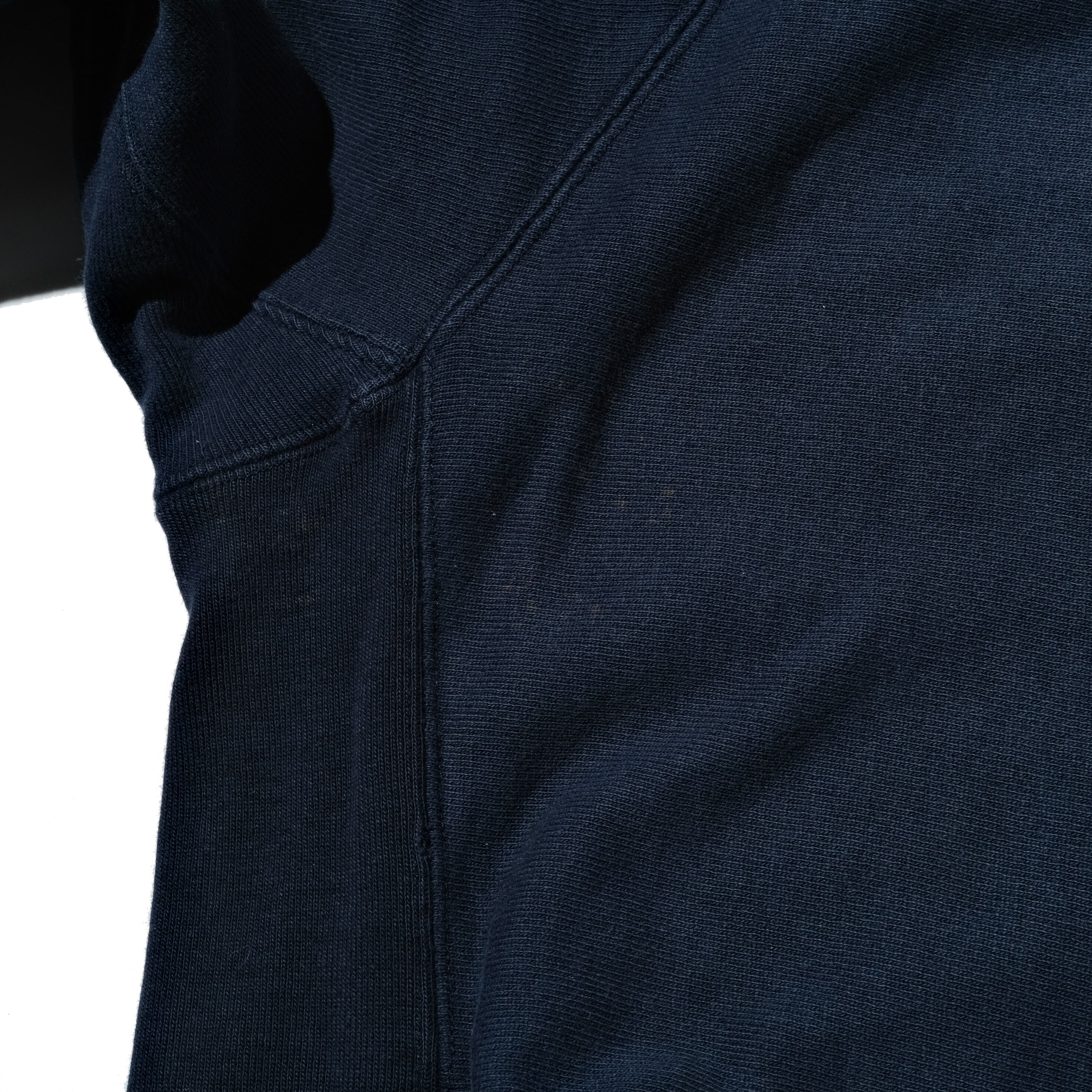 使いやすいネイビーカラーに通常のものとは違うサイドポケット、そしてラグランスリーブの仕様がクールです。致命的なものはないのですが、着用感のある個体ではありますので抑えたプライスに設定できているのではないでしょうか。
