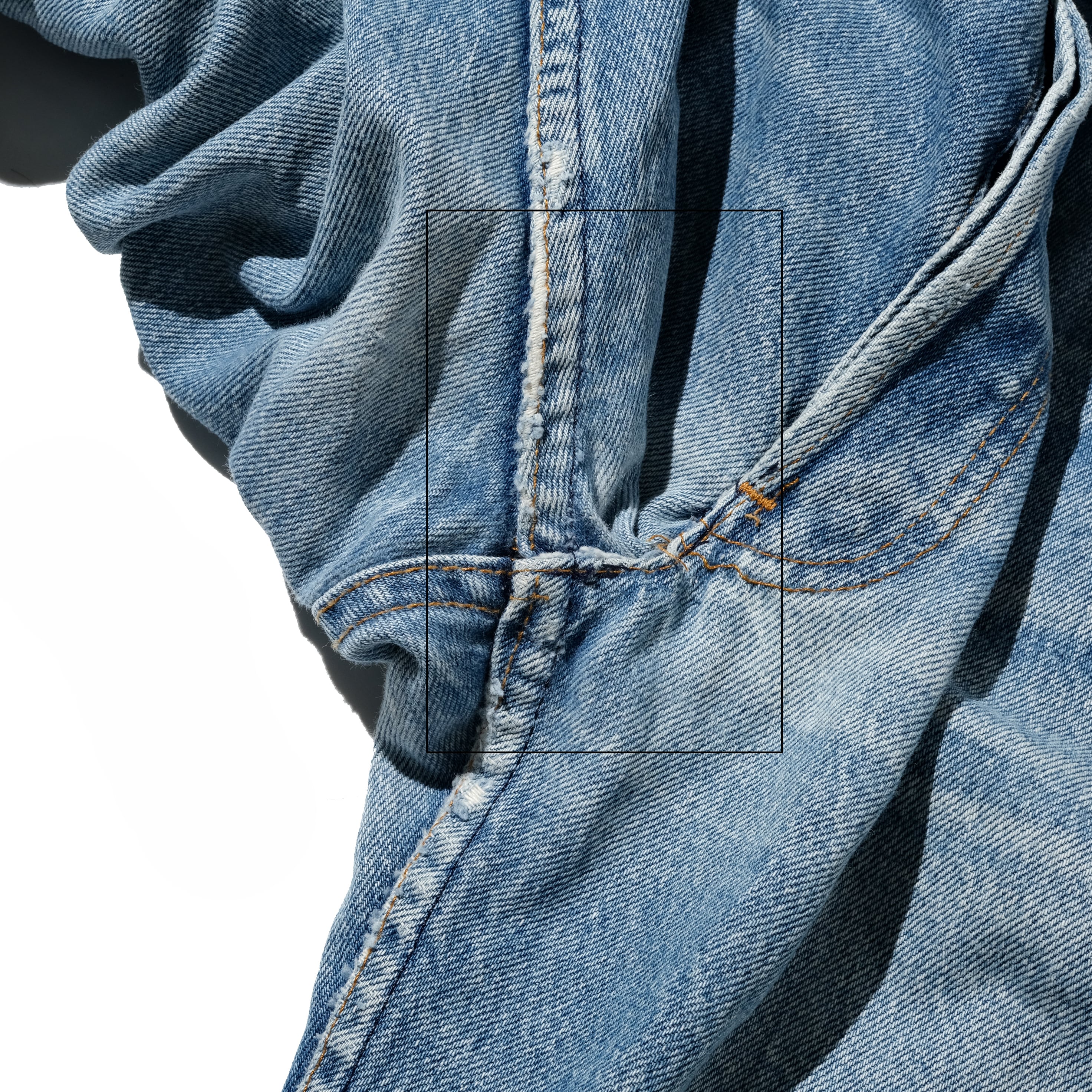 【状態】全体的に着用感、スレ。フェード。裾部スレ。股部分にリペア。左膝部にダメージ。その他目立つダメージやヨゴレなど見当たりません。