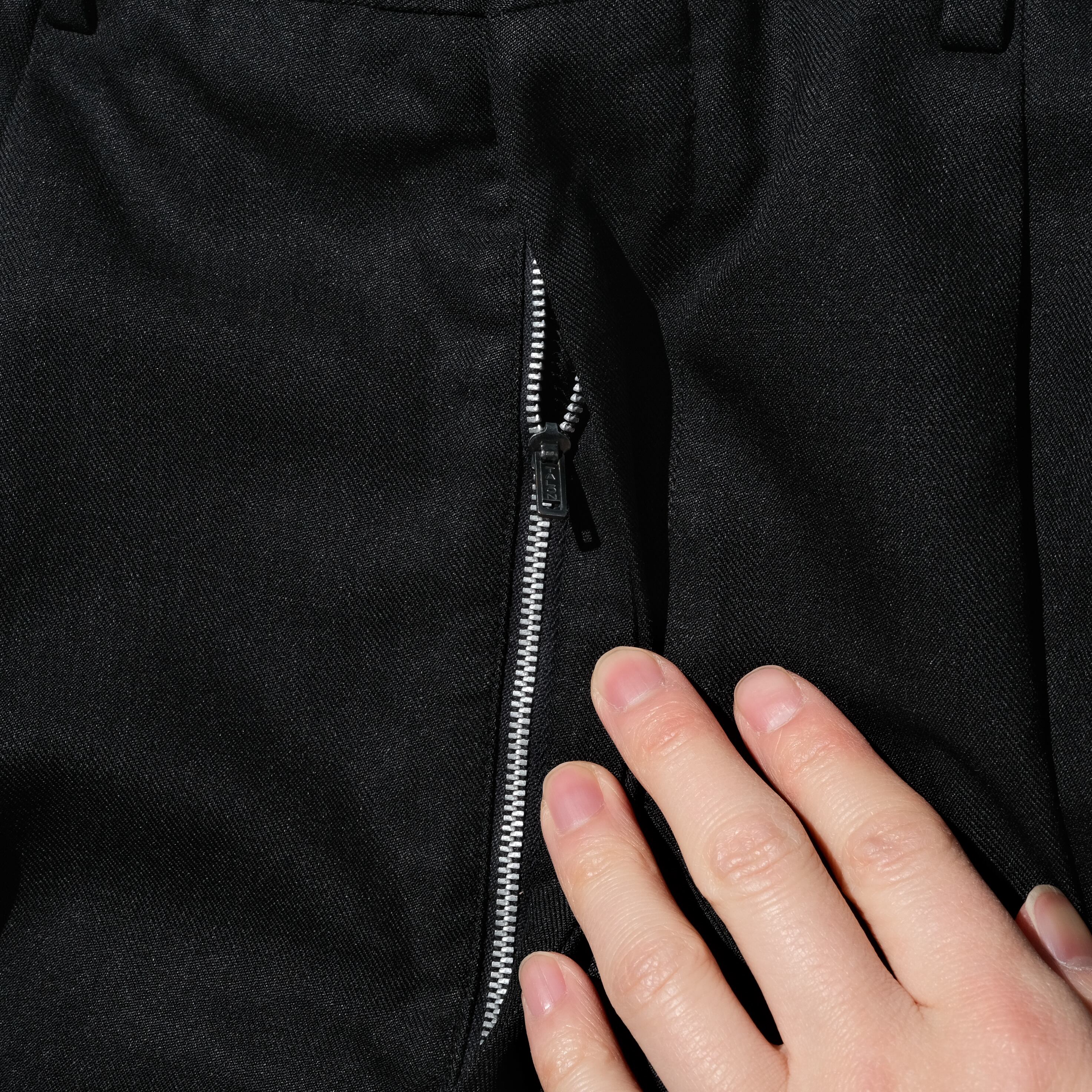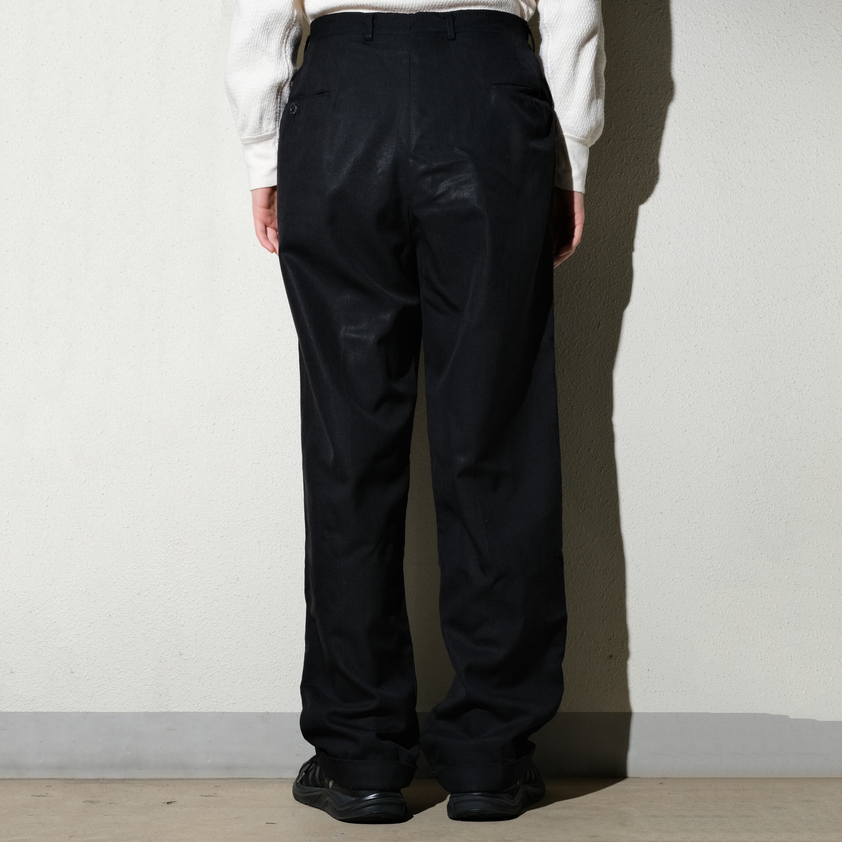 60'sごろのタロンジップのつく、2タックのウールスラックス。ビンテージらしいストレートシルエットにオールブラックカラーで非常にクールなアイテムです。