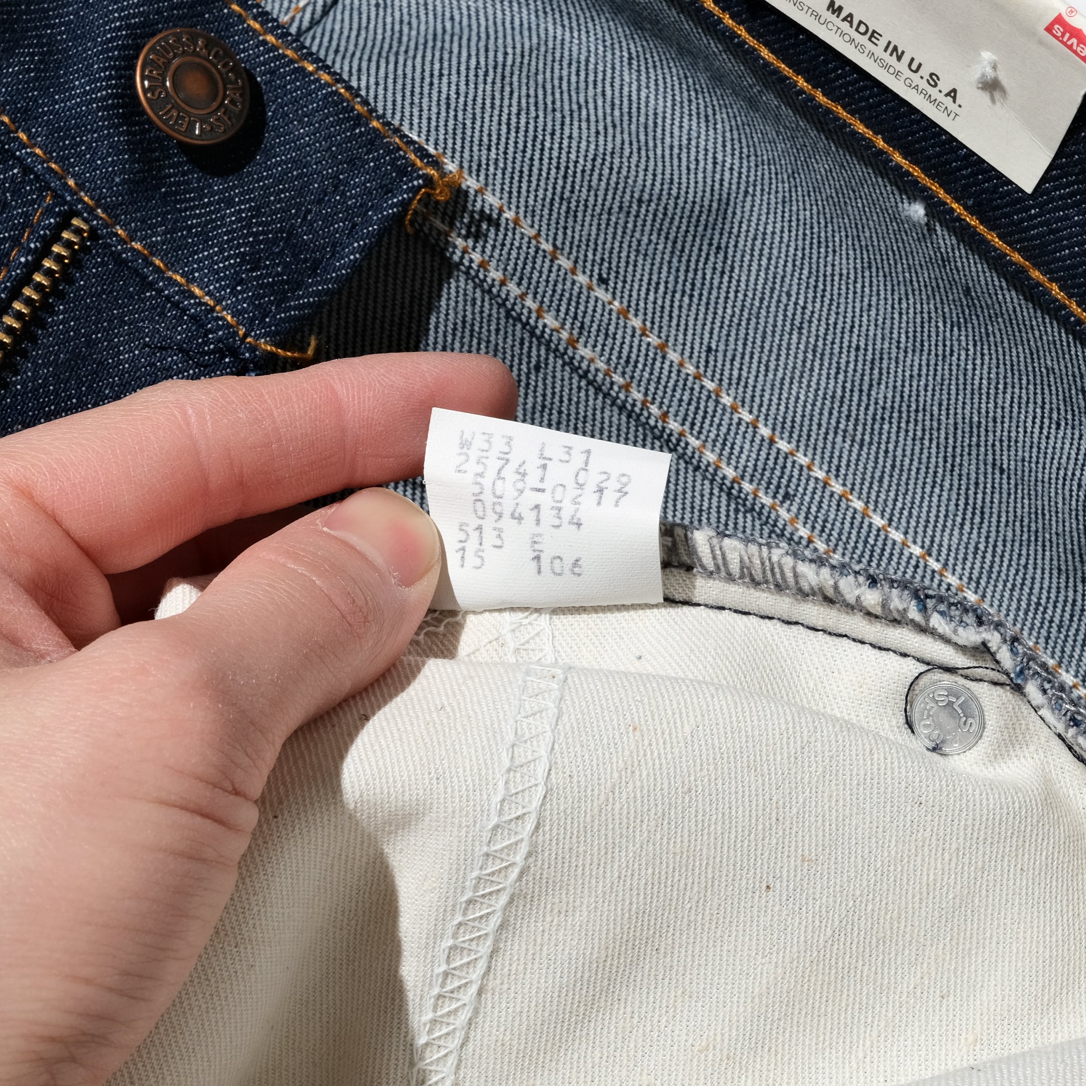 86年製の509品番、防縮加工のされた505などと同じ生地、いわゆる生デニムの状態で販売されていたもののデッドストックとなります。