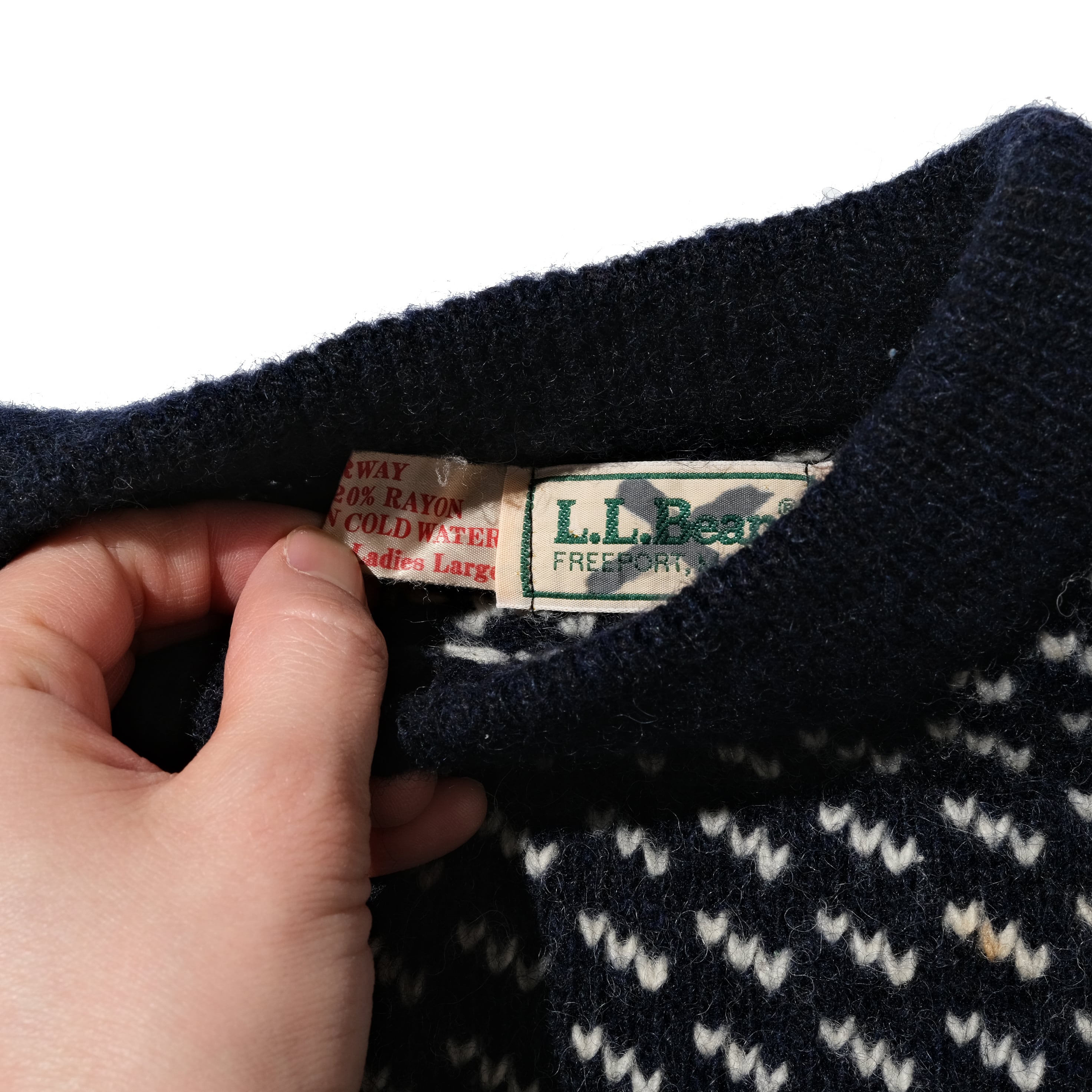 80's L.L.Bean Birds Eye knit sweater made in Norway[Women's L]