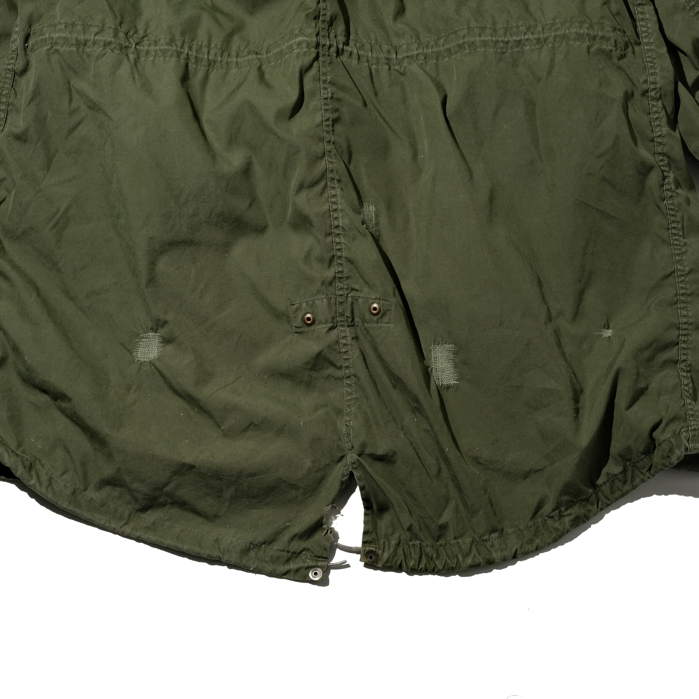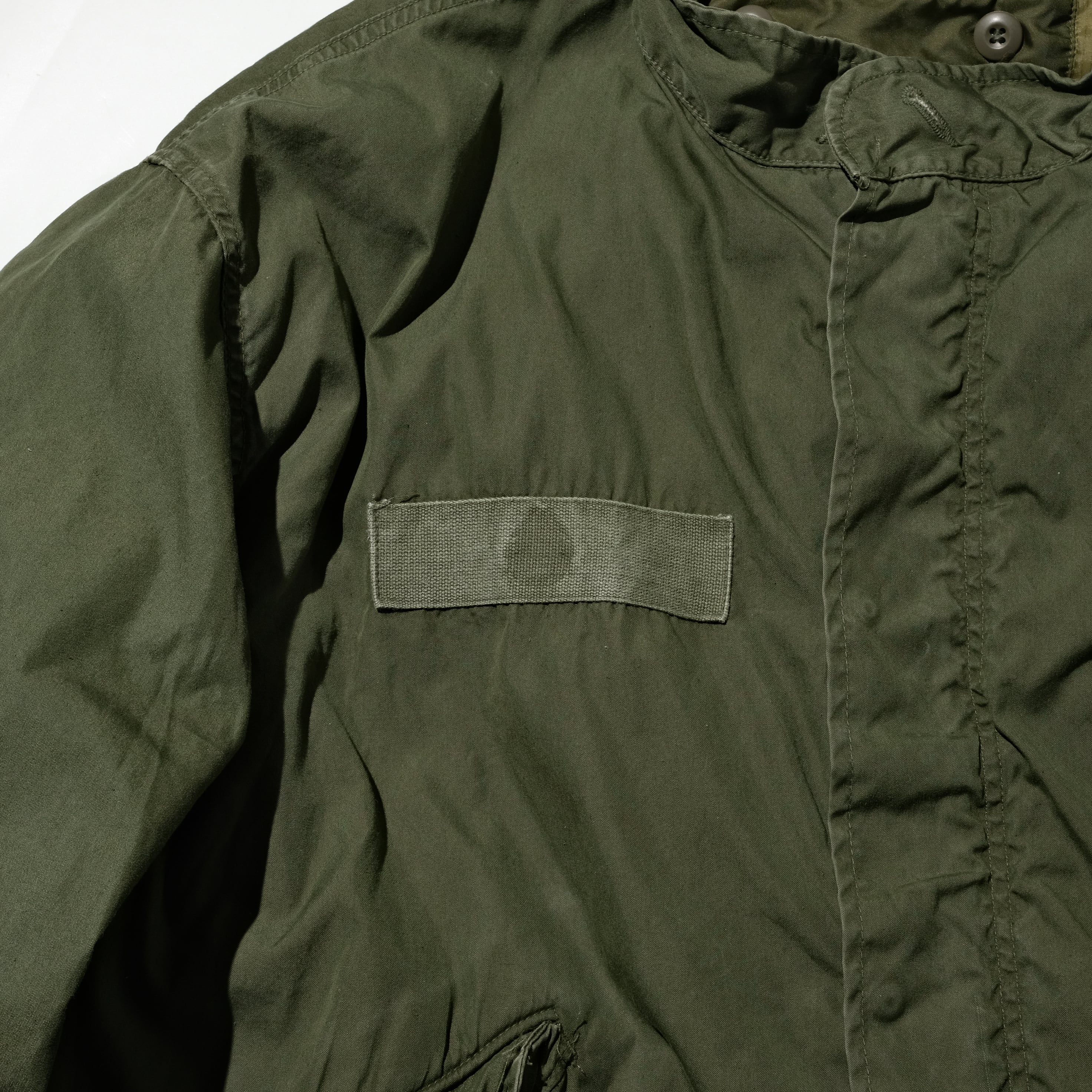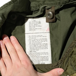 【状態】全体的にミリタリーアイテム特有の着用感、スレ、ヨゴレ。バックにリペア、ダメージ。ライナーに傷。左そでボタン欠損。
