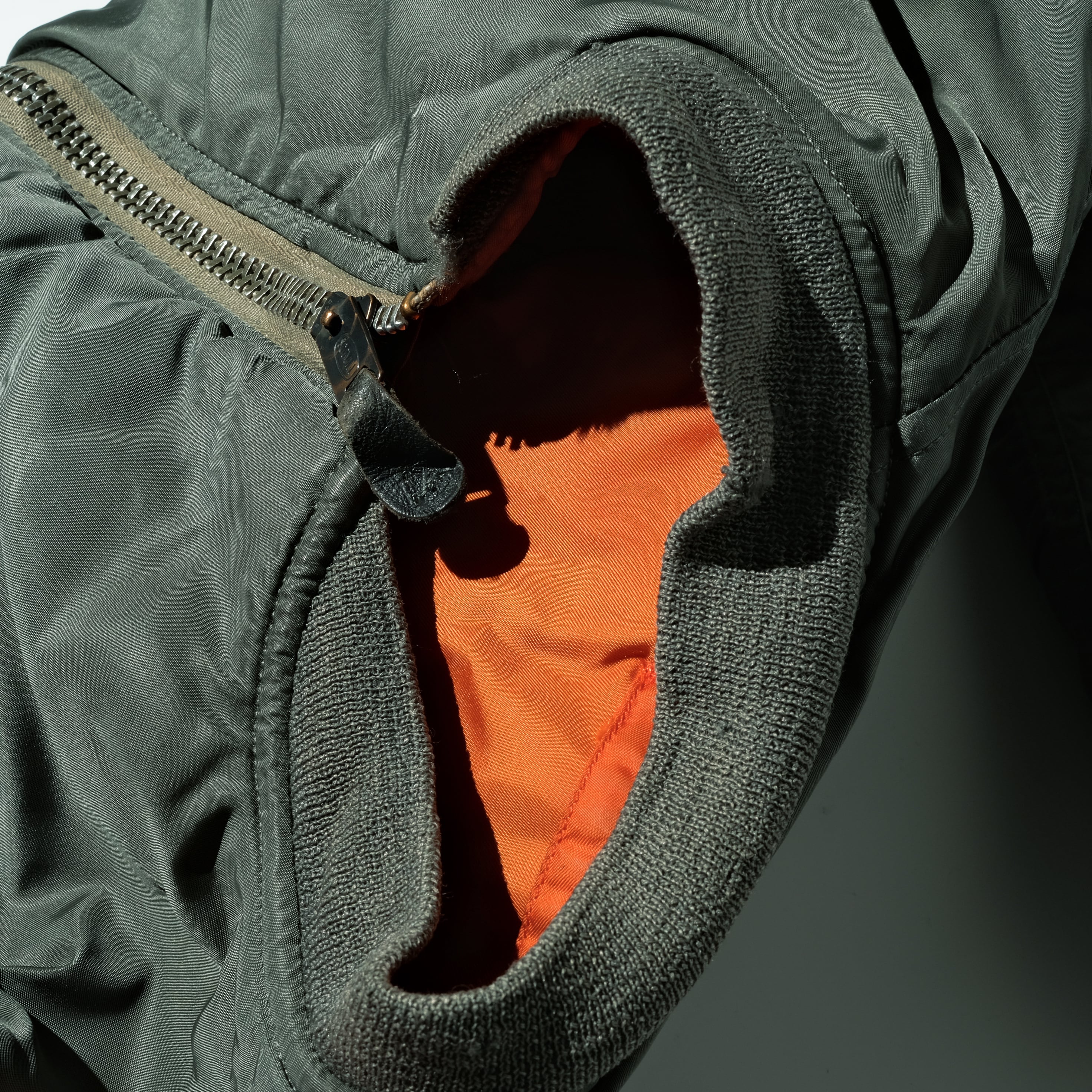 言わずと知れた名品、MA-1。オリジナル品の機能的なシルエットはやはり一癖あり、リプロダクト品とは完全に違った風格のあるアイテムです。