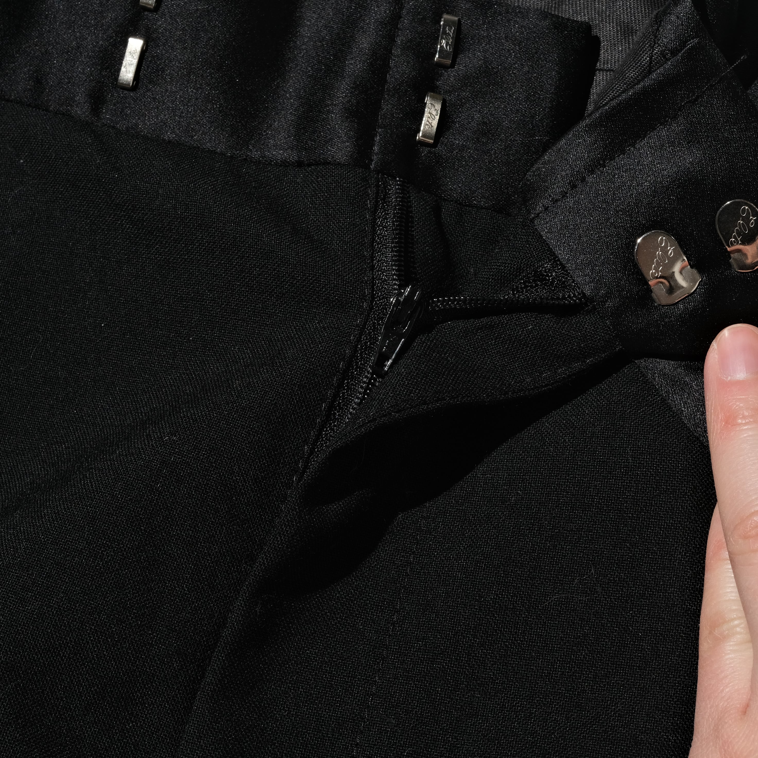 Side lined black wool slacks [32.5x28]