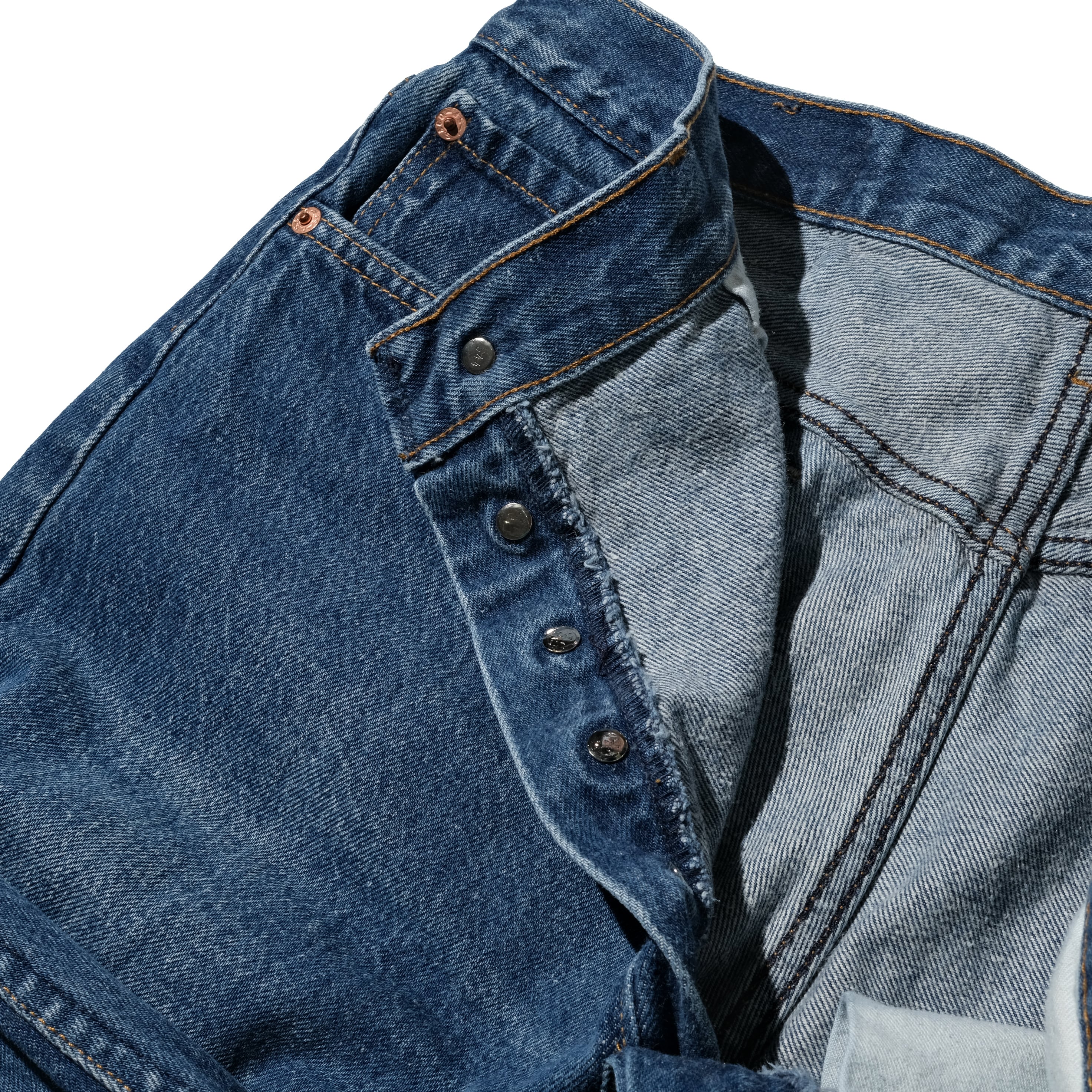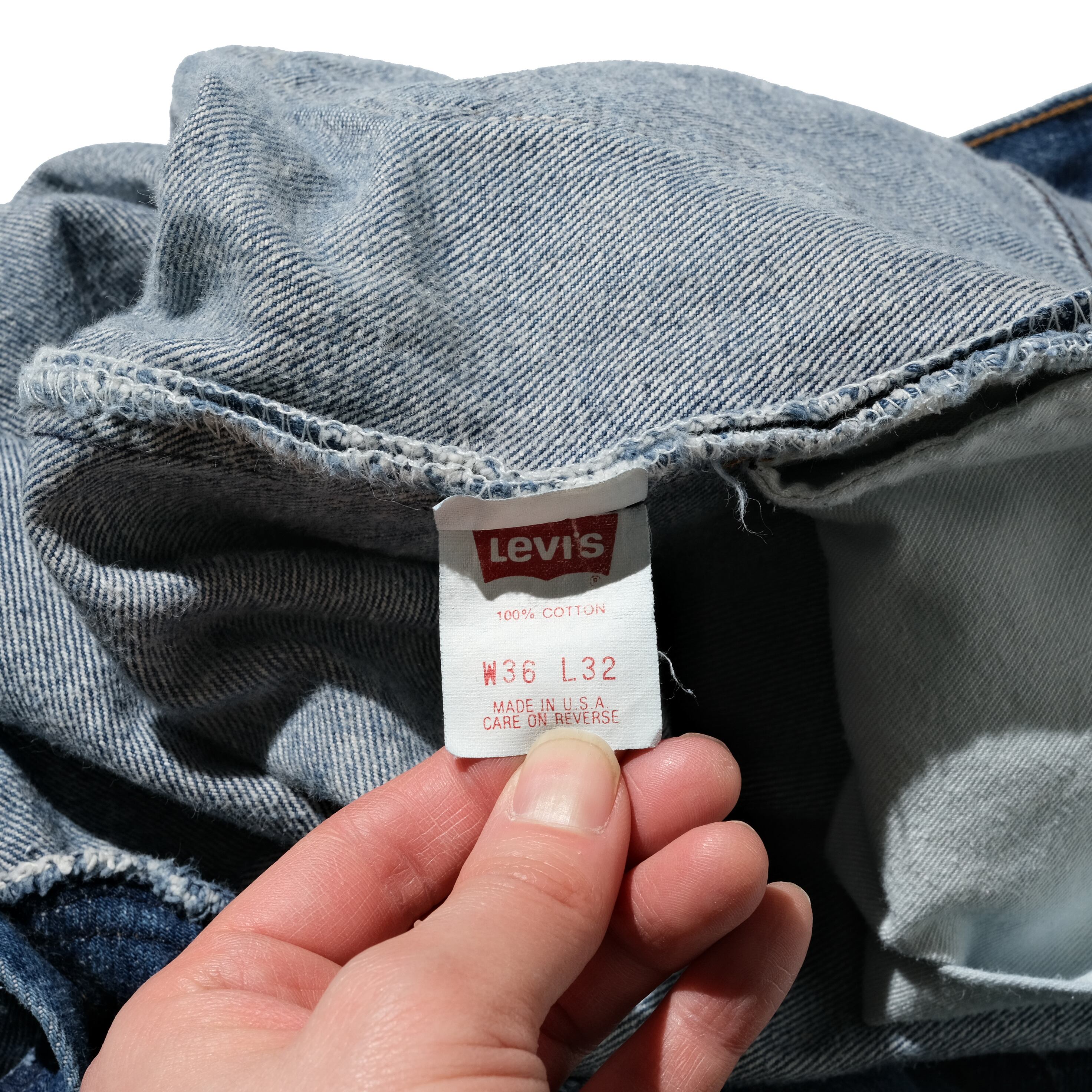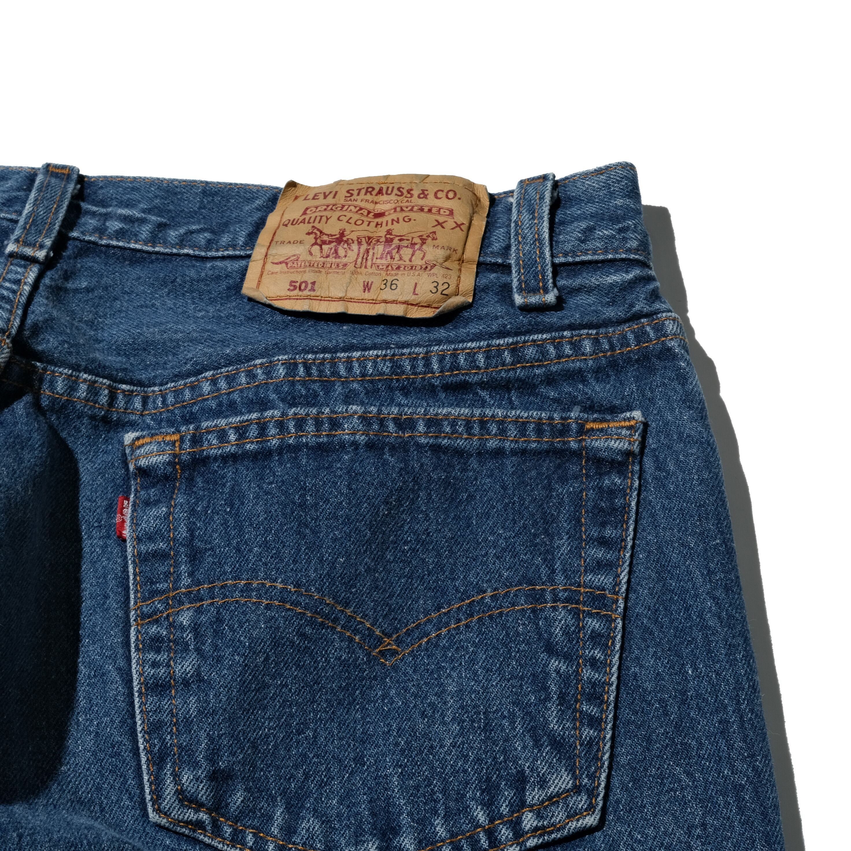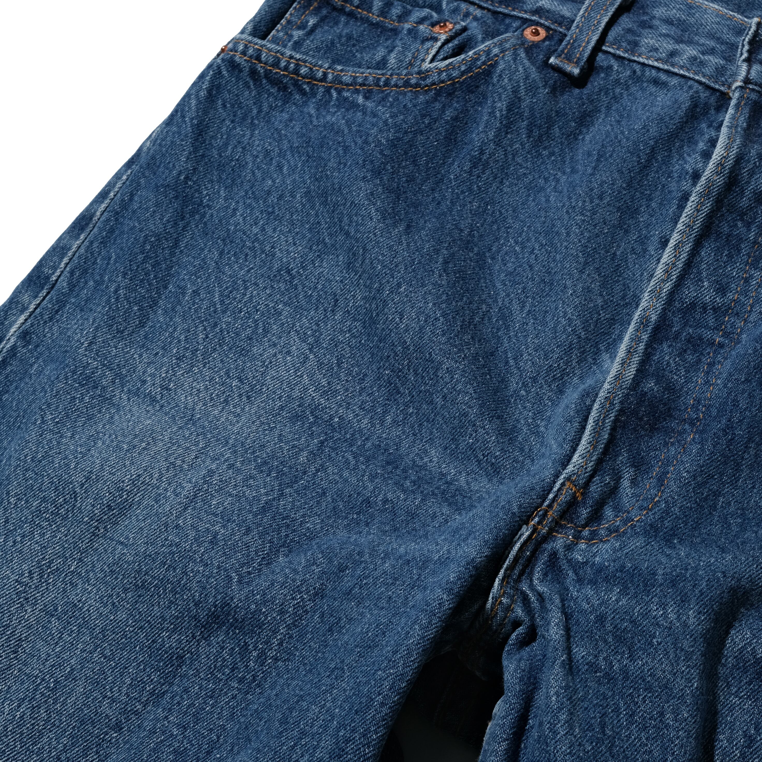 赤文字で品番が表記される通常見かけるUSA製のものより一世代前のモデル、やはり独特のオールド感を感じるインディゴのカラーが特徴的です。