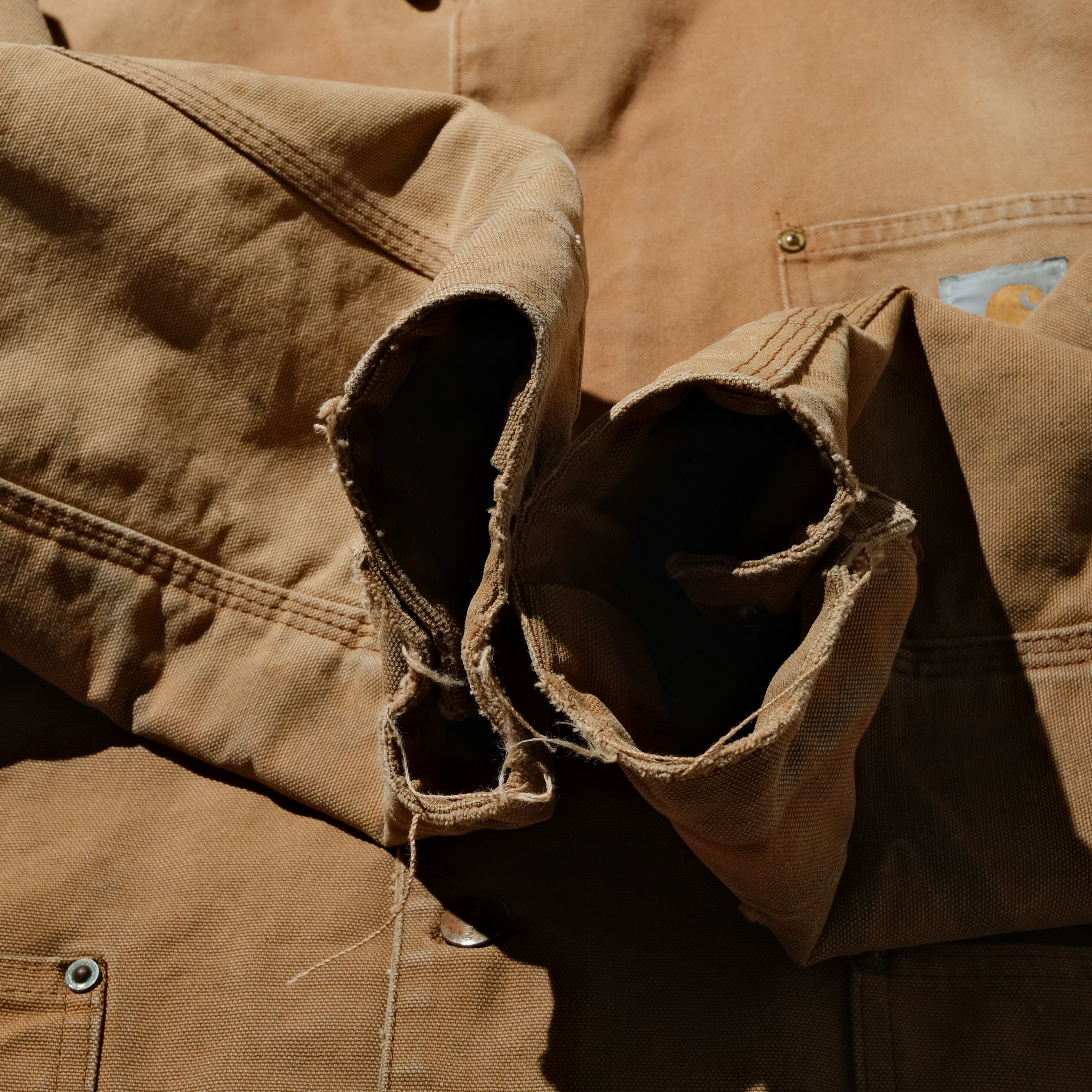 質実剛健な作り、そして近年人気爆発のカーハート。00's以降でもしっかりとした作りのものが多いですのでそちらも同じように人気ですが、こちらはユニオンチケットがつきタグにも星型のcrafted with pride in USAのロゴがうっすらと見える80'sのもの。