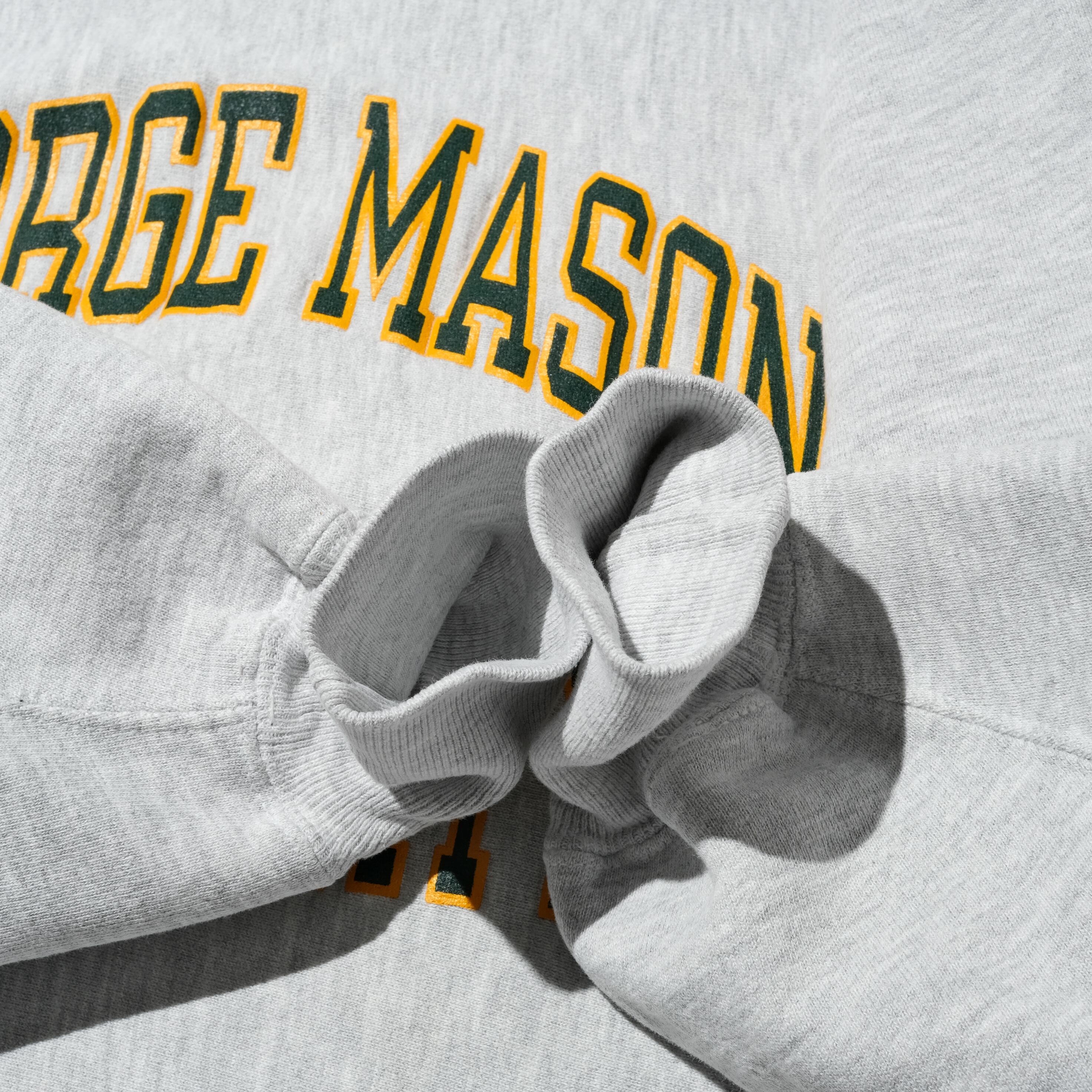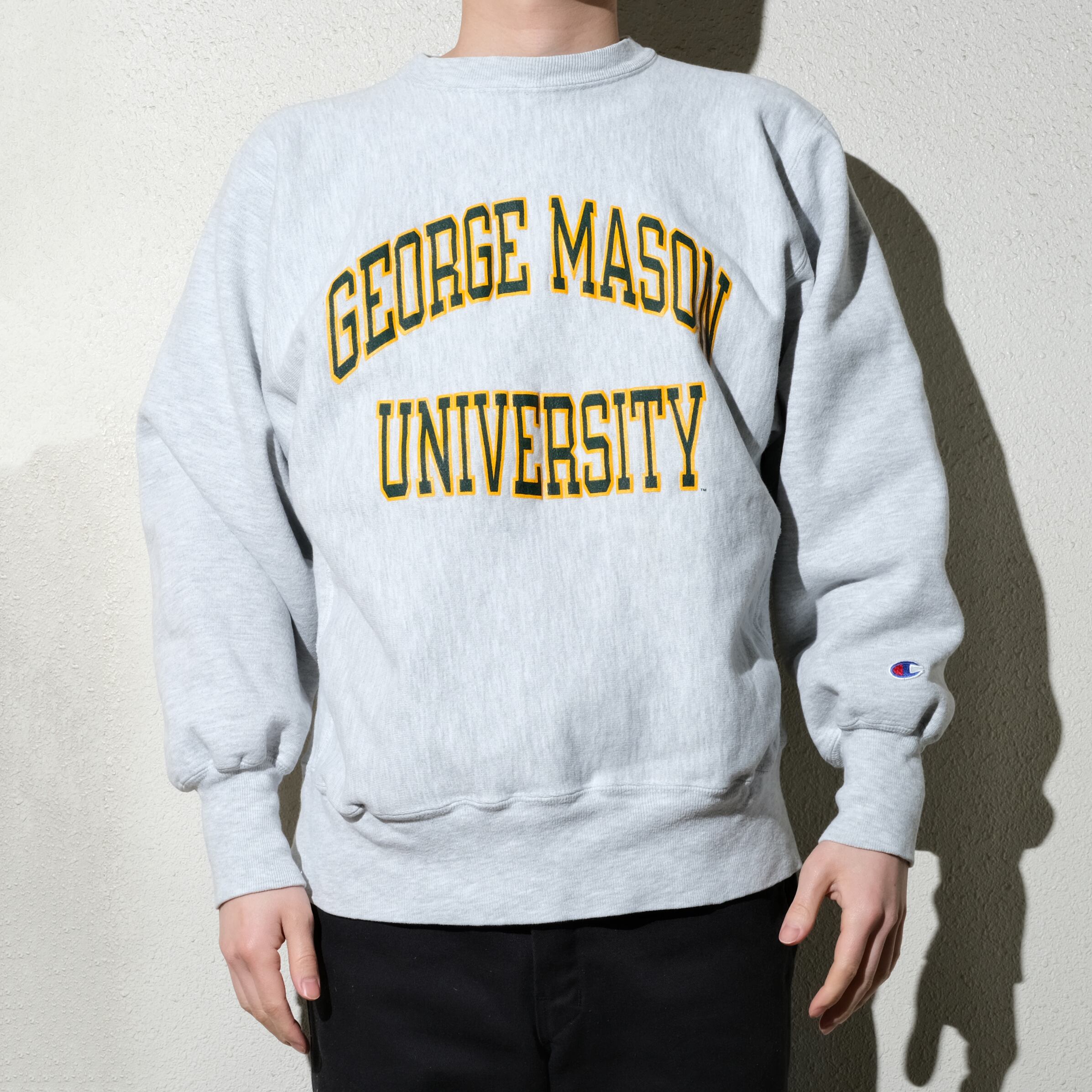 90's~の刺繍タグ、メキシコ製の一枚。バージニア州のジョージ・メイソン大学のプリントが2段で入る良いデザインの個体。メキシコ製のものはそれ以前のUSA製のものに比べて着丈の長いものが多いのですが、こちらの個体はチヂミが縦方向に大きく出たのか身幅が広く着丈の短いシルエットです。