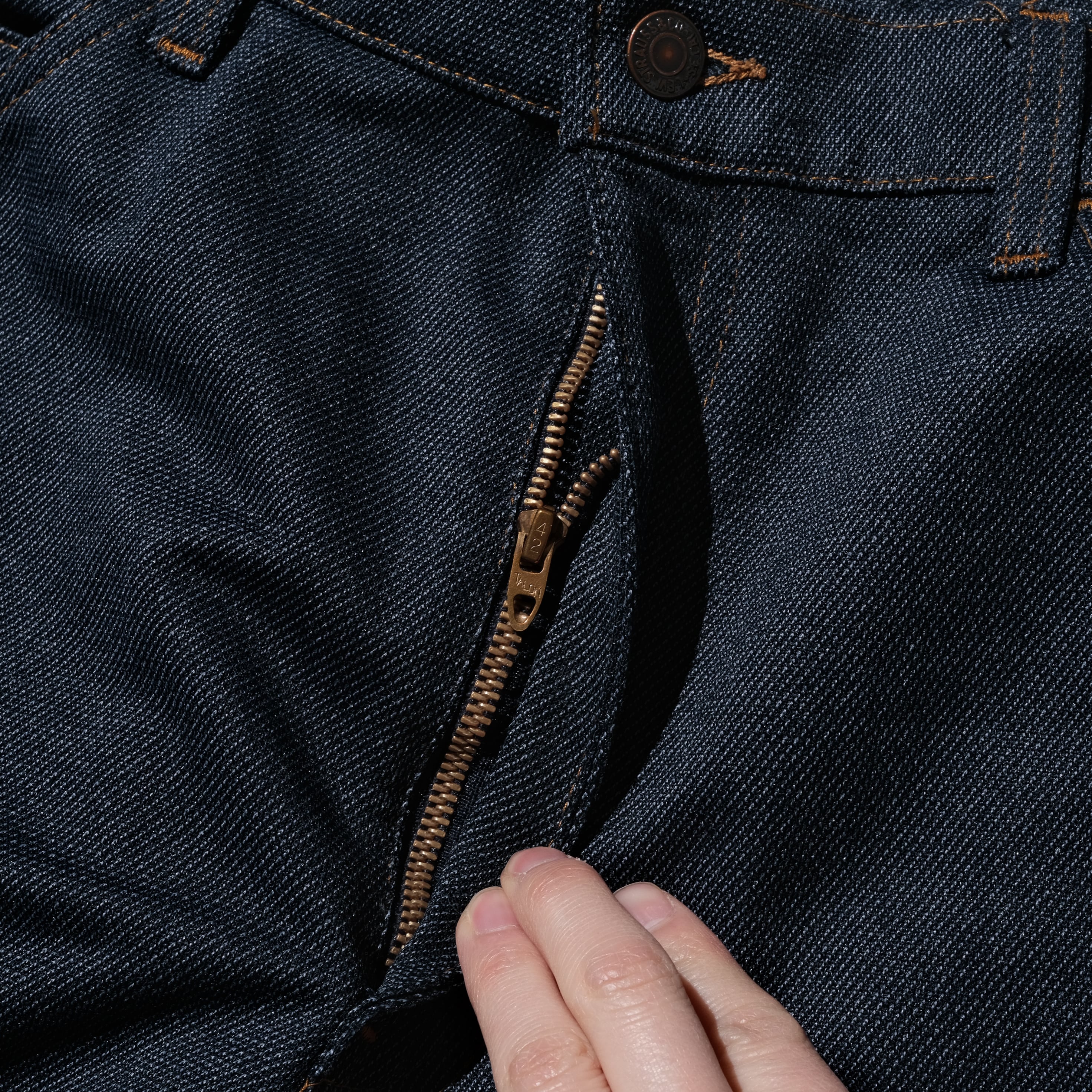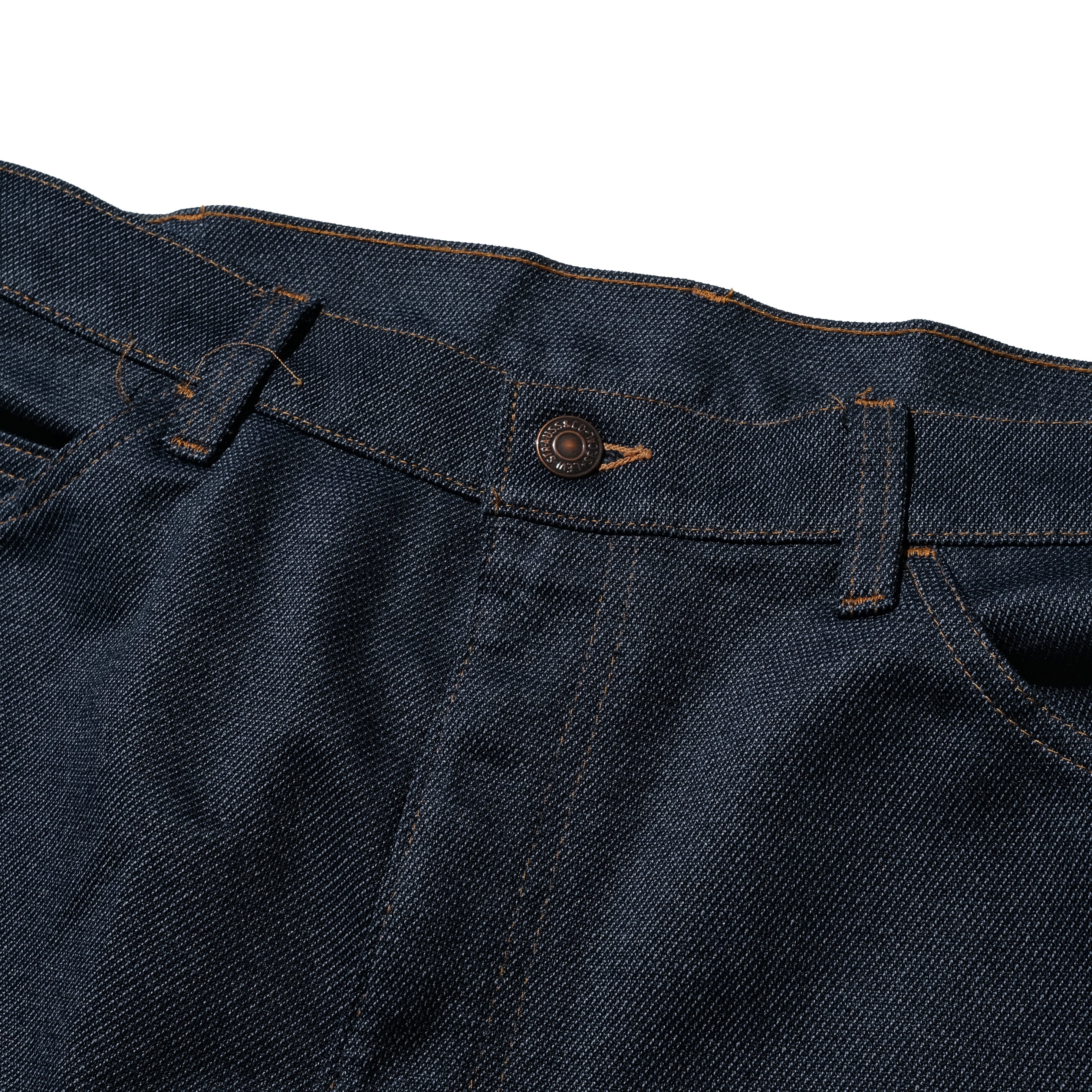 デザインはデニムパンツのそれを踏襲しておりますが、生地自体はポリエステルのものが使用されたアイテム。フェードしない素材ですのでスタプレほどスラックスライクになりきらず、かといって光沢感もありデニムほどカジュアルにならない面白いアイテムです。