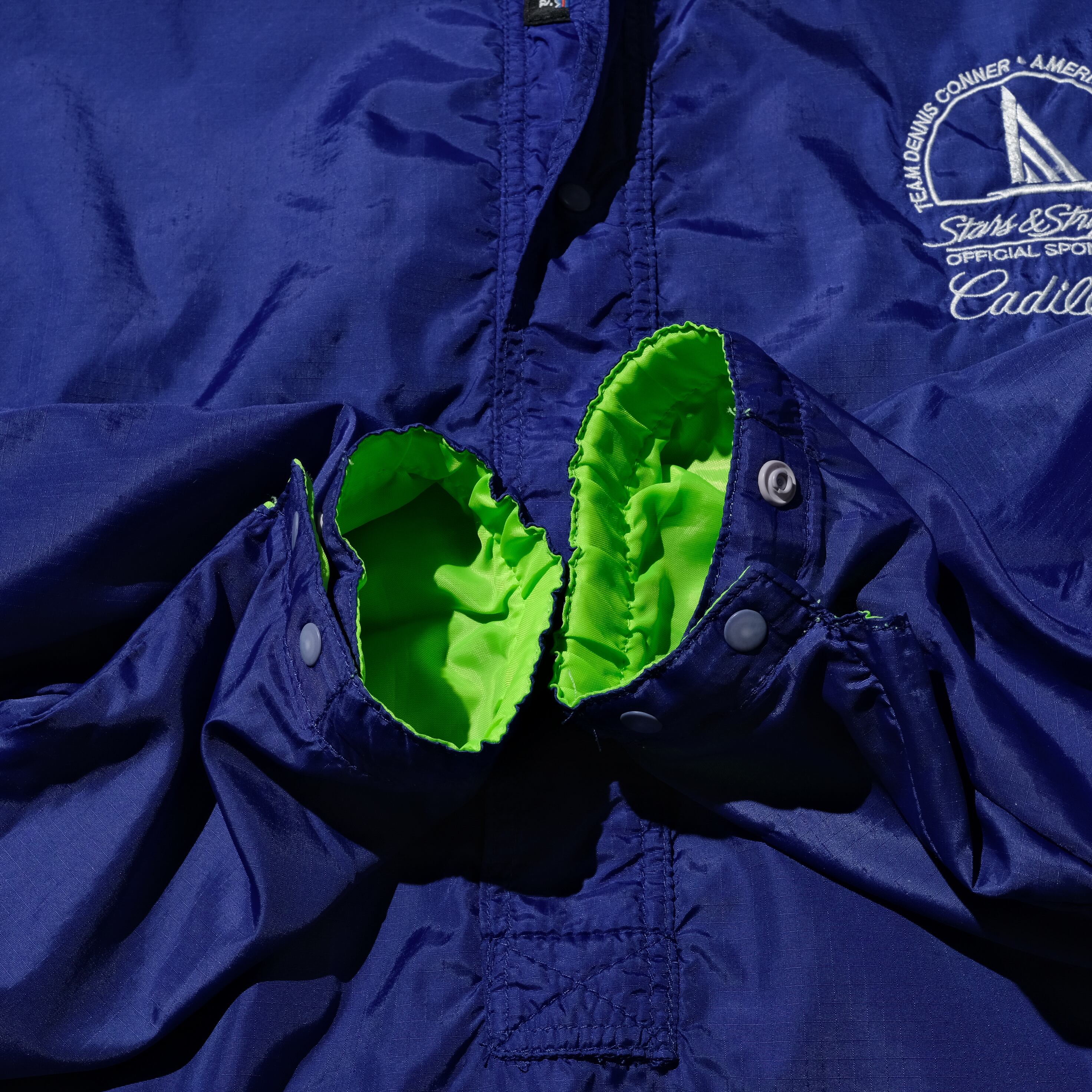 おそらくメインとなるであろうブルーの側はリップストップの生地、そして前述の刺繍が左胸に入ってクールです。当時の定価も高いであろうパタゴニアを贅沢に使用した企業モノ。これからの季節にさっと羽織りたい一枚です。