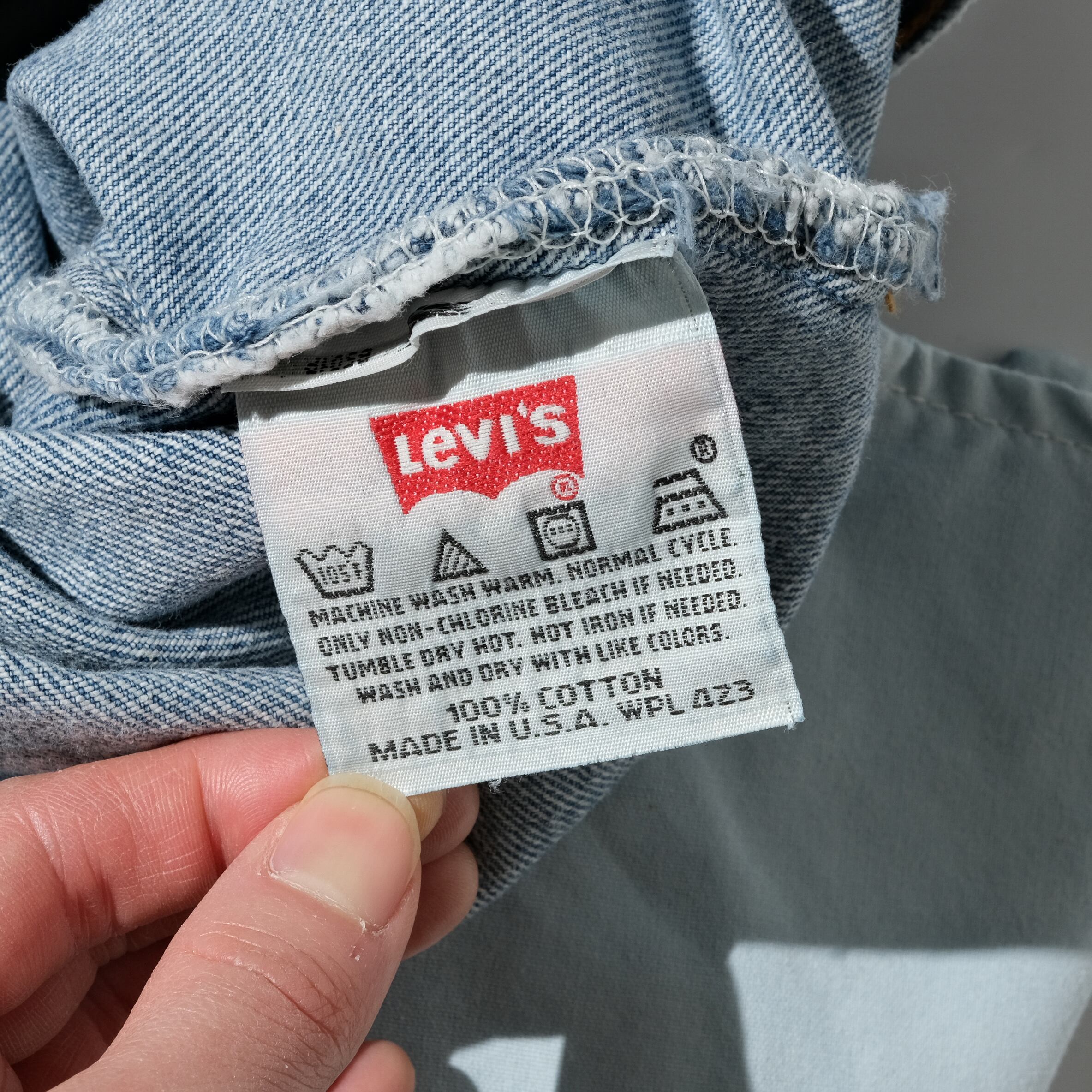 97年、USA製の一本。全体的に均一にフェードした気持ちのいいカラー。個人的には濃淡のついたものもいいですが、こういった淡くフェードしたカラーも合わせやすそうで良いかと思います。