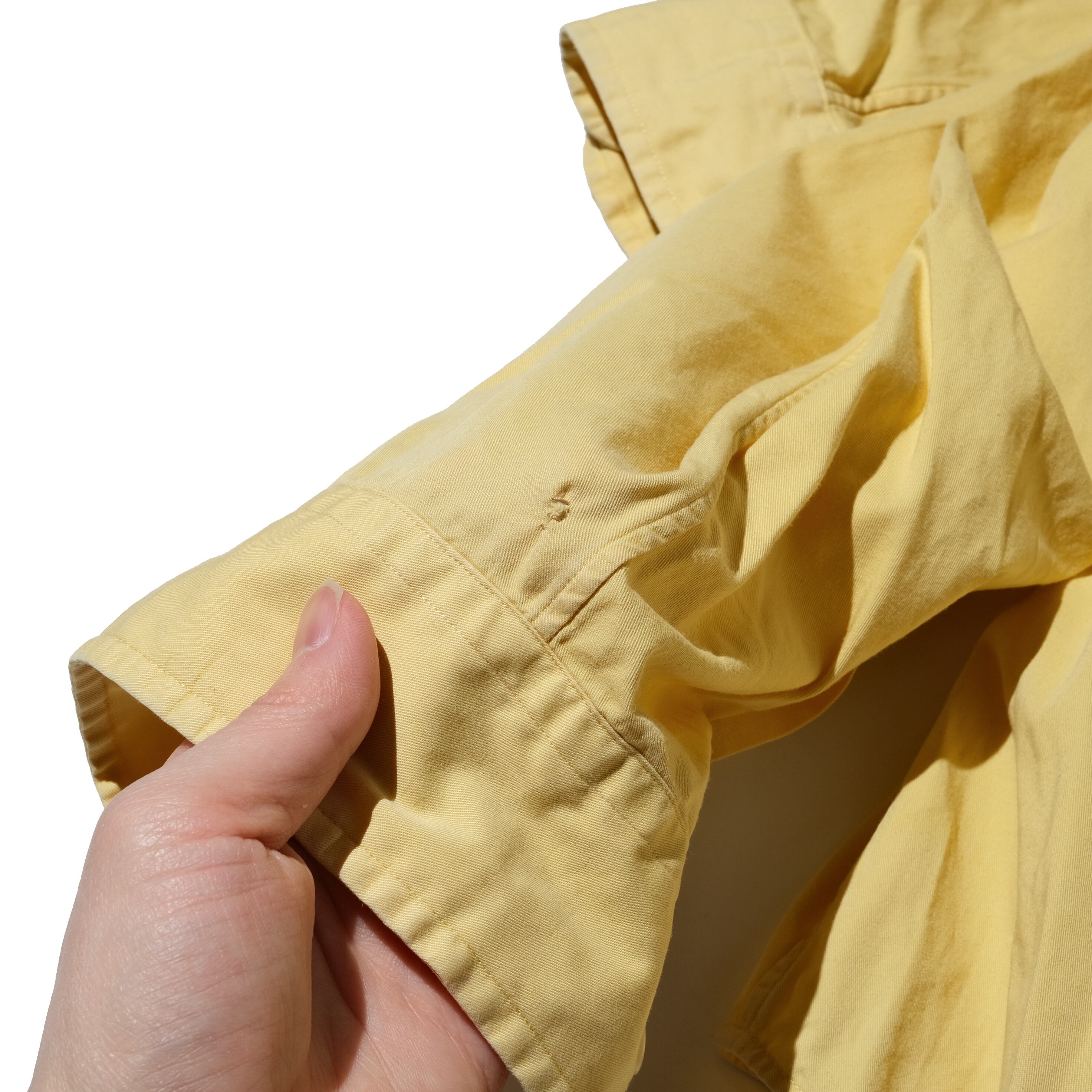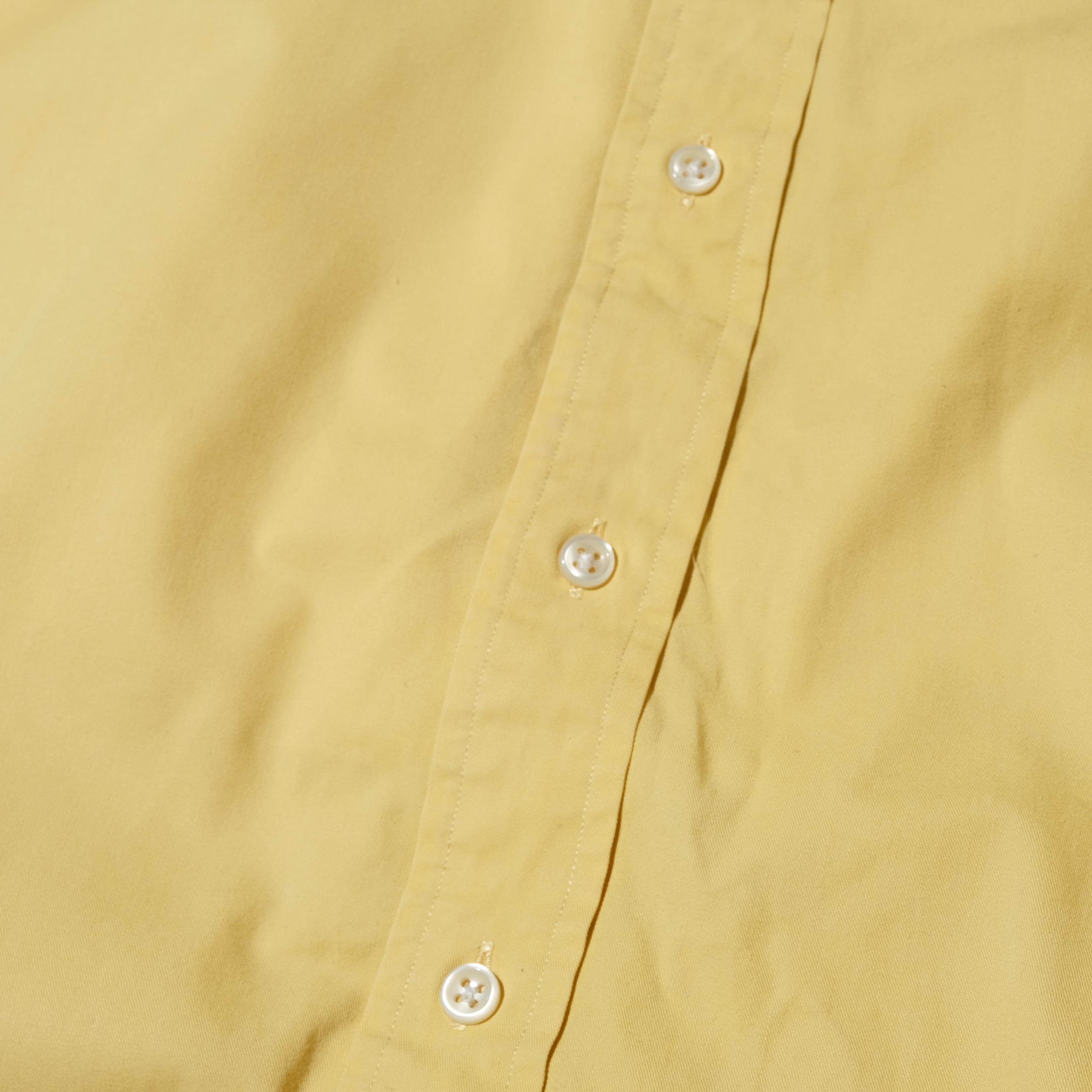 中でもこちらの無地のイエローのタイプは探すと見つからないアイテム。左胸の刺繍もネイビーでこのカラーに映えますね。おすすめできる一枚です。