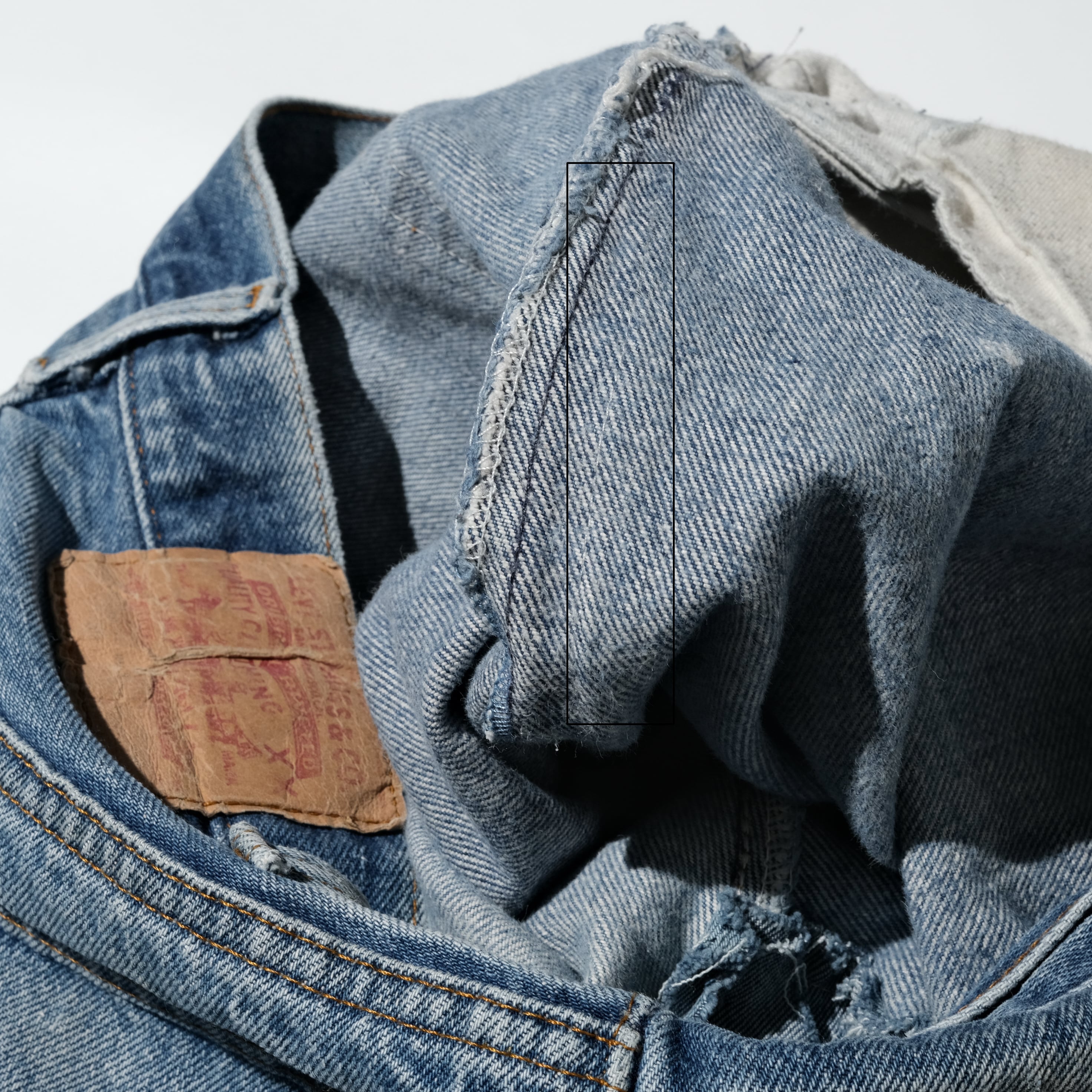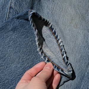 ただ着用してみると少しだけ補足したという印象で、実寸W32の501などに近いようなシルエットと感じました。年代から考えますとお買い得な一本。この風合いは古着でなければ出せないですので、やや細めのシルエットで探されていた方にはおすすめです。