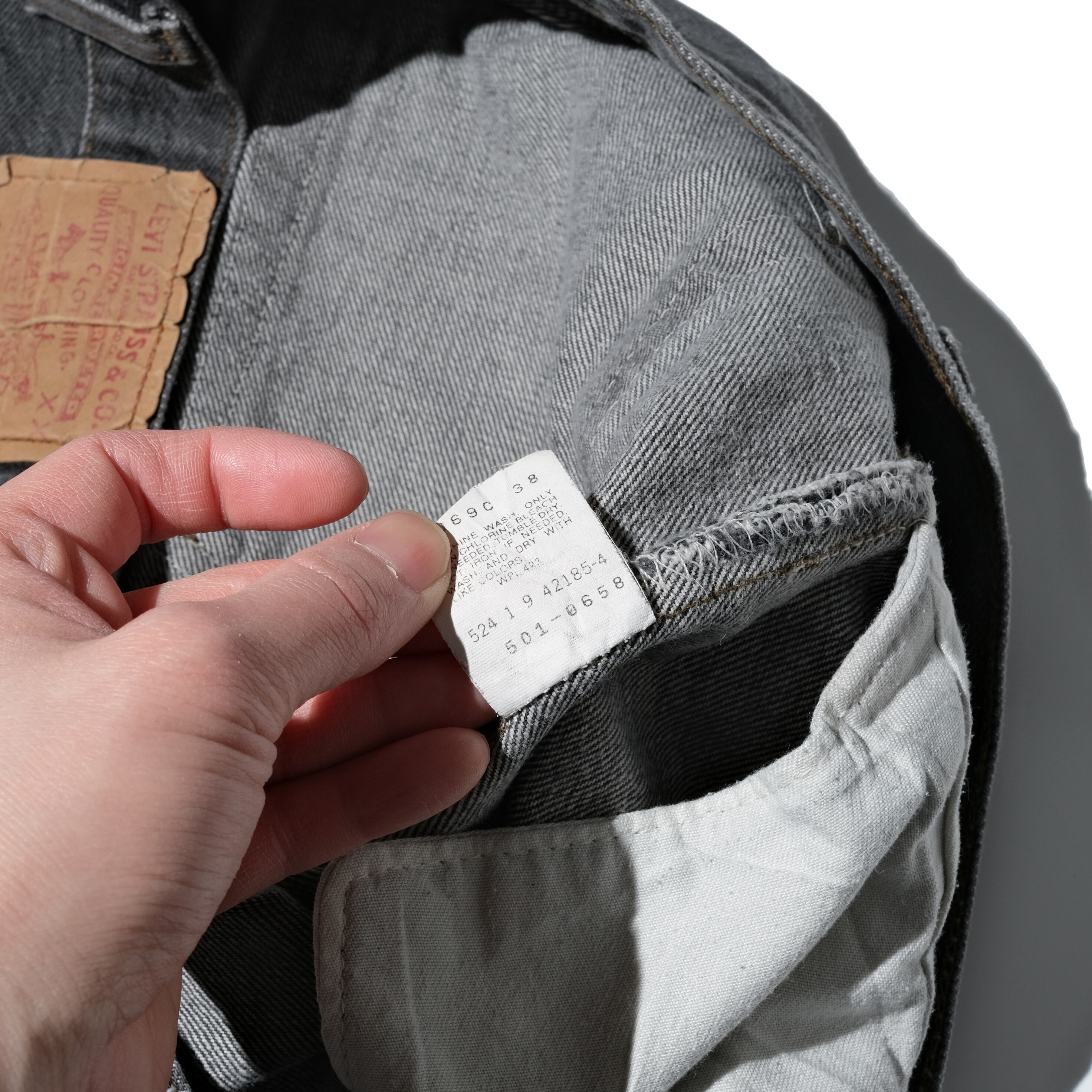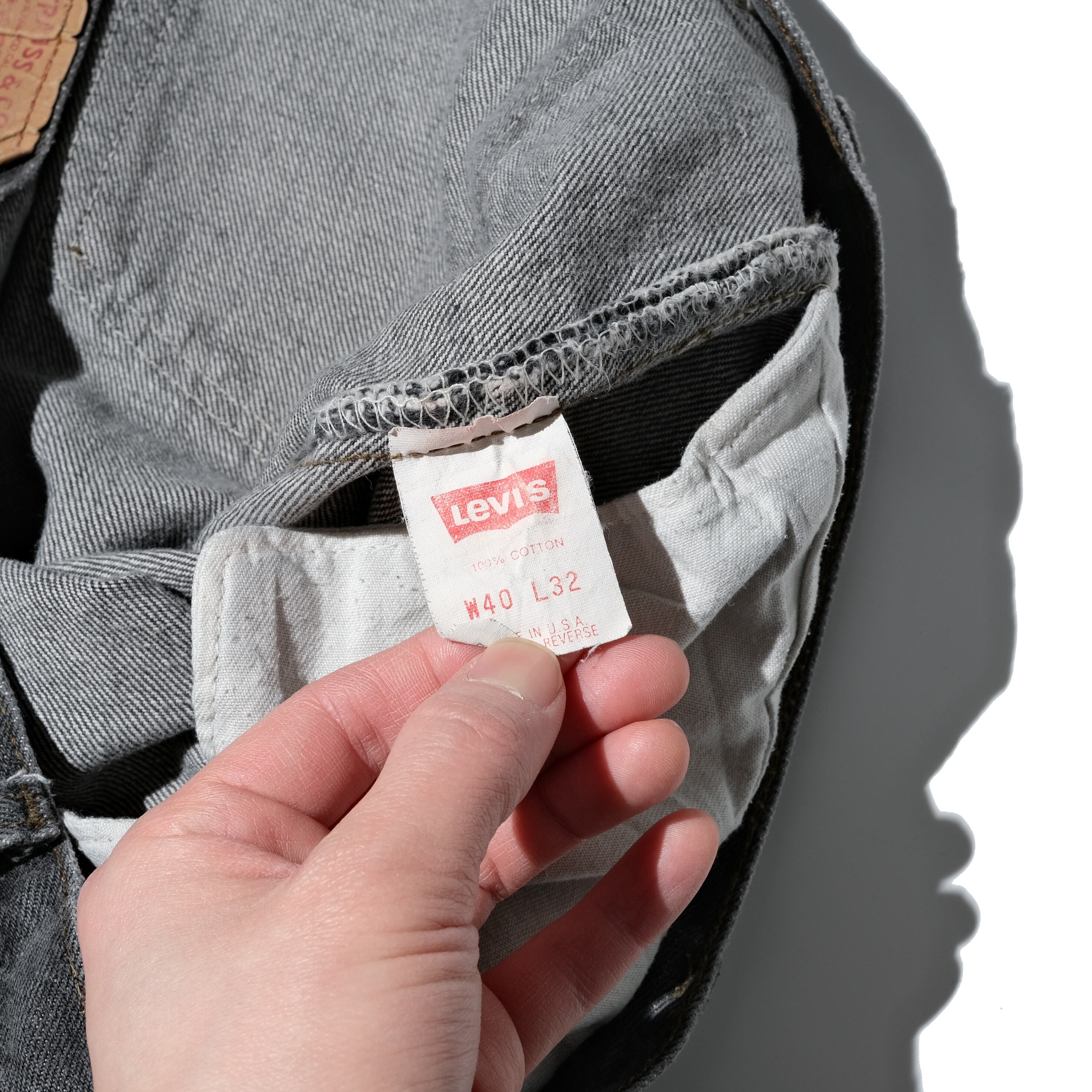 正直40表記のウエストですと敬遠される方も多いかと思いますが、着用画像を見ていただくと分かる通り、ベルトで絞ると太めの良いシルエットが出てくれます。先染めの501としてはお求めやすいプライスとなっておりますので、太く着用されたい方は是非ご検討ください。