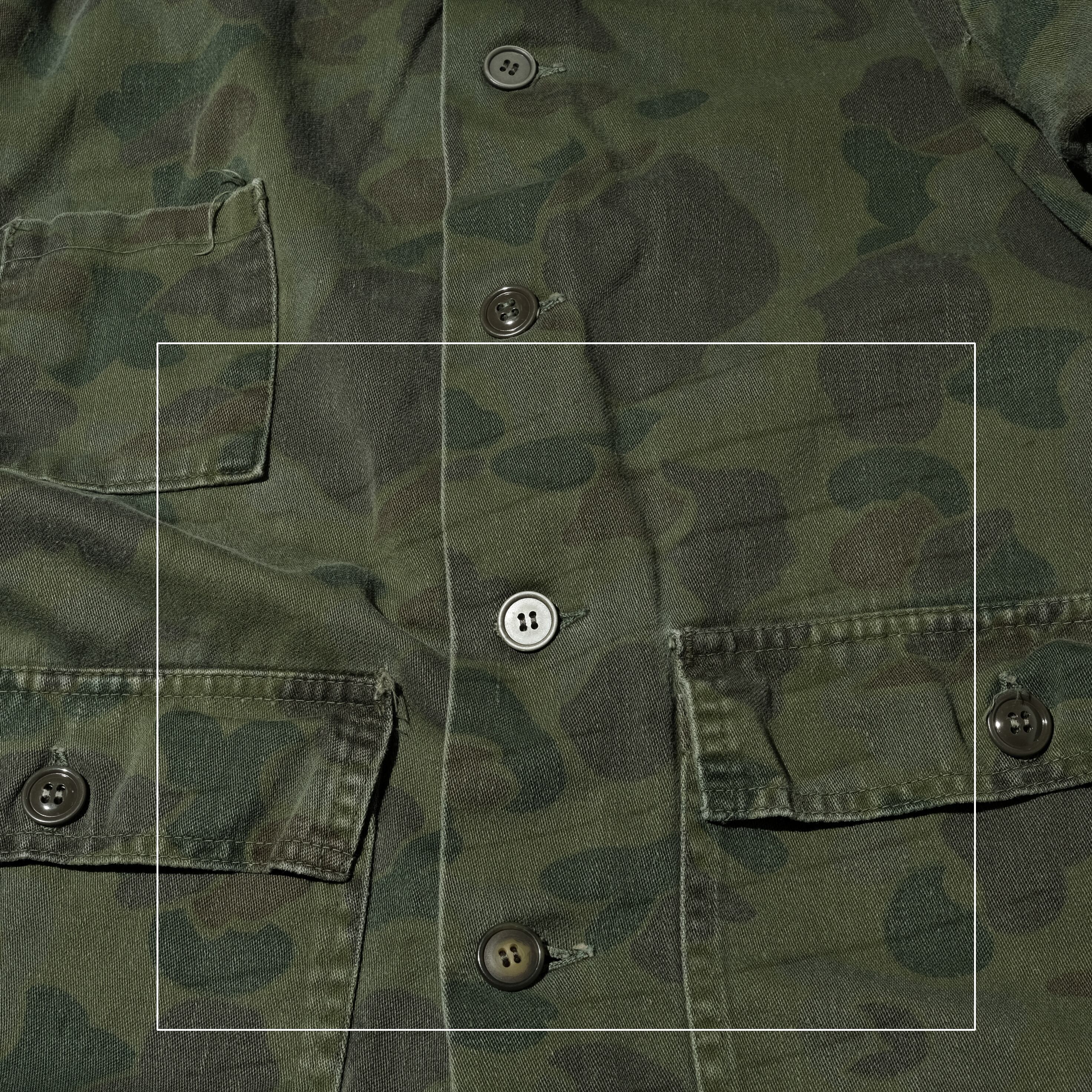 近年もののアイテムですと機能性のために化繊のものがほとんどですからパキッと柄が出ますが、こちらはコットンですので、適度なフェード感がテキスタイルっぽく着用できるかと思います。男臭くなりすぎず、おしゃれに着こなせるアイテムと感じており非常にオススメです。
