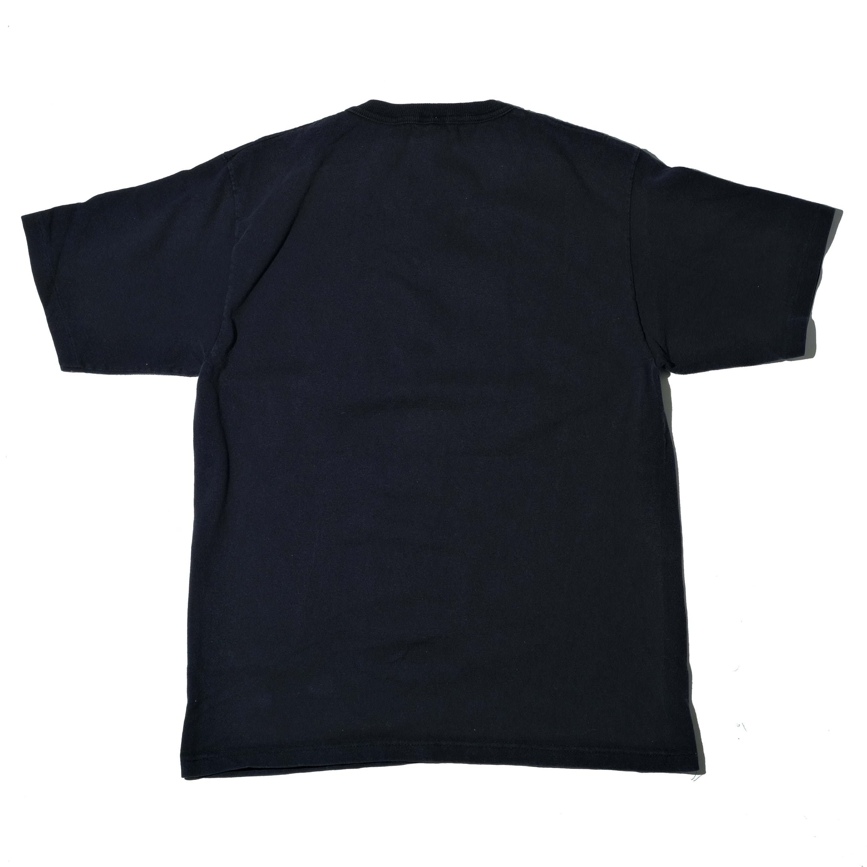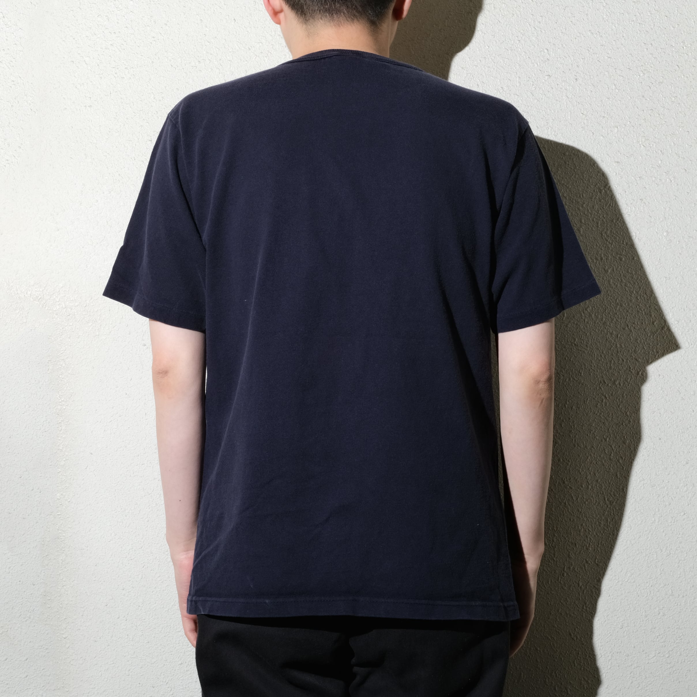 グレーボディより珍しく、かつクールなネイビーボディに白文字の個体、表記でMサイズですが年代的に少し身幅が広めの作りで171cmがゆとりを持って着用できるいいシルエットでした。