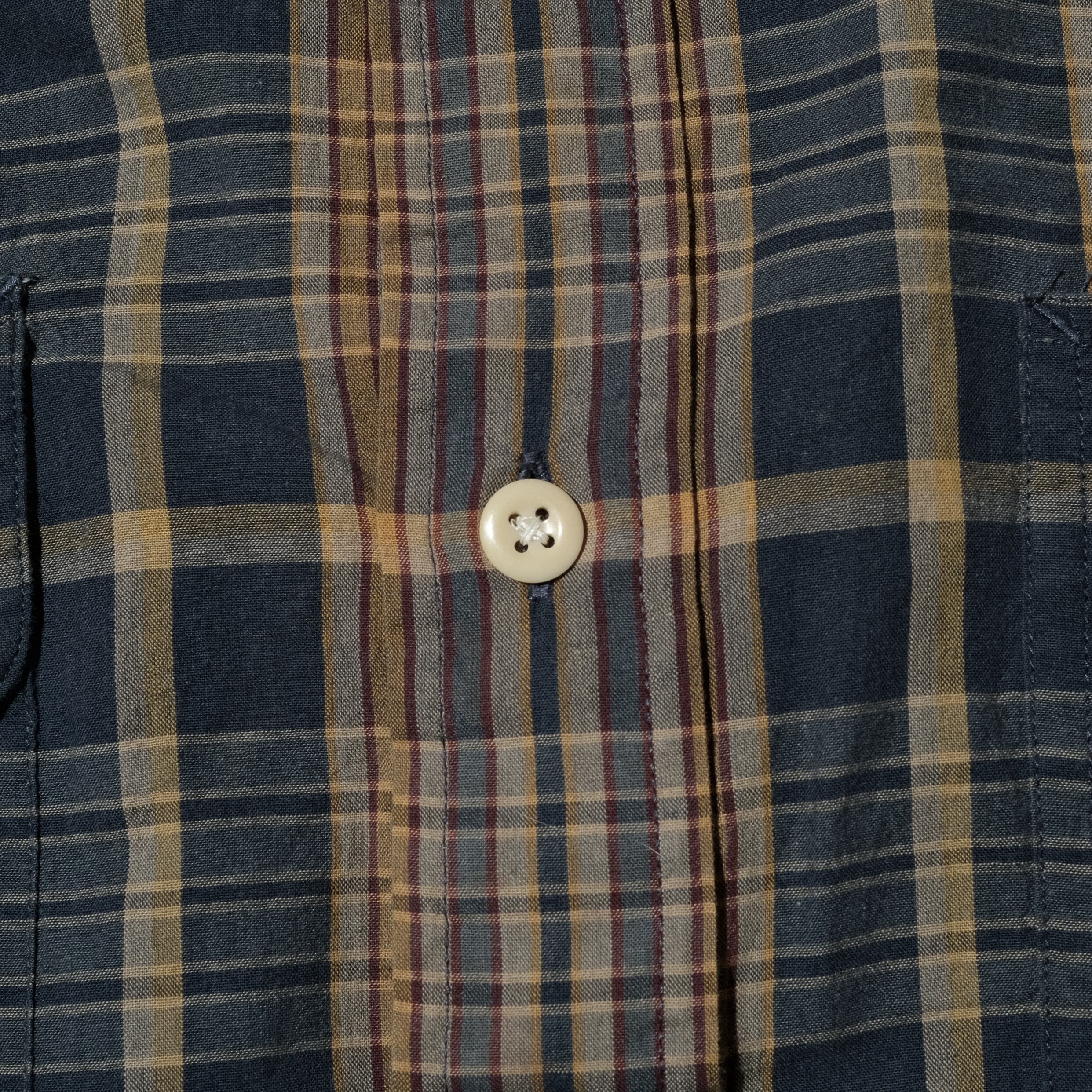薄手の生地にいわゆるガチャポケのディテール、通常より大きいサイズのボタン、トリプルステッチなどワークシャツのディテールを取り入れた一枚。ボタンダウンではないのでポロラルフローレンのレーベルのタグのつく個体になります。