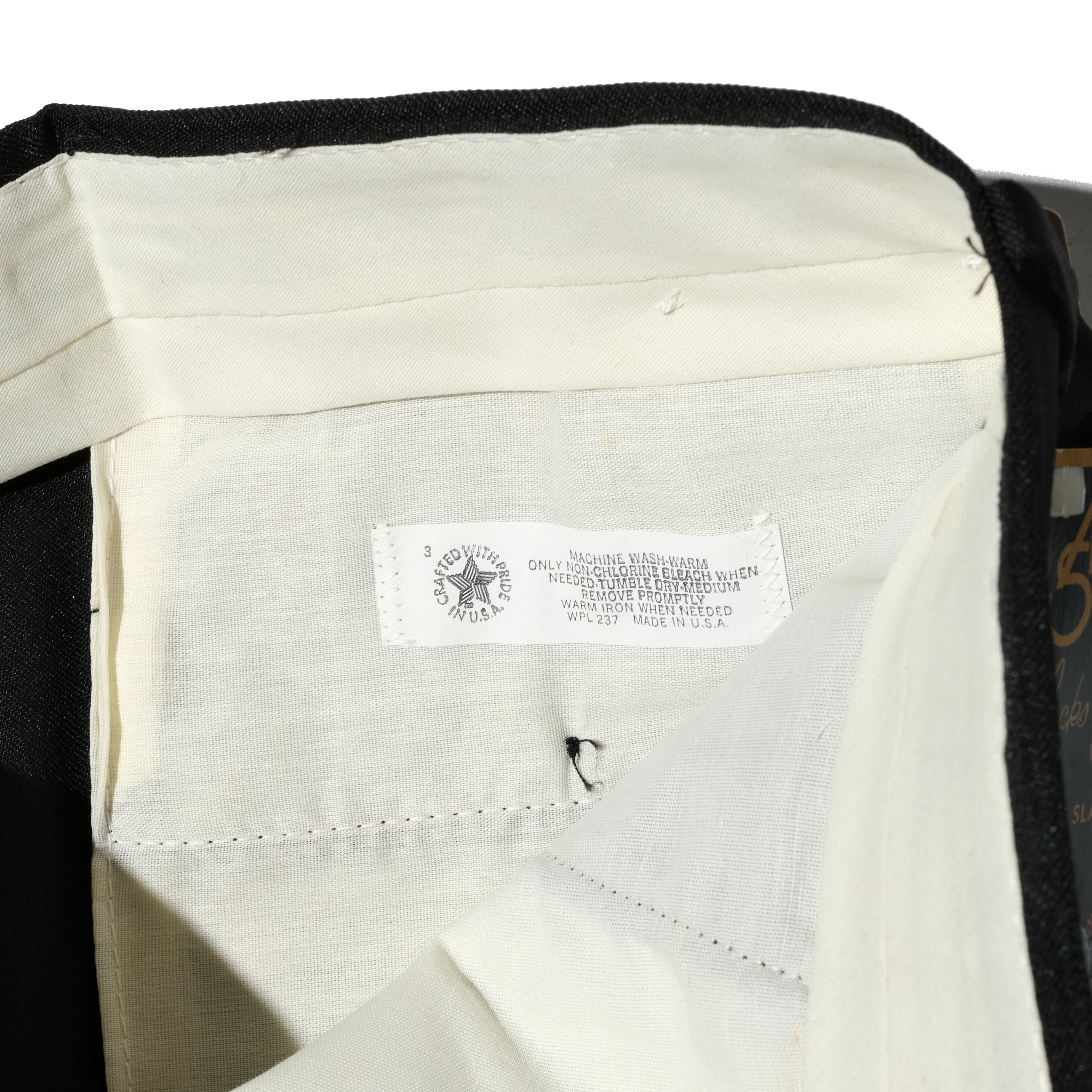 Seminoleというブランド、WPLナンバーが発行されていますのでなかなか古い会社になるかと思われます。CRAFTED WITH PRIDE IN USAの表記がございますので80'sのUSA製のものになります。一見フレアに見えますが裾を折り返してみると広がっていない太いストレートシルエットのようでした。