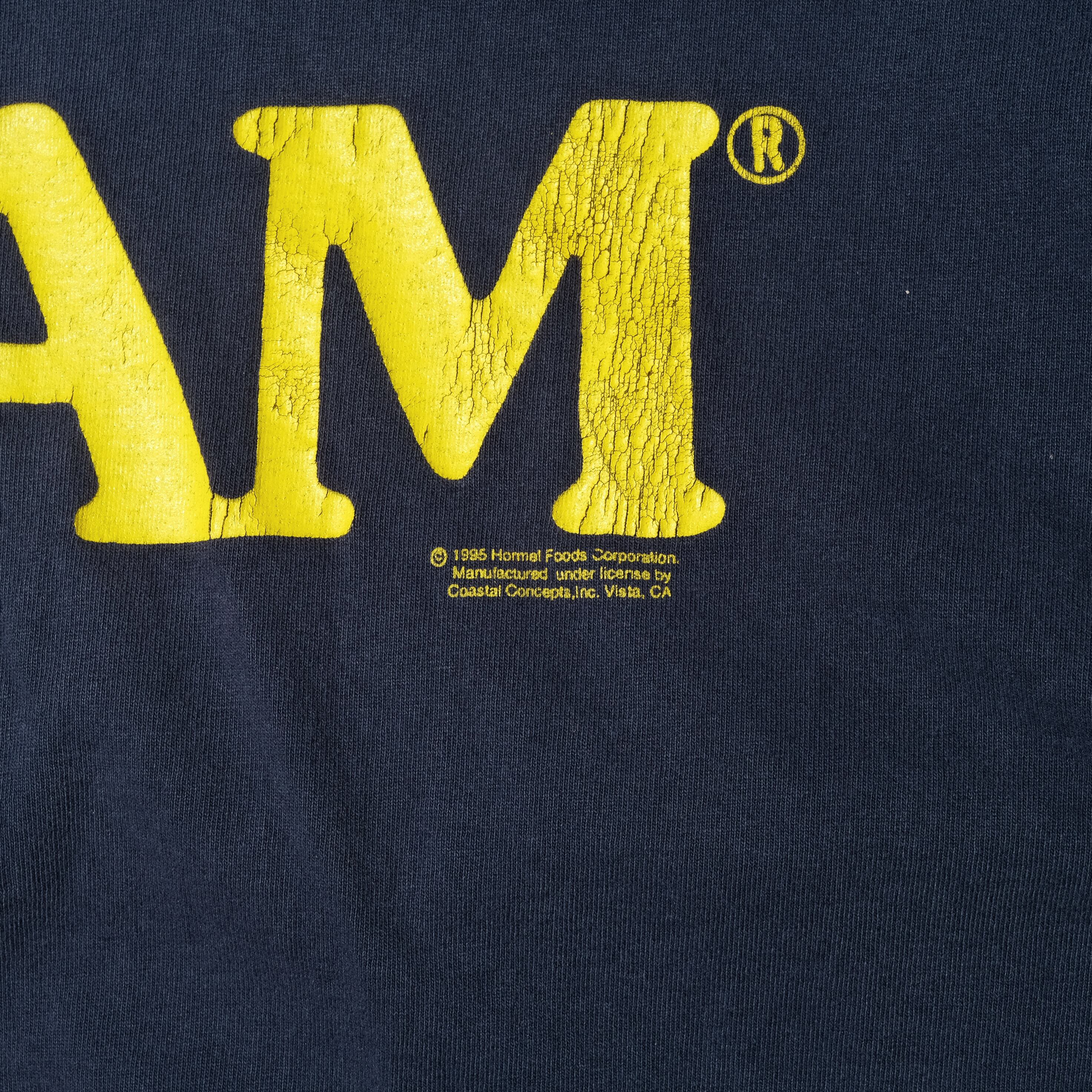 日本でもお馴染みのSPAMのロゴがプリントされた一枚。タグは欠損しておりますが95年のコピーライトが入っております。