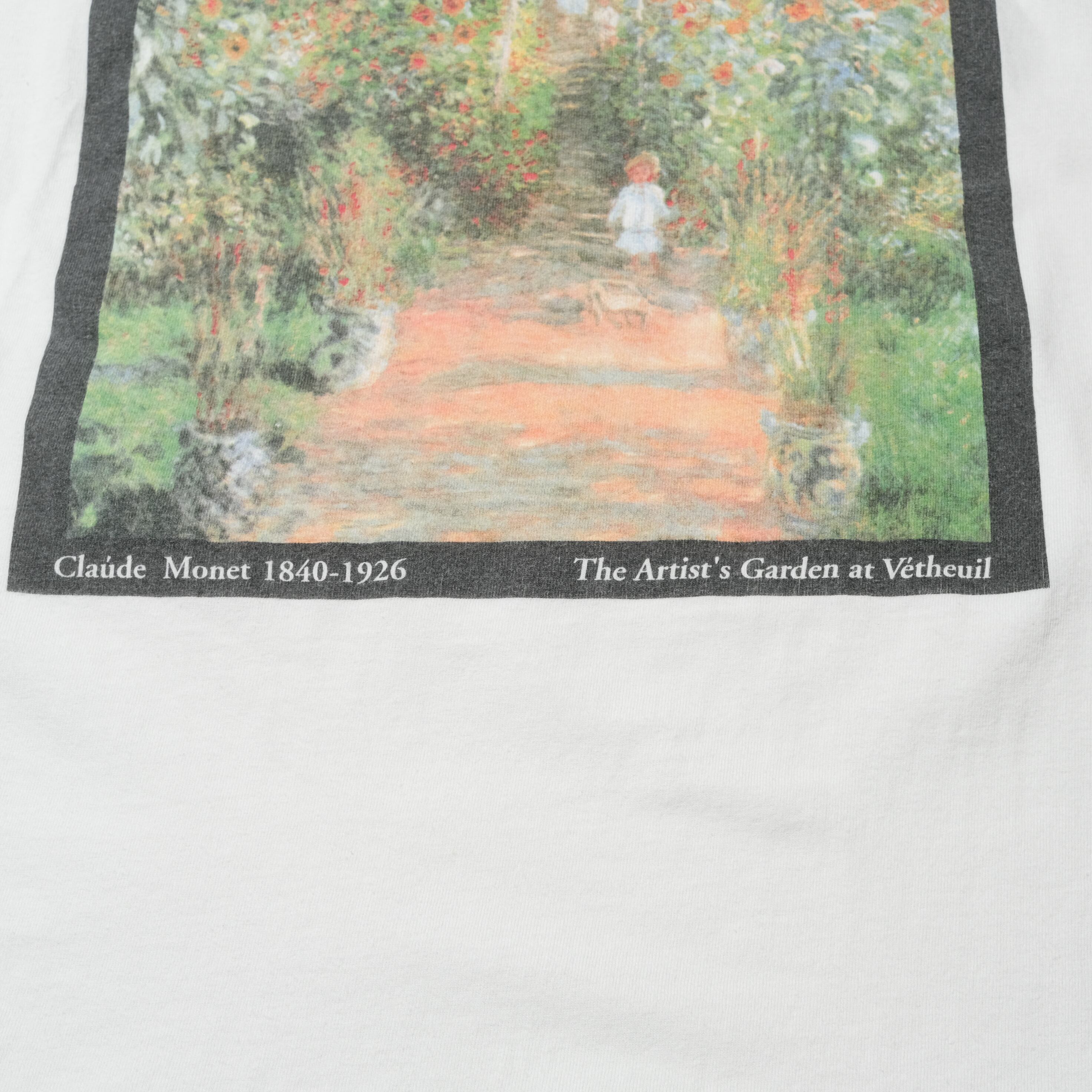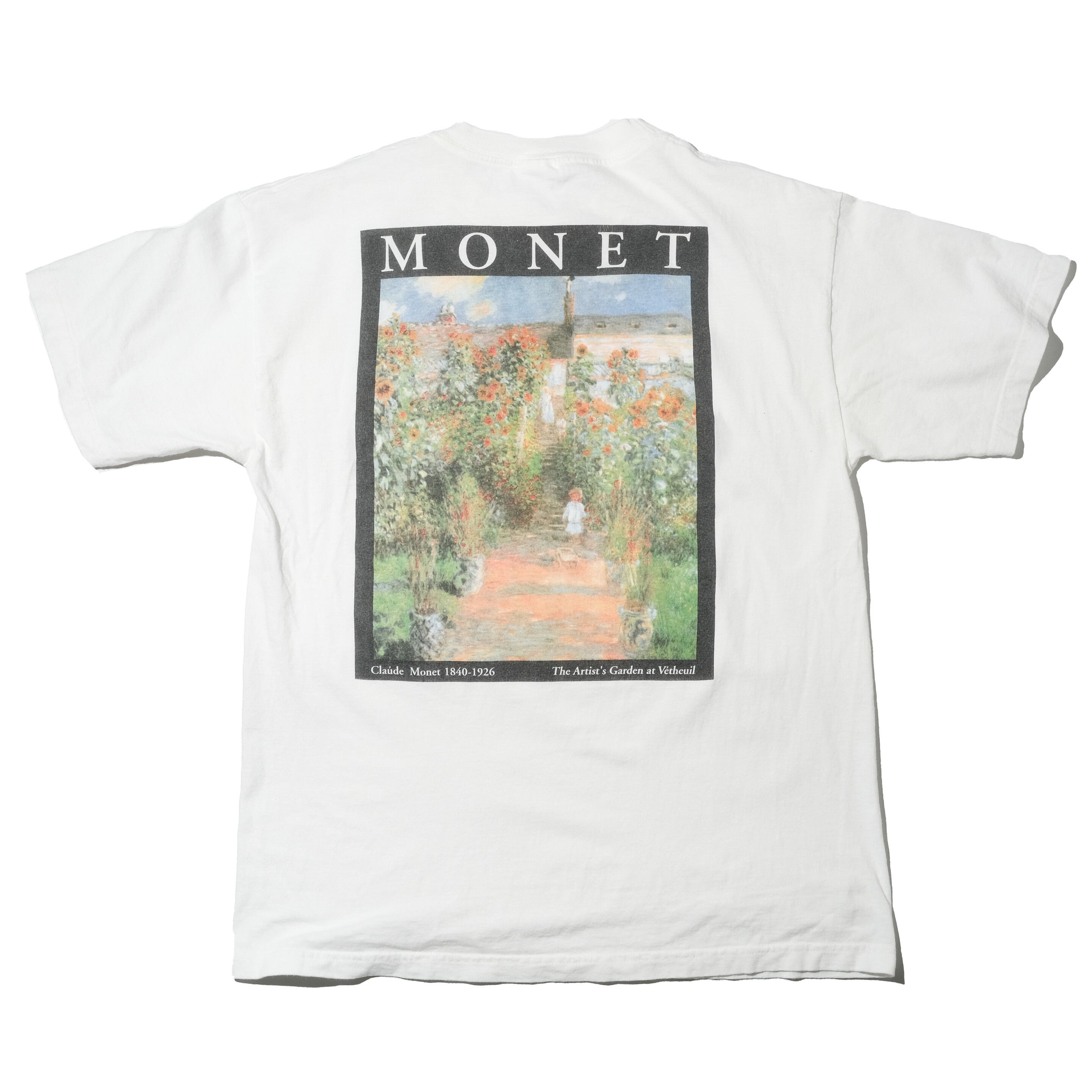 モネの作品"ヴェトゥイユの画家の庭"がバックに大きくプリントされたインパクトのあるデザインのもの。近年人気のアートT/バンT、正直個人的にピンときていなかったので仕入れておりませんでしたがこの個体に出会い面白いと感じるようになりました。