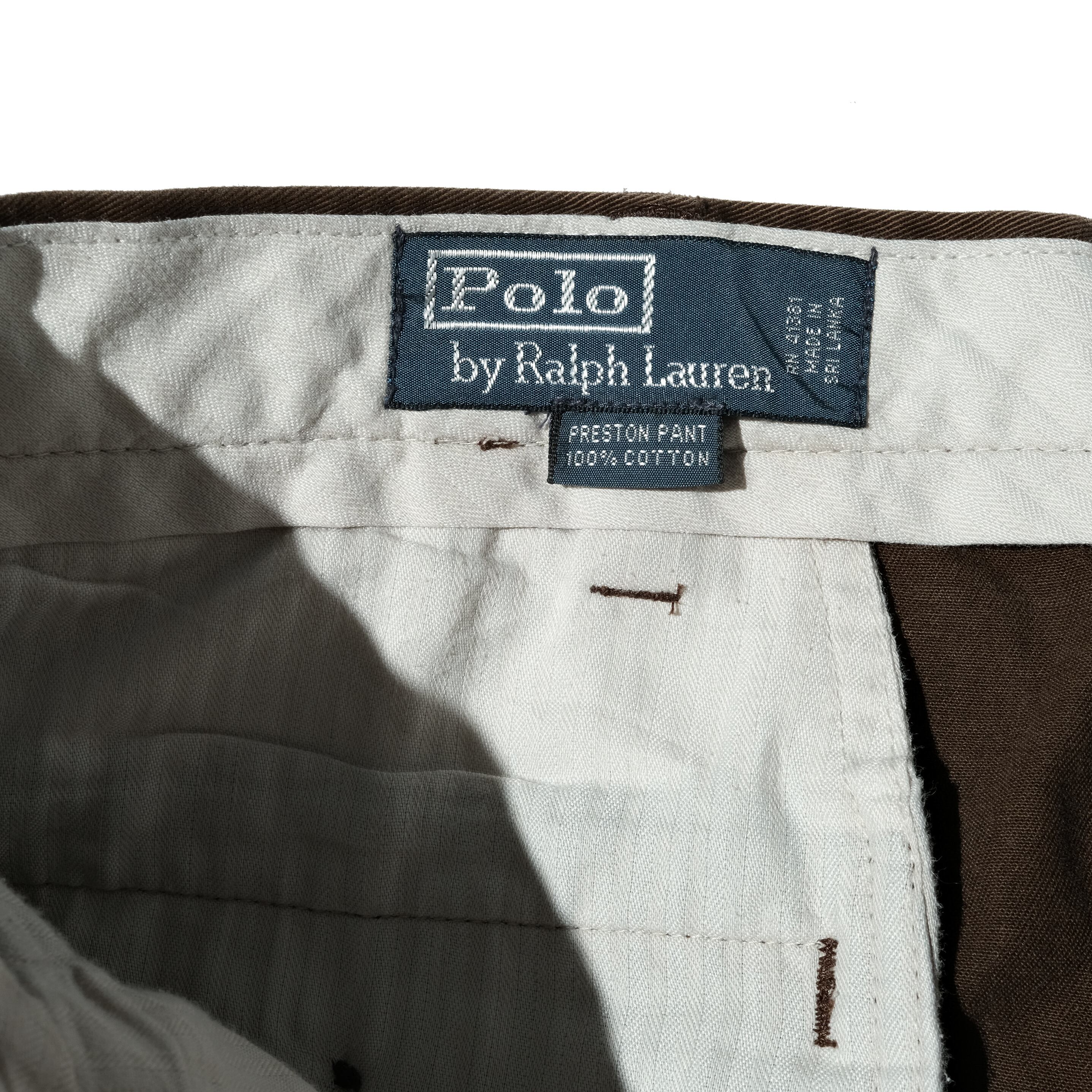 Preston Pantというタックの入らないタイプのもの、そしてレアカラーのブラウンの個体になります。ポロチノ自体は当店でも定番としてすでに150点ほどを取り扱ってきましたが、今回このカラーが入るのは2本目となります。