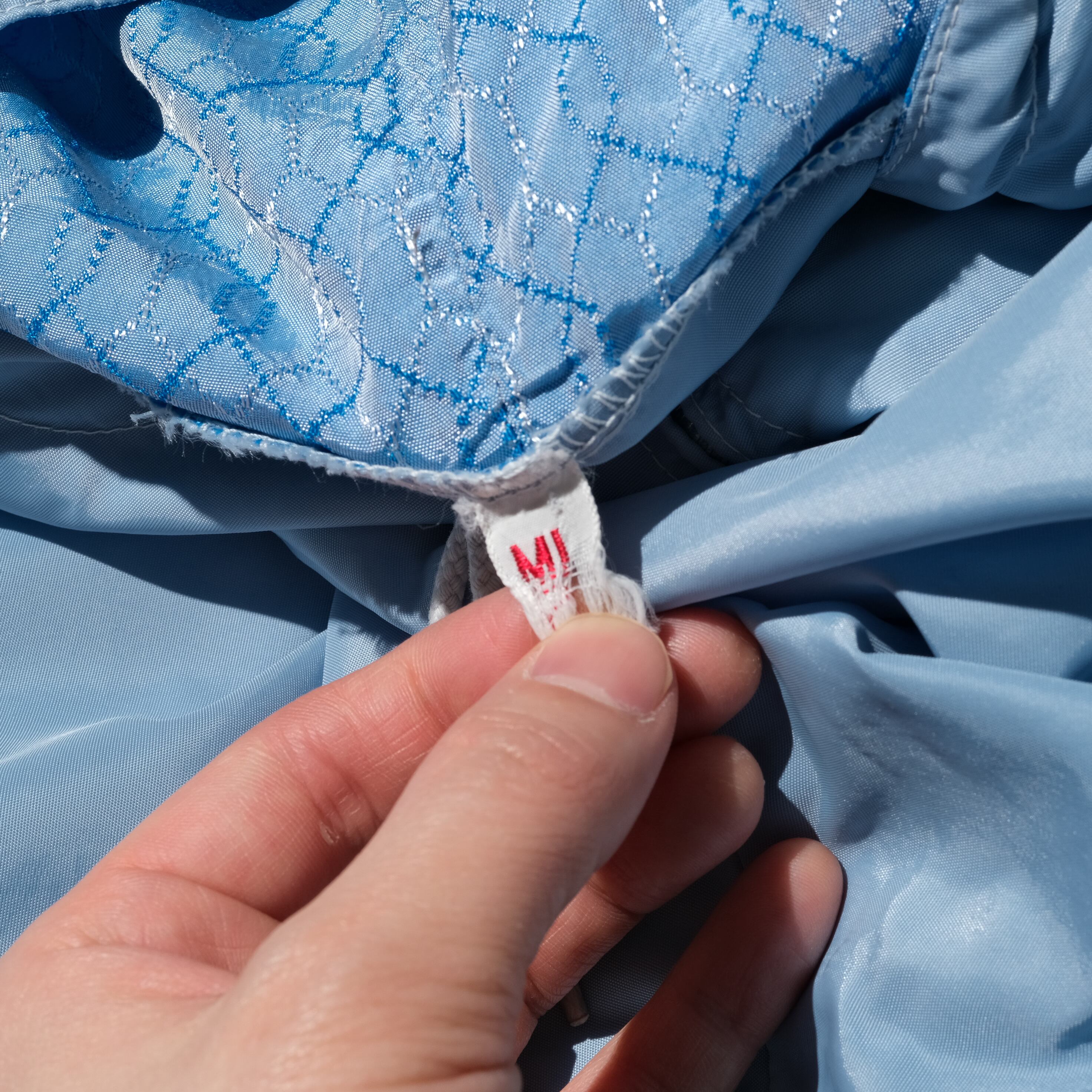 発色のいいサックスブルーのカラーが魅力的な一枚。
