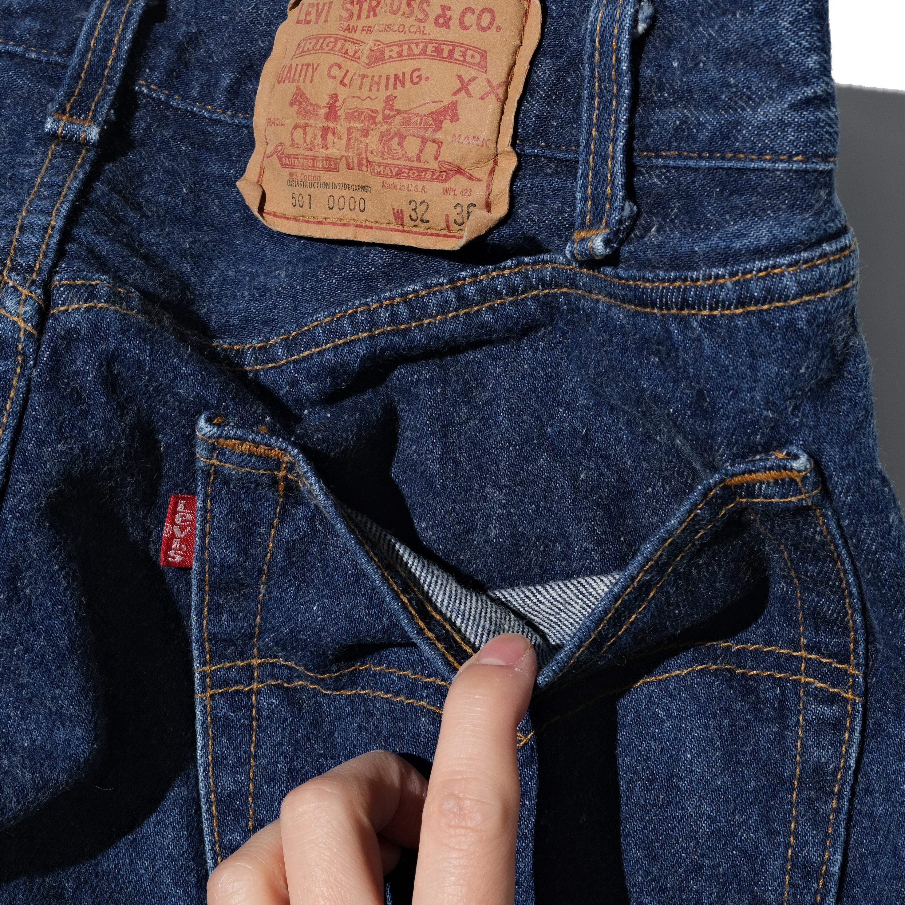 87年製造のUSA製のもの。W32L36表記ですがシュリンクが入り30.5x30程度の素晴らしいサイズになっております。